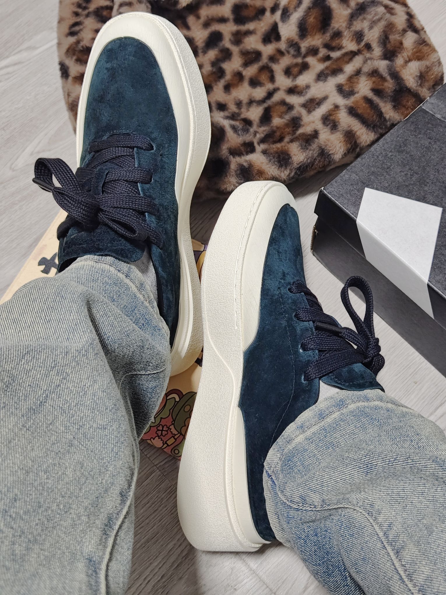 这双阿迪板鞋第一眼看到真的以为是黑色的!当拿到手上细看发现原来是墨绿色的!哈哈哈! 但是不管也怎么说!它的脚感是真滴不错,今天搭了一条工装裤出门,我感觉它两搭配起来真的不违和,反而有点小个性!! 它的码数还是挺准的,我穿40码,这双刚刚合适!