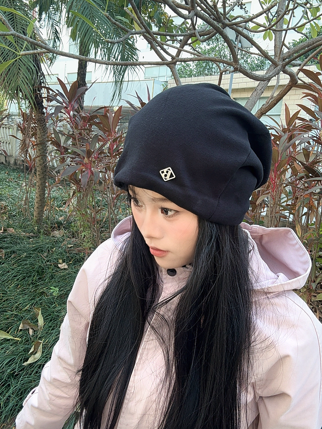 这款帽子是纯棉针织的,软软糯糯的☺️☺️而且它是大头显小的设计,戴上瞬间就能把脸衬得超小,特别显脸型的😆😆帽型是立体有形的堆堆帽,戴一整天都不会变形哦日常通勤戴它,又美又酷😚😚