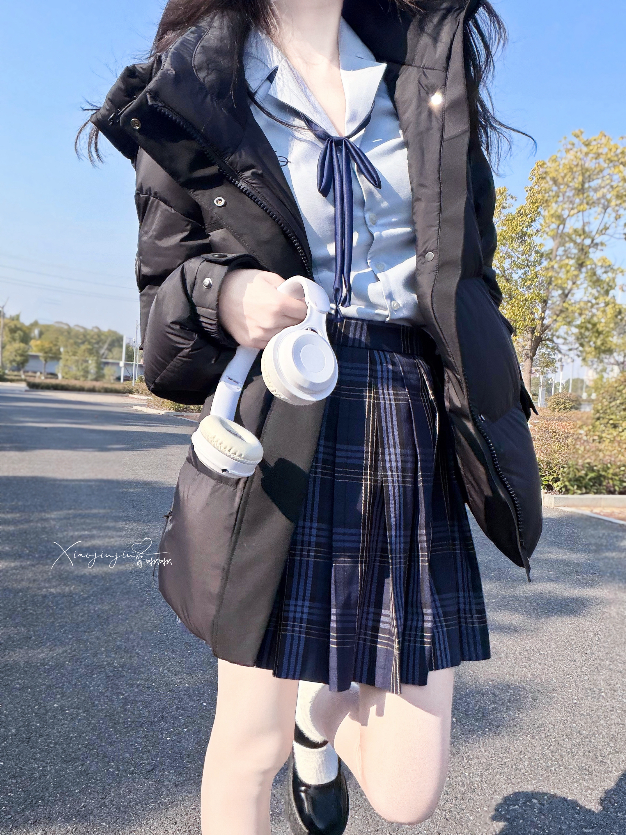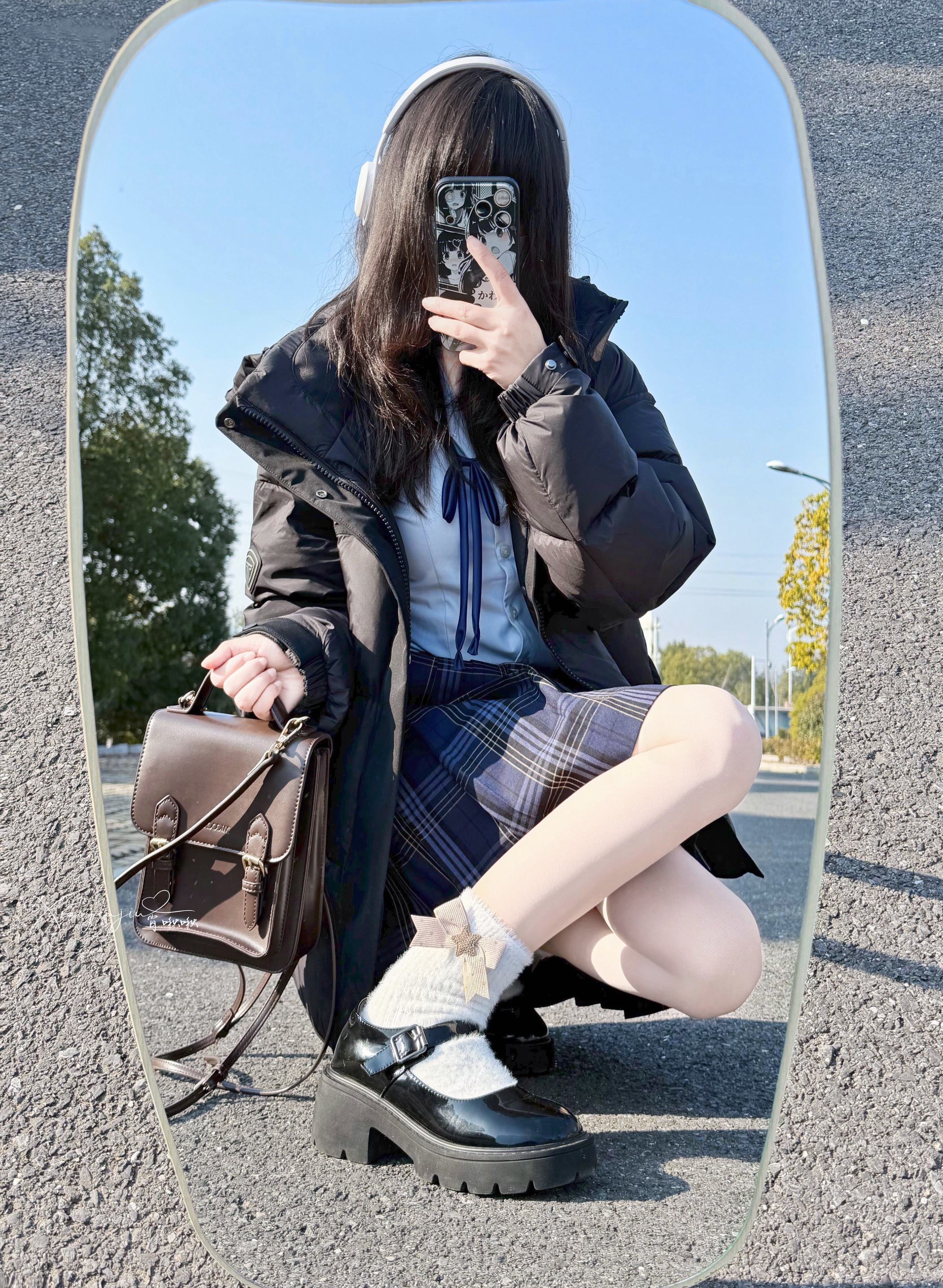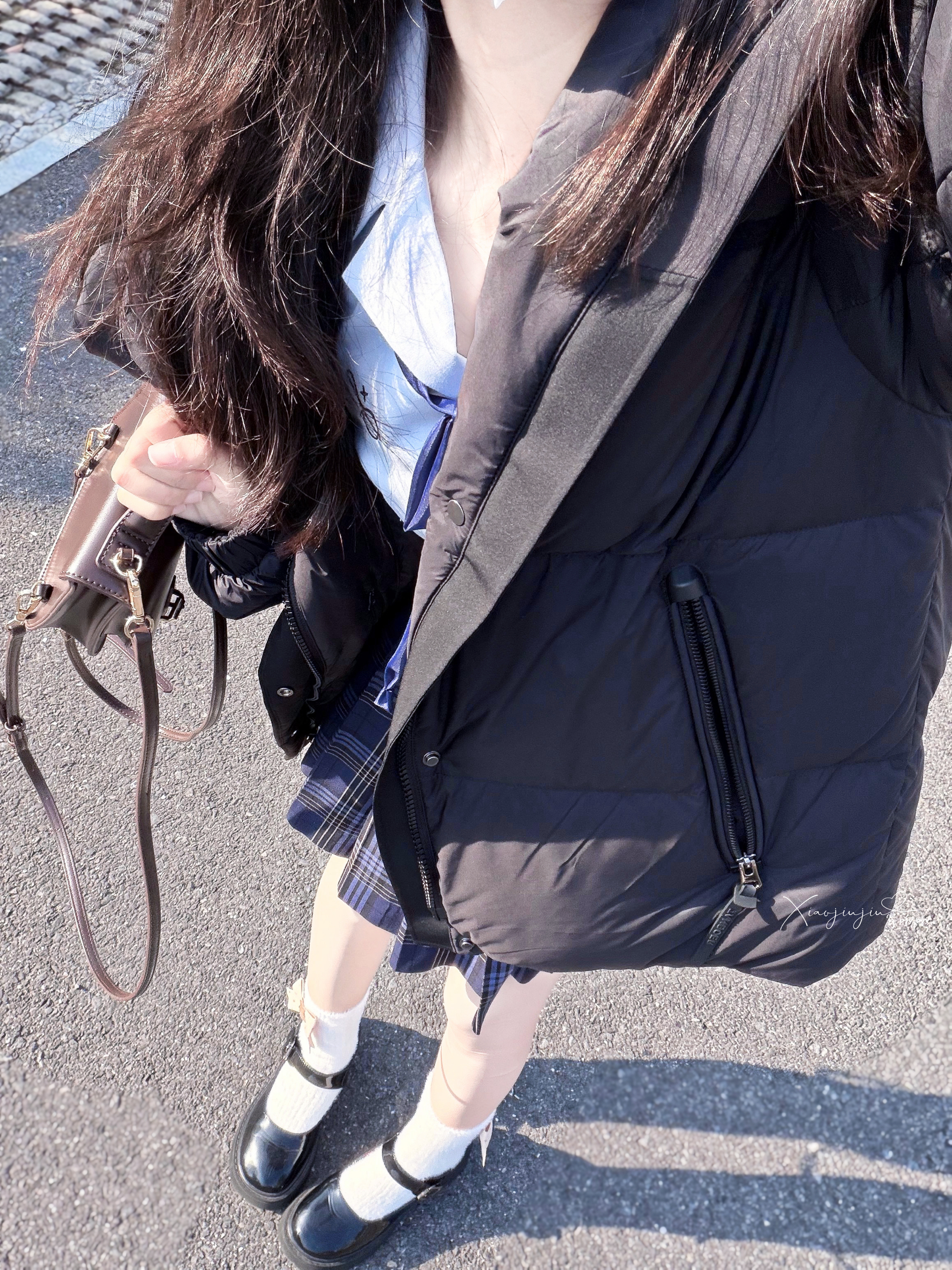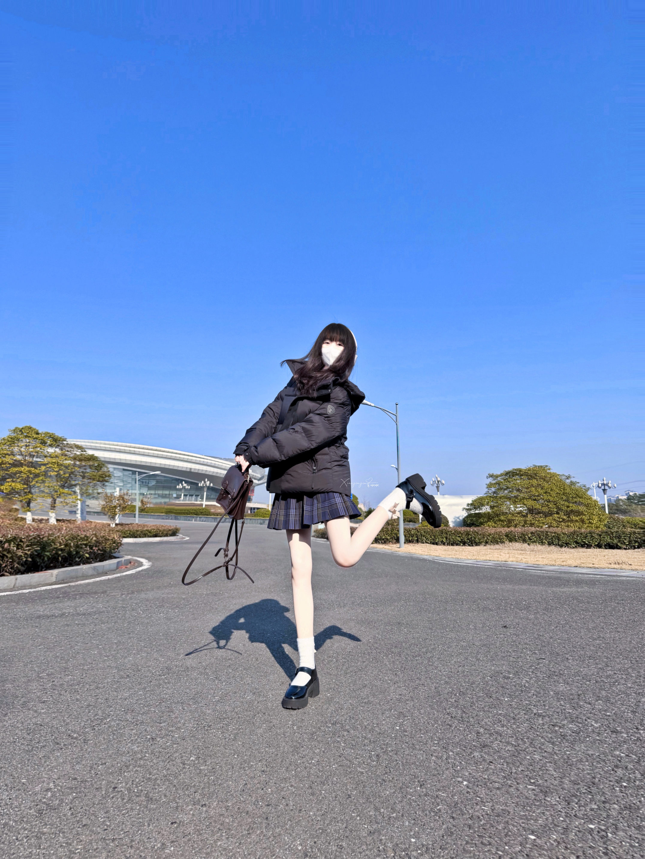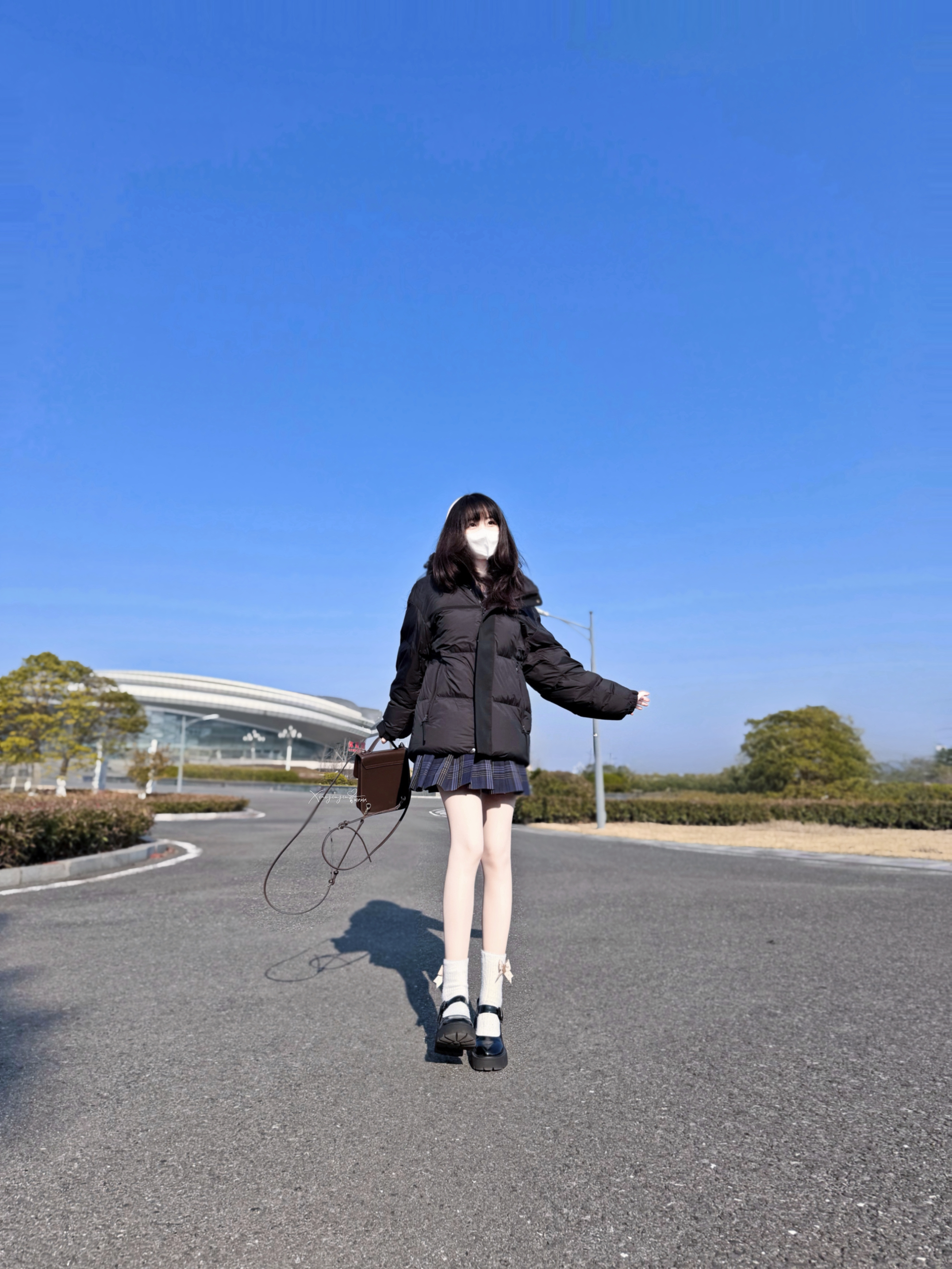 下午天气晴☀️ 学校组织去博物馆看看 啾啾搭配了黑色羽绒服和深色系格子裙👗 是盐系甜美学妹👧 黑色系不显脏,穿起来暖呼呼的~ 博物馆里展品有名的展品都被借走了 拍了个寂寞😕