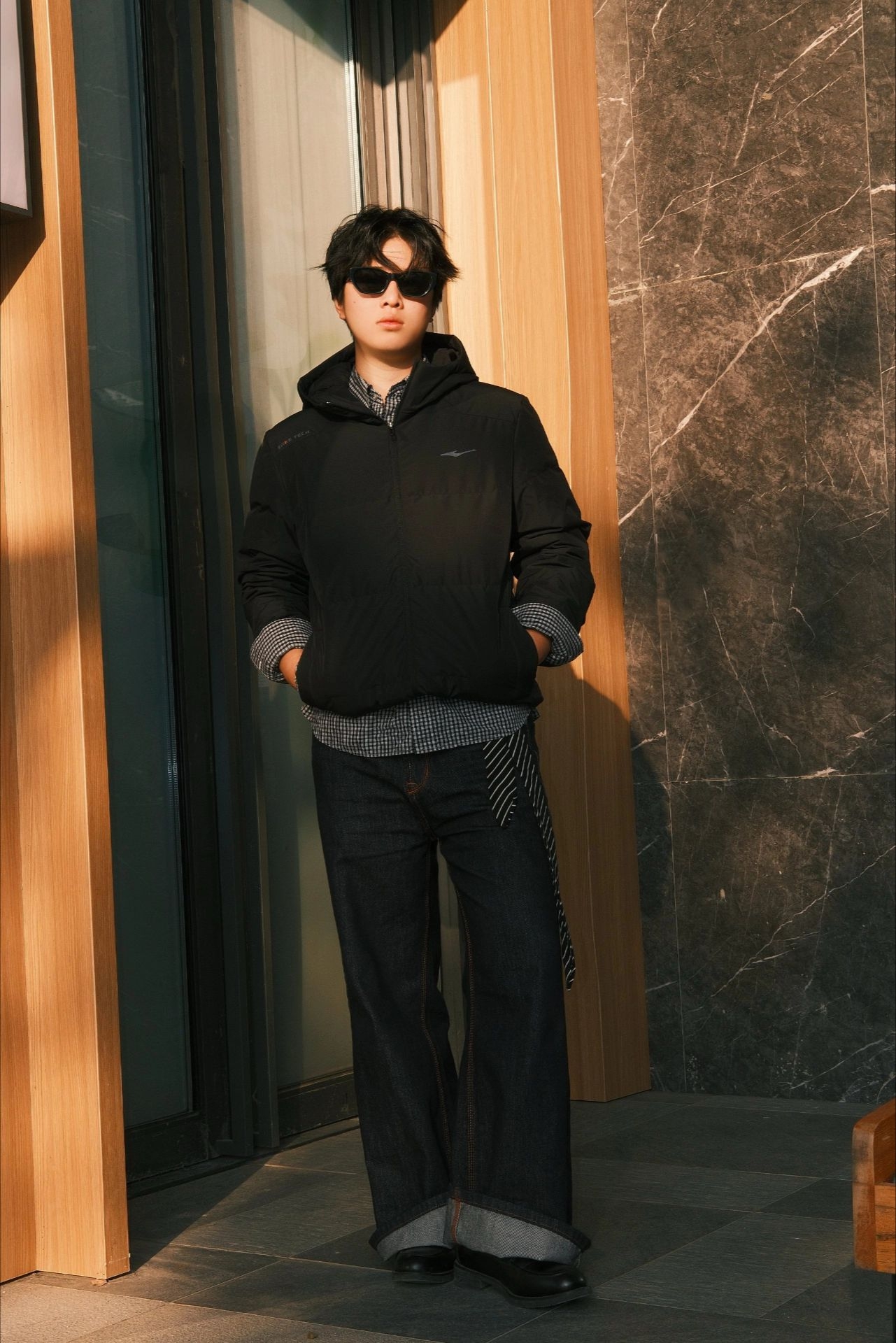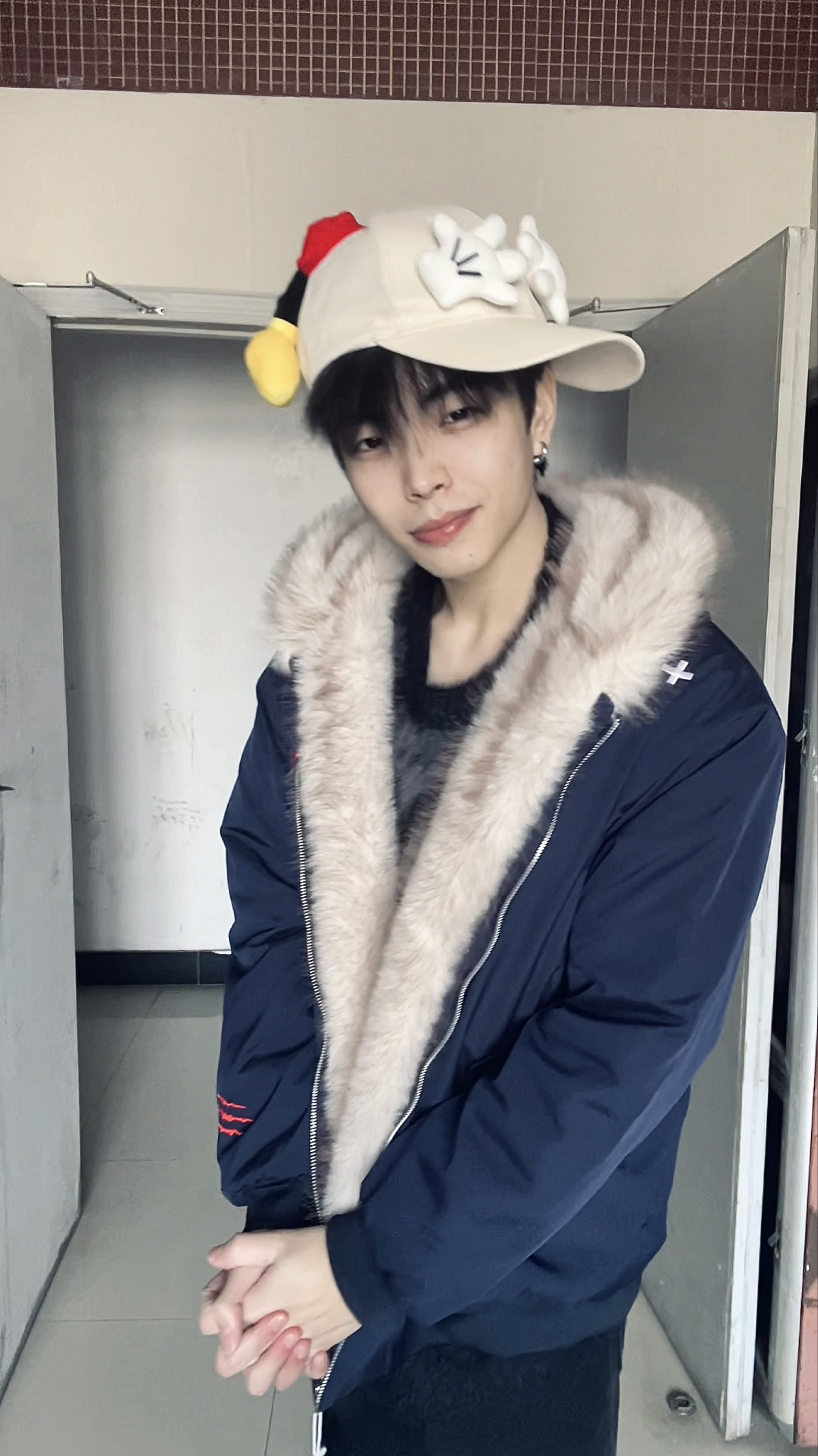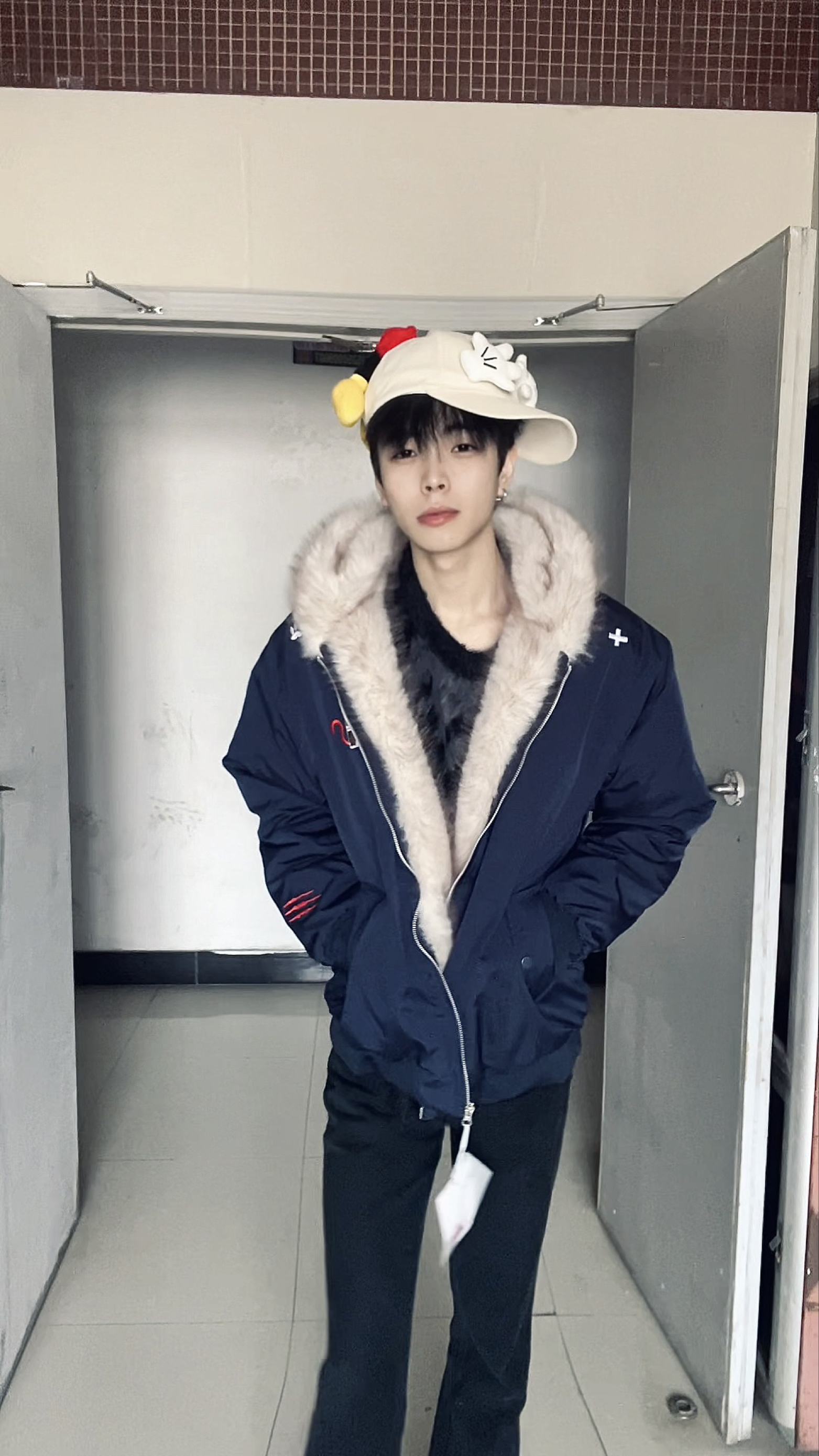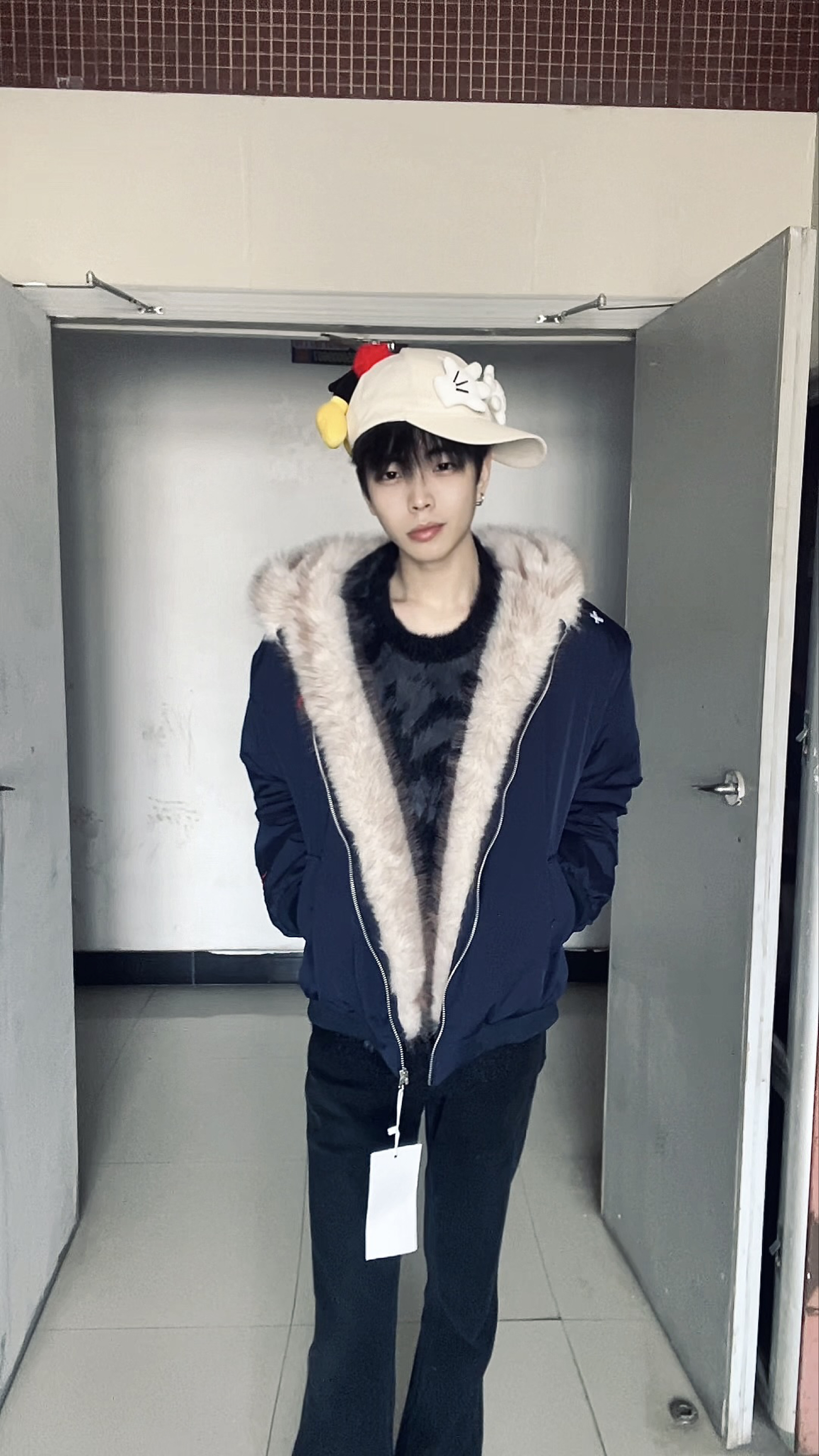 这套穿搭以藏青毛绒领外套为核心,将沉稳的复古感与少年的慵懒贵气融合得恰到好处,细节搭配更是点睛之笔。 藏青色的毛绒领外套是整套的主角,深邃的藏青自带沉稳质感,大面积的浅米色毛绒领则柔化了冷硬的色调,宽松版型既能包容内搭,又营造出随性的慵懒感;内搭的黑色毛绒上衣,与外套的毛绒领形成材质呼应,同色系的搭配让层次更和谐,也进一步强化了冬日的温暖氛围。下装的黑色长裤延续简约配色,利落的剪裁平衡了上装的蓬...