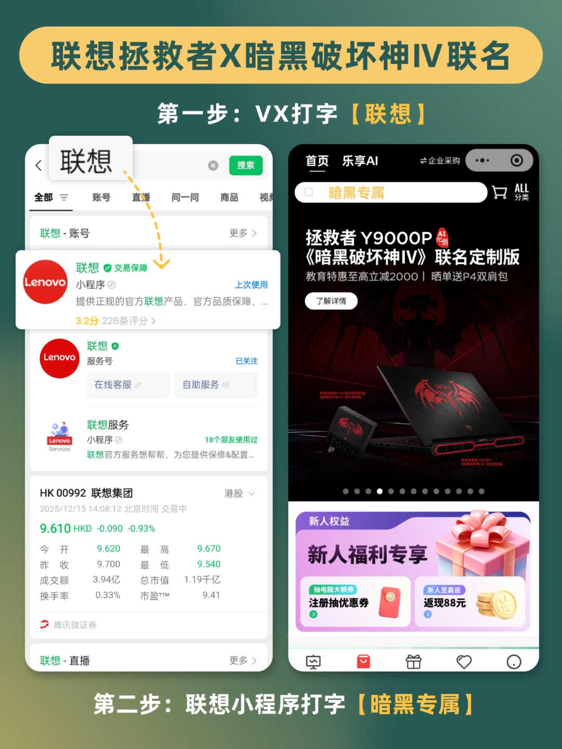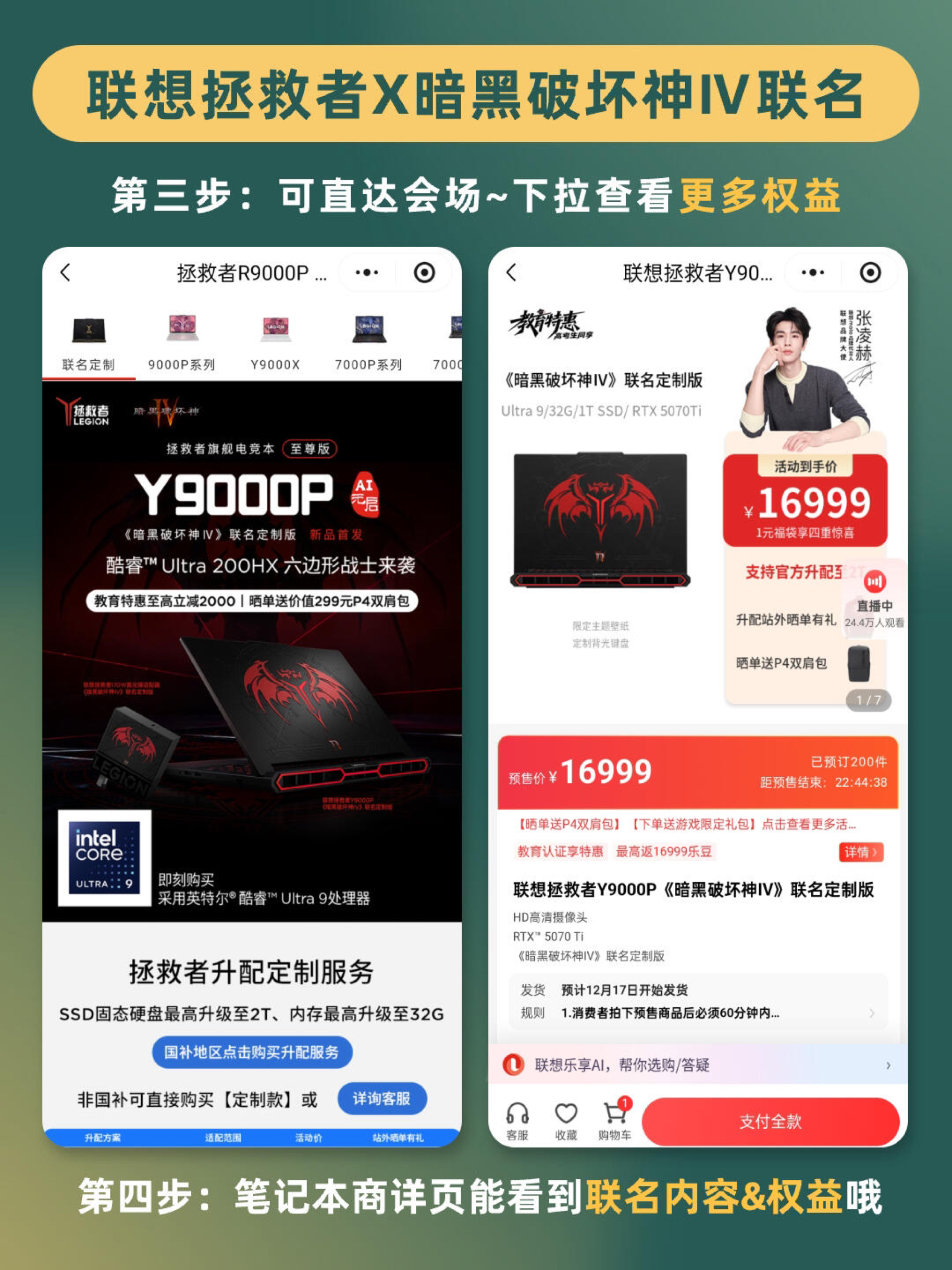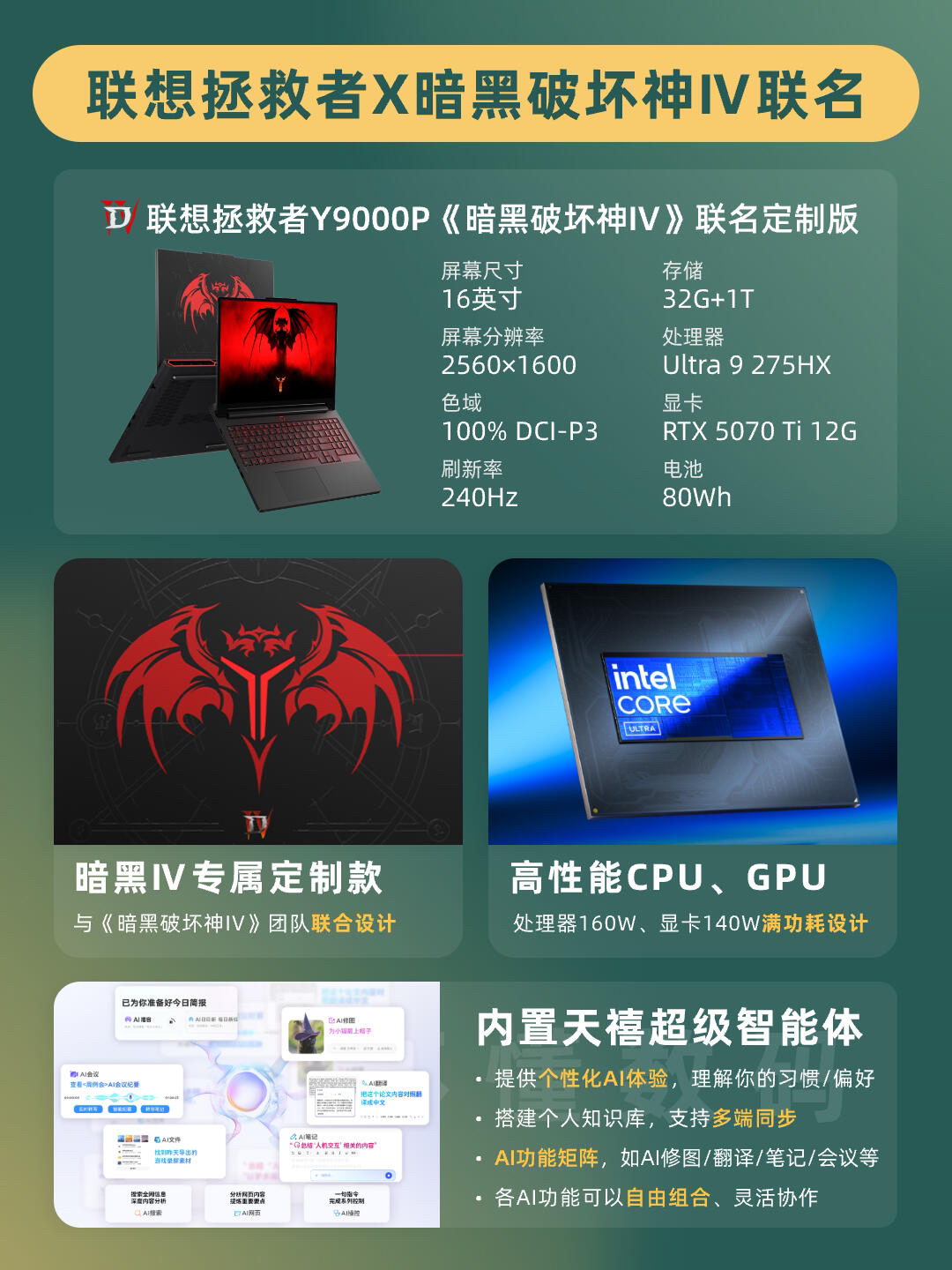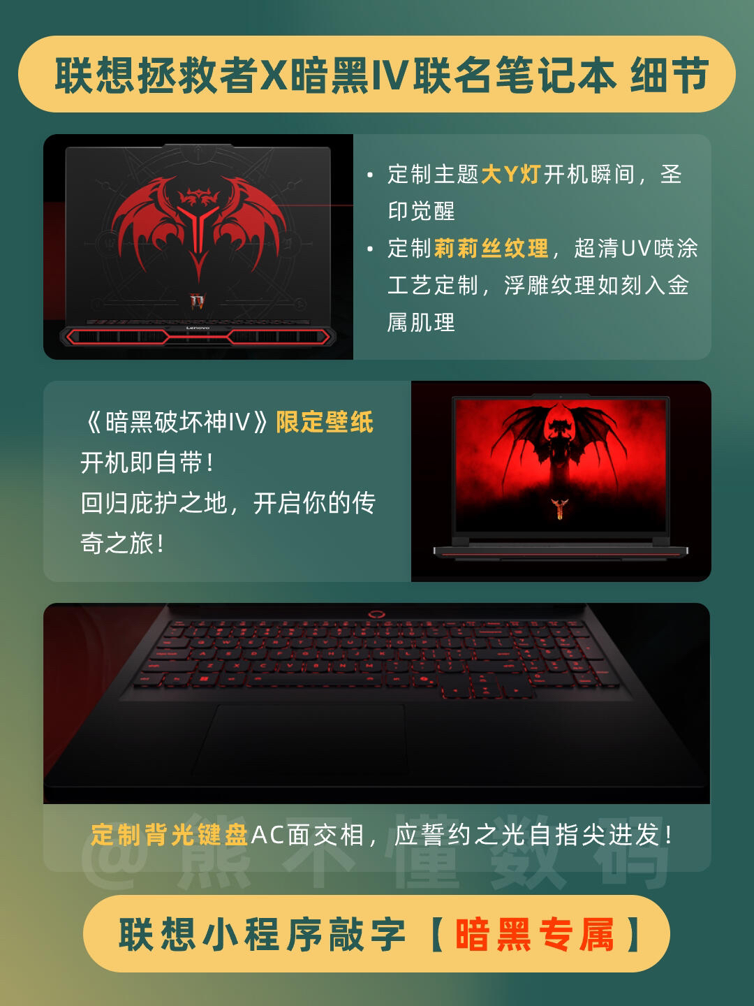 👀是谁的DNA动了?联想拯救者居然和《暗黑破坏神IV》出了联名定制笔记本! 👊本暗黑老粉一整个按捺不住,这波联动真的太有细节了,比如定制图案、莉莉丝纹理、键盘背光、灯效等等都是暗黑主题,沉浸感直接拉满~ 👇而且联名款的配置也相当顶 💻联想拯救者Y9000P《暗黑破坏神Ⅳ》联名定制版 🔸暗黑Ⅳ联名定制: 包含暗黑Ⅳ定制图案、定制背光键盘、定制莉莉丝纹理、定制主题大Y灯、开机自带主题壁纸等 🔸高性...