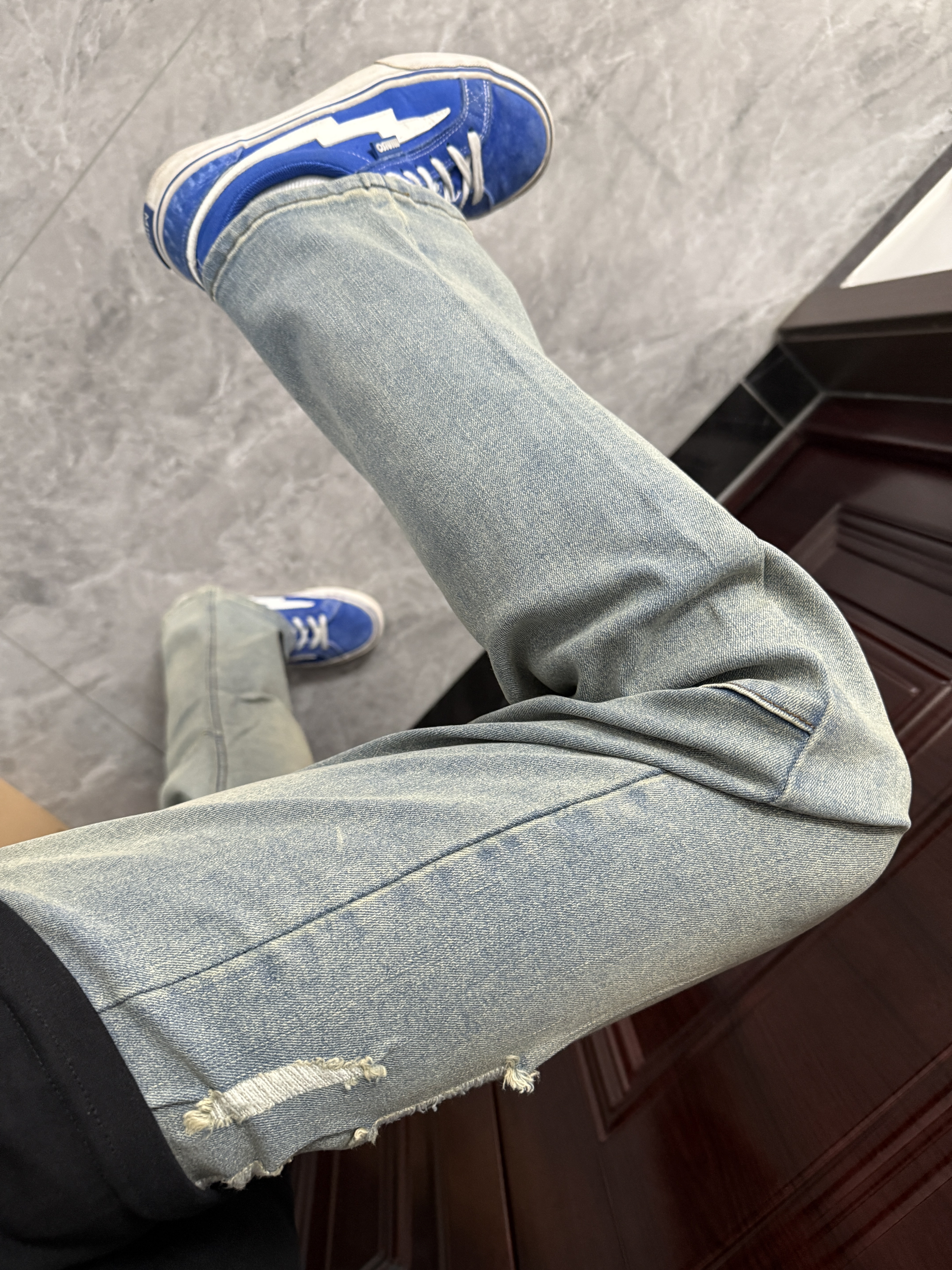 不得不说这套穿搭真是百穿不腻!直筒修身牛仔裤百搭还显瘦,简单的浅蓝色显得很干净,破洞设计美式感十足,很有质感,和这双小蓝板鞋适配度拉满!好喜欢这套穿搭!