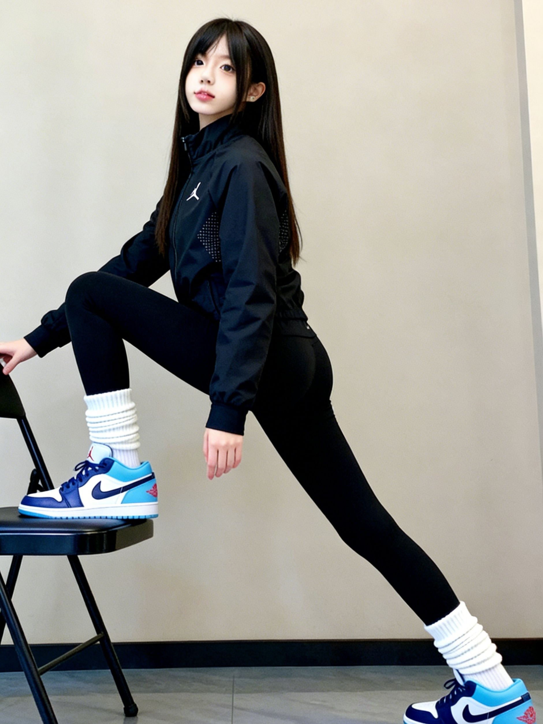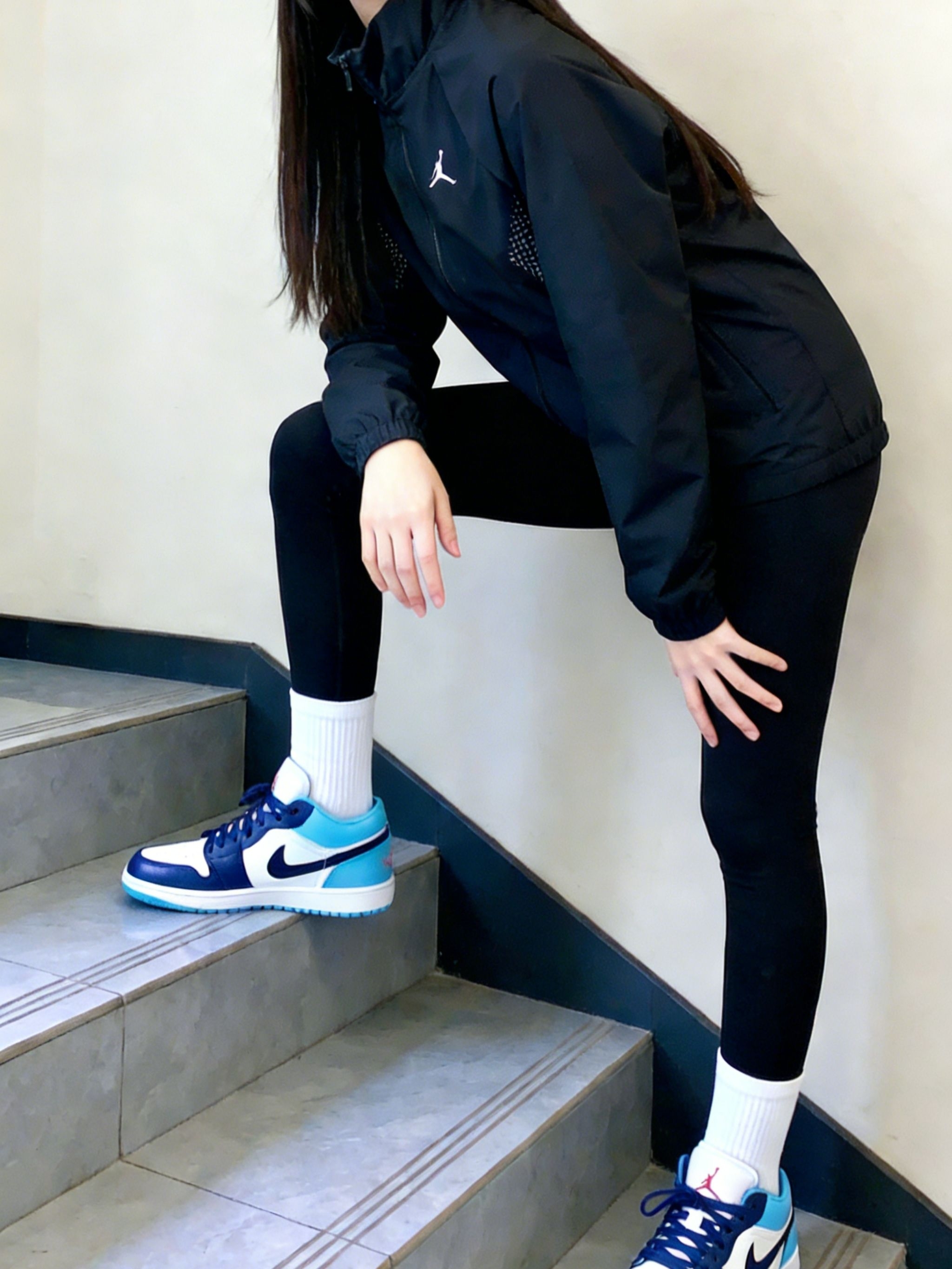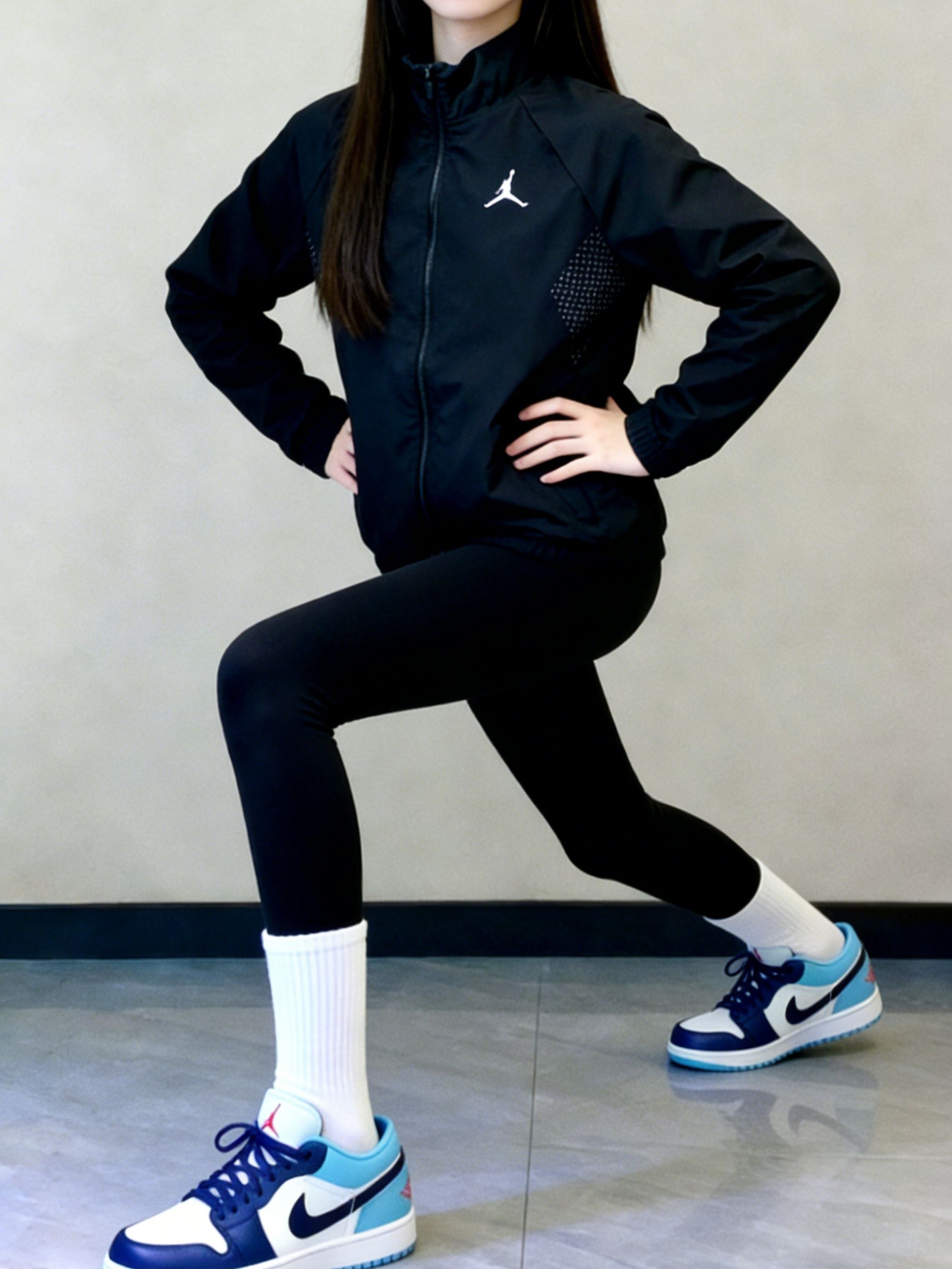这身全黑运动穿搭真的爱惨了~Jordan黑色冲锋衣轻薄又挡风,面料带点透气网纹,运动时穿完全不闷😌。搭配的鲨鱼裤弹性超足,高腰设计还能收小腹,贴腿但不勒,显腿细效果拉满!脚上是AJ1 Low黑曜石北卡蓝配色,蓝白撞色给全黑穿搭添了亮点,脚感软乎乎的,走路逛街都舒服~ 搭配上我选了堆堆白袜,中和了鞋子的硬朗感,甜酷平衡得刚刚好✨。单穿这套运动风超飒,外搭大衣或牛仔外套也能秒变休闲风,日常出街超百...