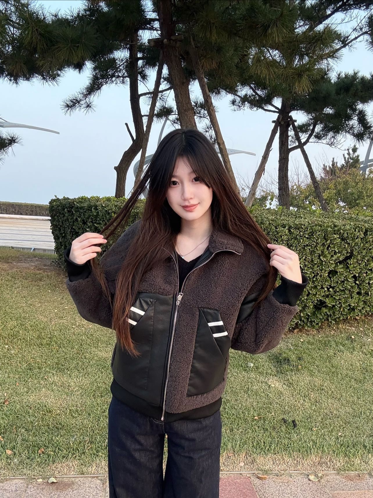 PAEFA 今天裹它逛公园,羊羔绒+皮质拼接自带美式复古调调,金属拉链+大口袋戳中细节控,宽松版型蹲坐摆姿势都自在🌿 搭黑裤是酷飒痞帅风,配牛仔裤又秒变街头松弛感,冷风吹着都暖得刚好!!