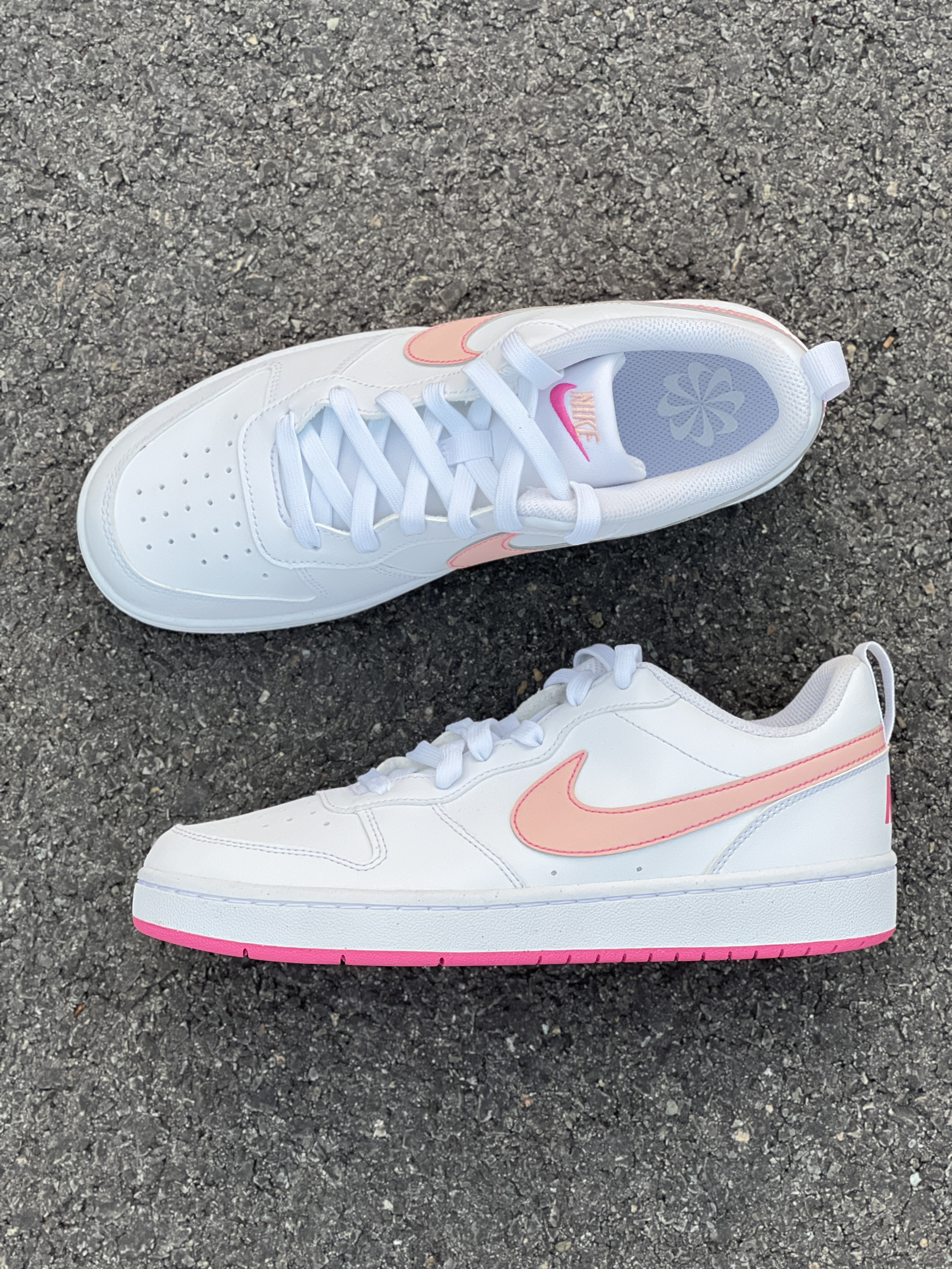 今天和大家分享一双学院风的Court休闲板鞋👟 鞋面是光滑的合成革材质,便于日常打理! 白粉配色很适合甜美去穿,也很百搭! 刚开始穿鞋底偏硬,不影响通勤 尺码偏大,建议选择小半码