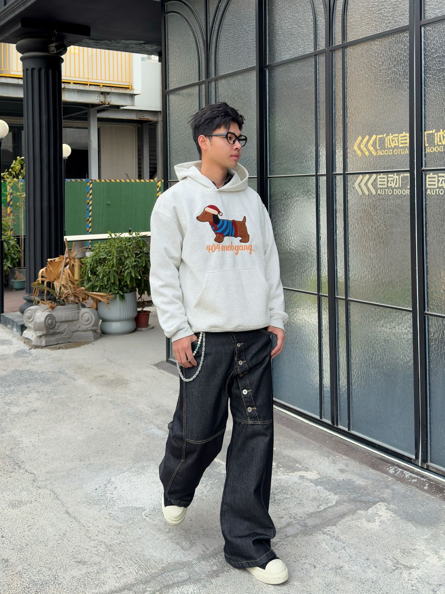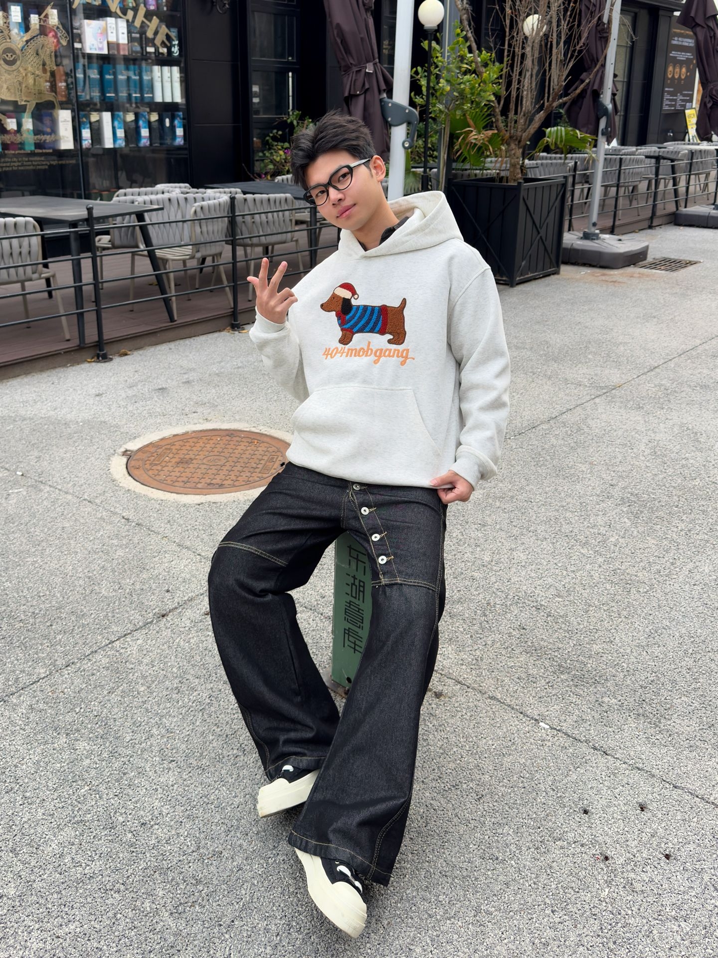 这件卫衣是软糯面料😌 贴身穿不扎肉,出汗也不会黏糊糊的~版型是微宽松的落肩款🤙 不会显臃肿,对肩宽星人也很友好!下身搭的阔腿黑牛仔裤是水洗牛仔面料👖 软乎乎的但又有点挺括感,不会塌塌的显邋遢~ 整套穿下来就是那种走路带风的松弛感✨ 不用刻意凹造型,随便搭双小白鞋出门都很舒服~