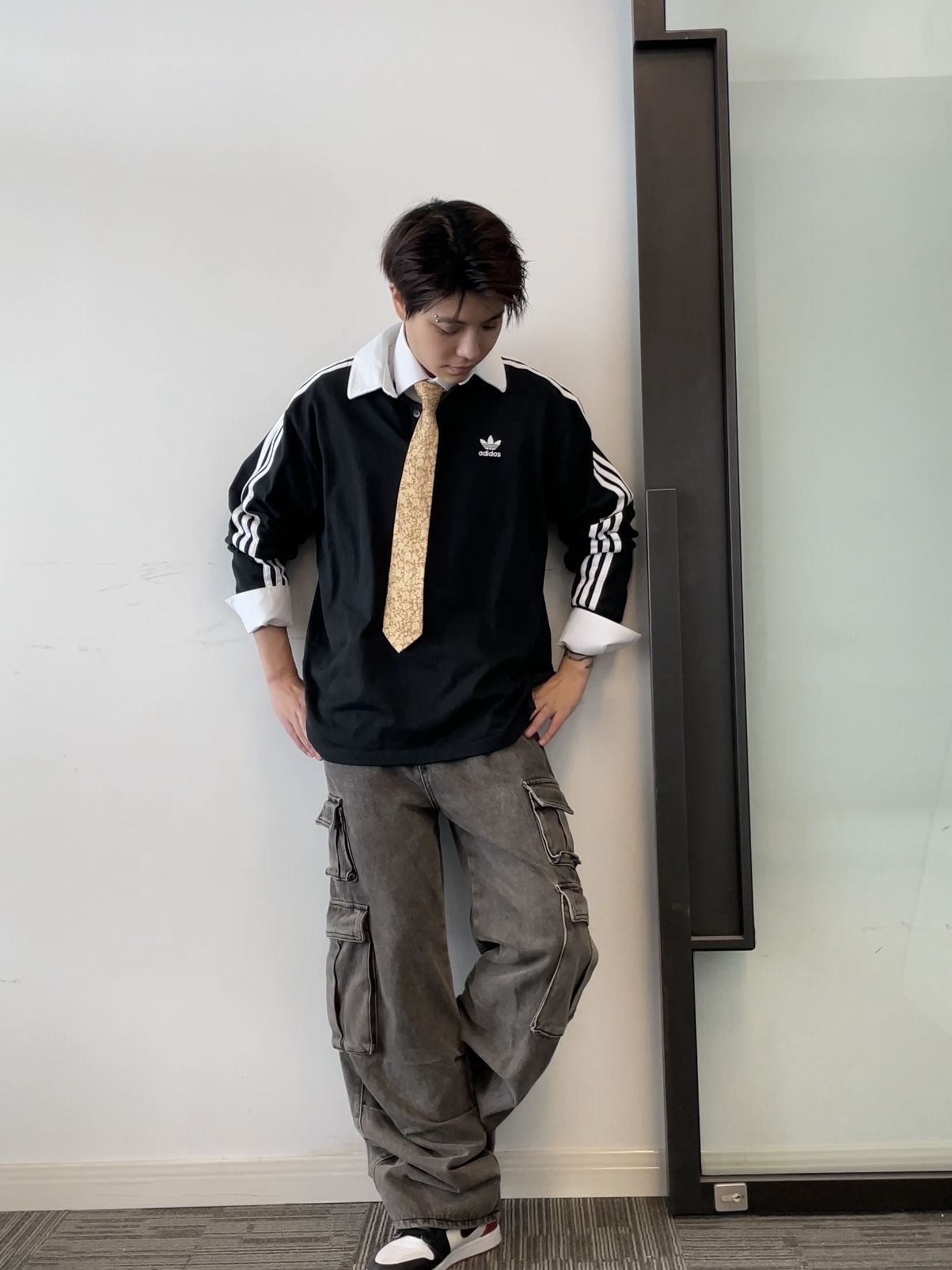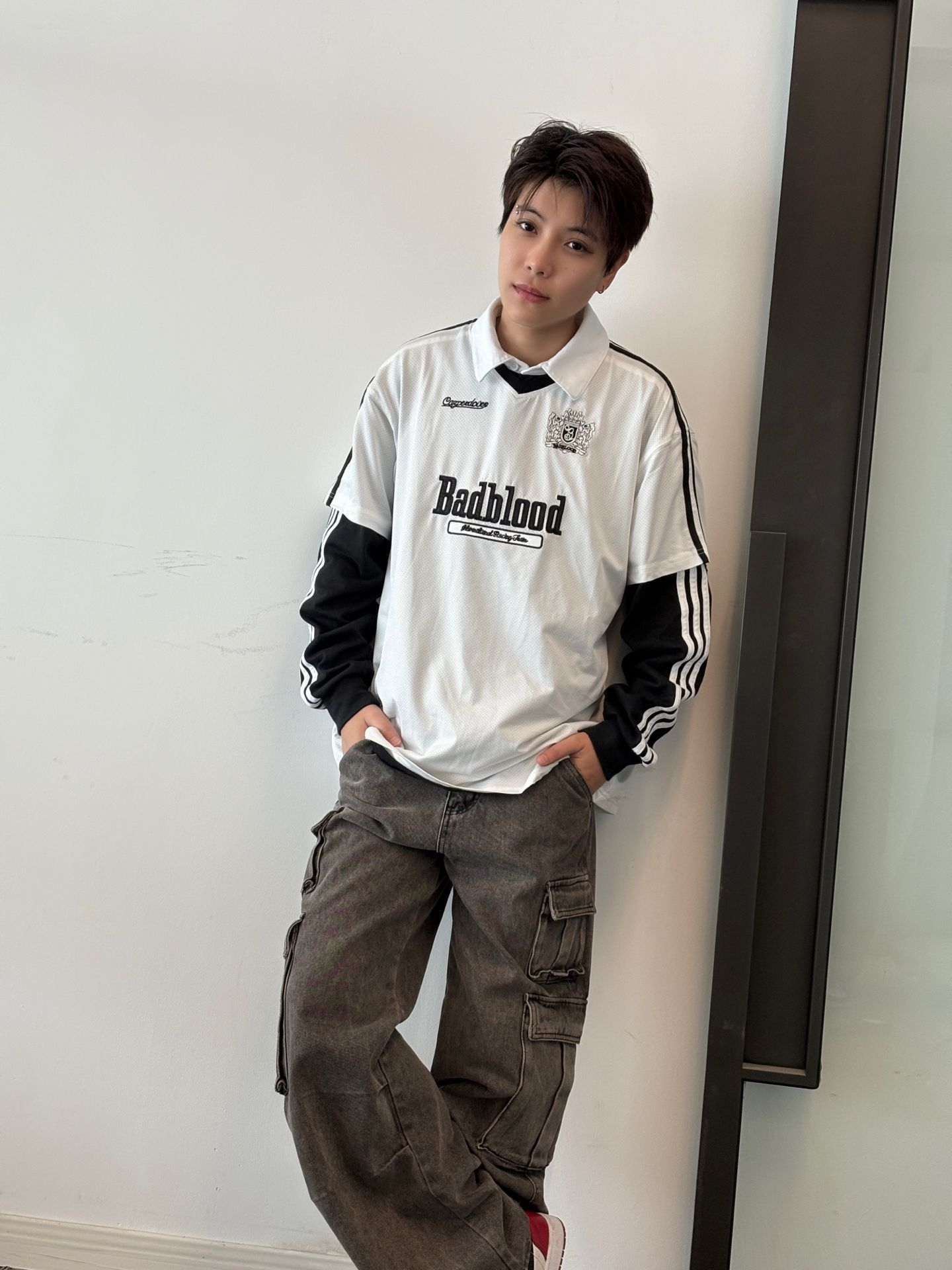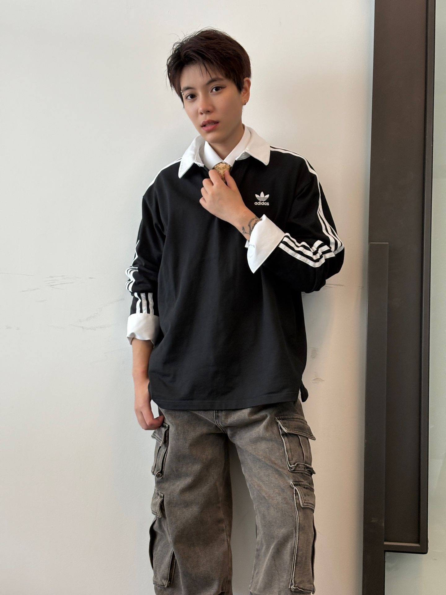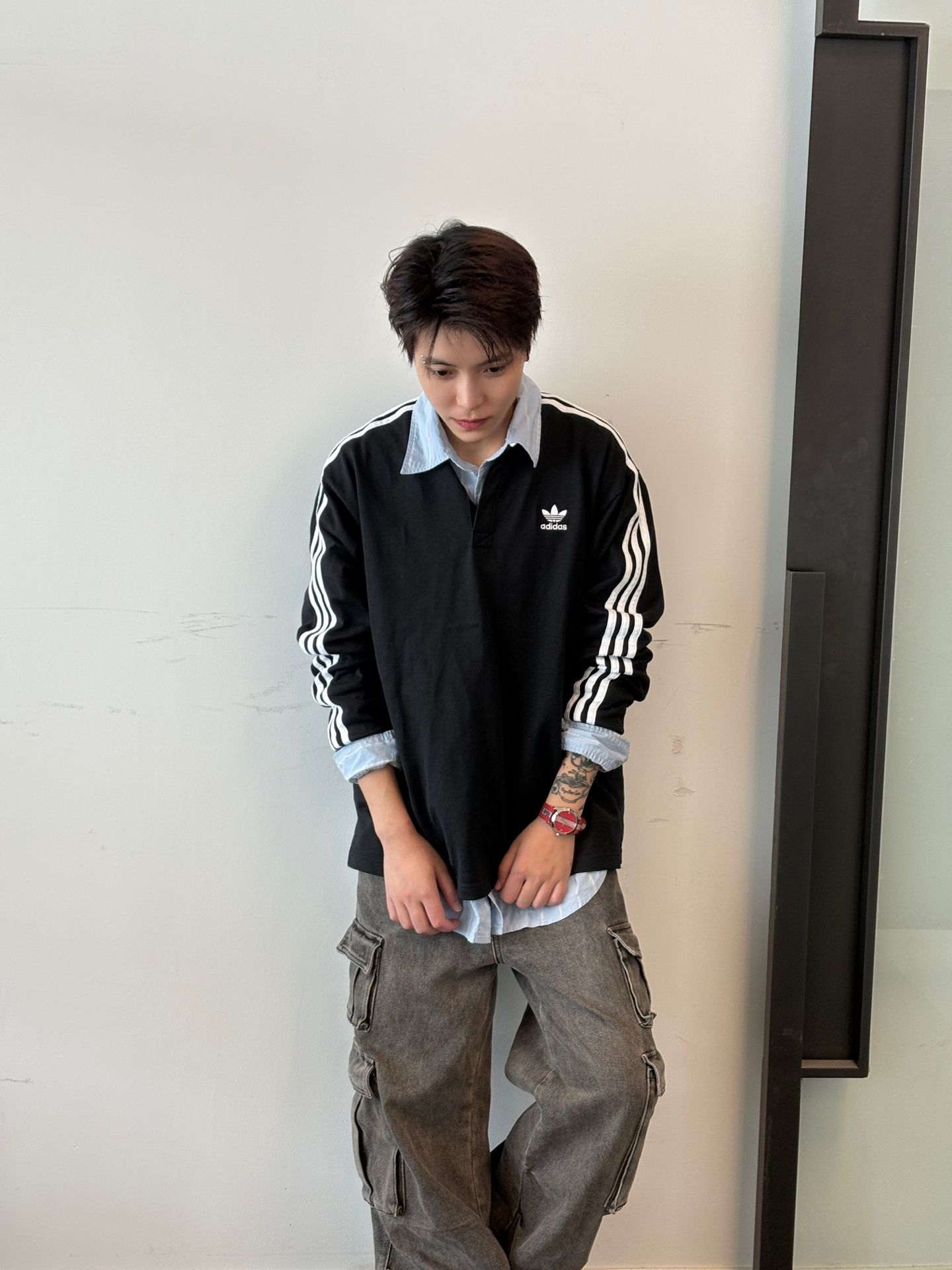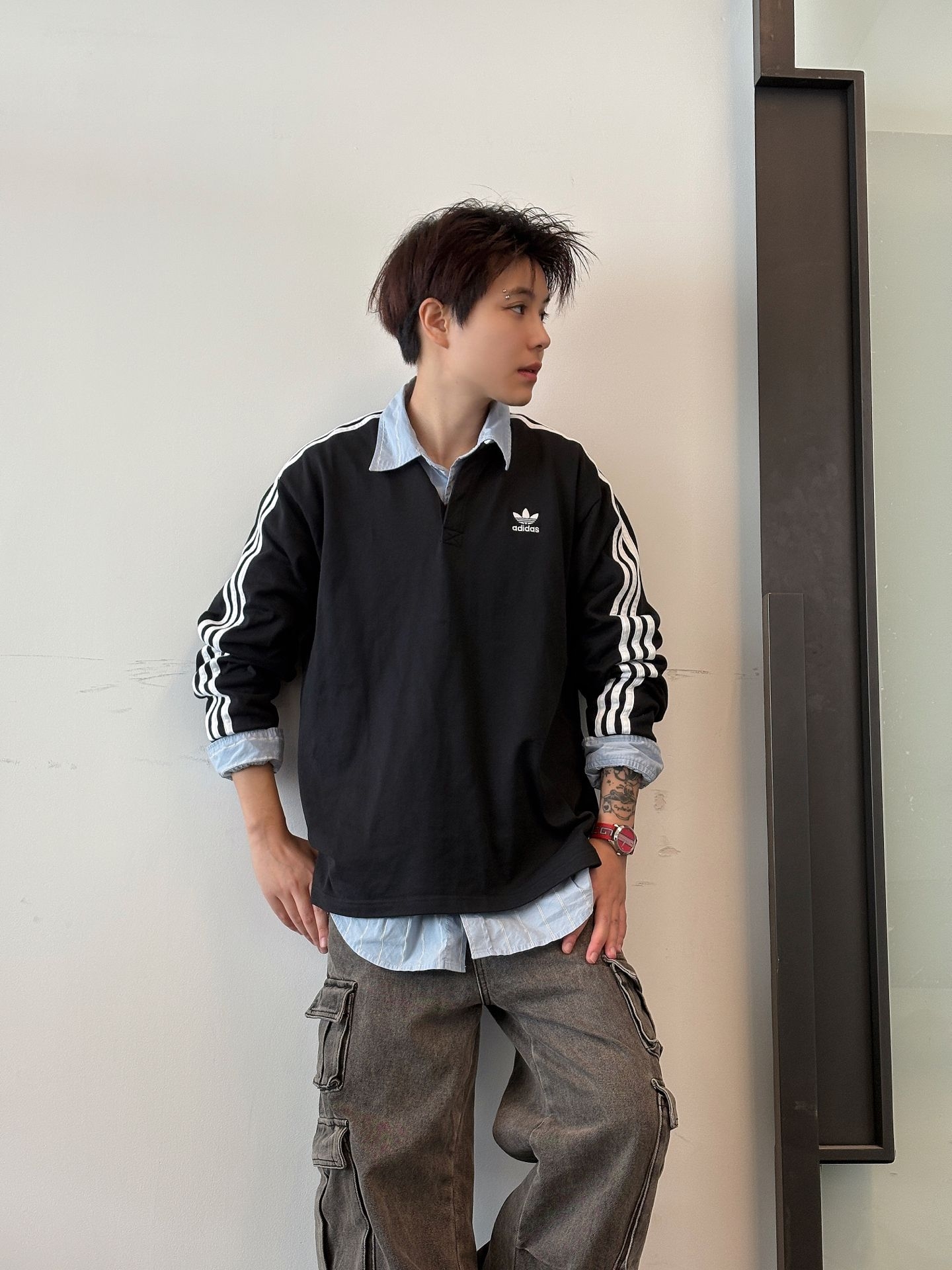 基础阿迪polo配衬衫领带,轻正式拿捏;叠穿浅蓝衬衫+工装裤 街头感拉满!还可以搭个blokecore风球衣叠穿假两件既视感!