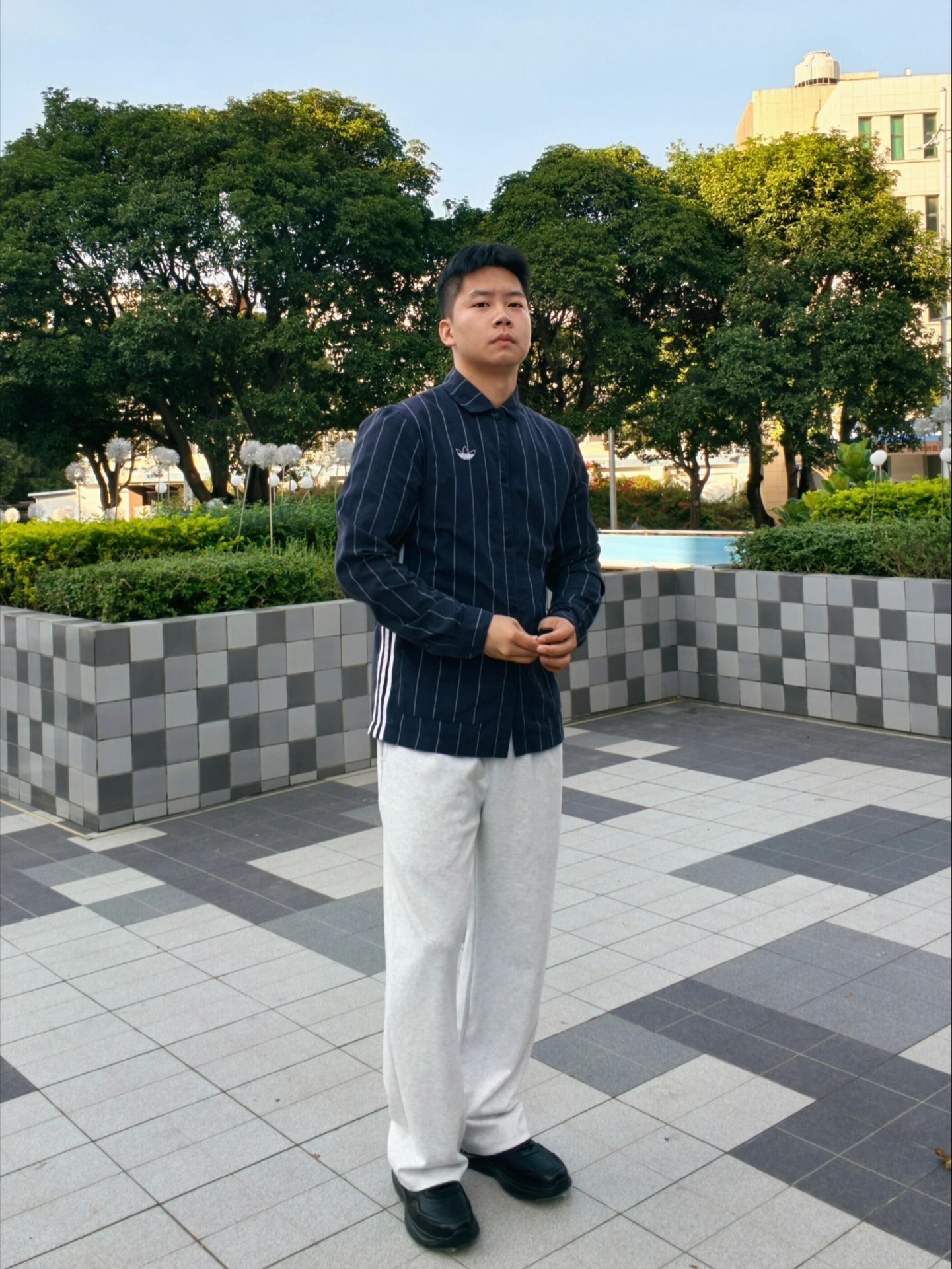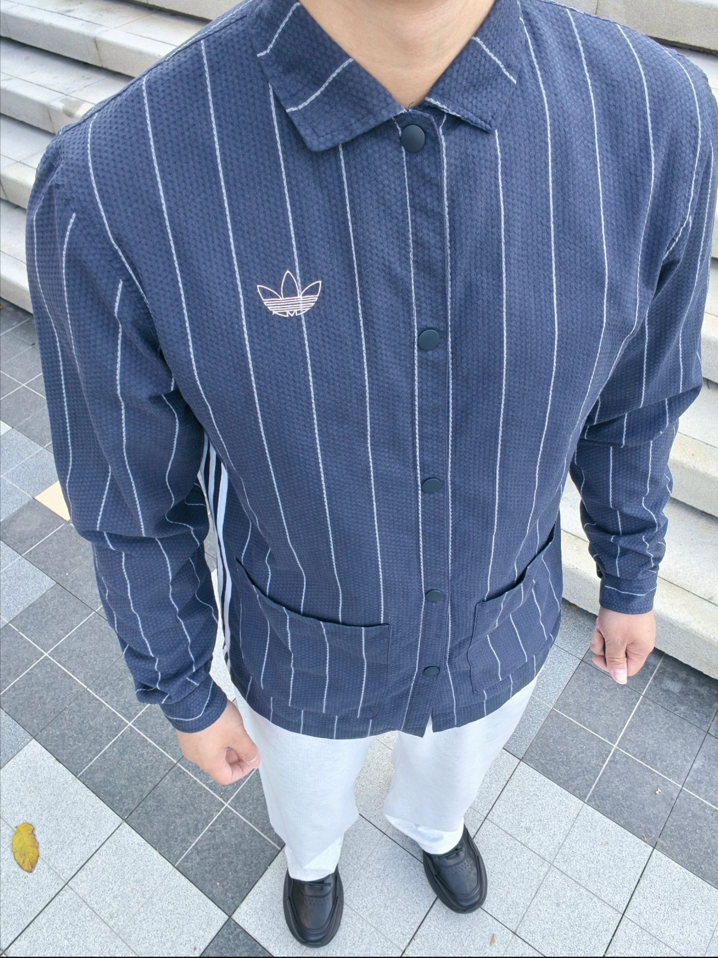 今天穿着藏青细条纹衬衫+浅灰阔腿裤👔 偏休闲的通勤穿搭 搭配这双牛皮革休闲鞋 皮面质感yyds 软皮不压脚 厚底软弹适中 混穿日常的更实在 舒服和体面都占了😎