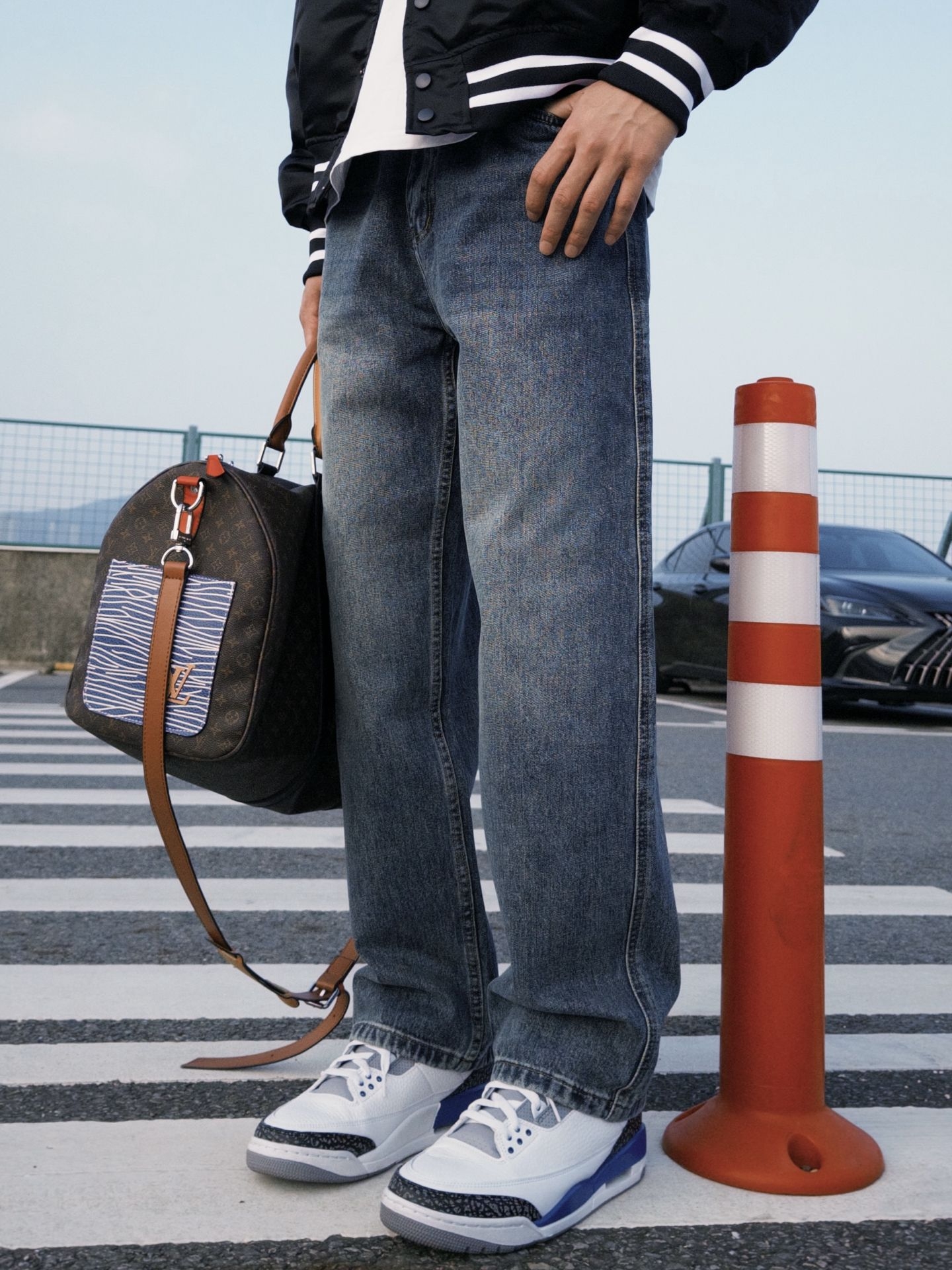 冬日ootd分享 主打一个美式街头感 棒球服➕牛仔裤的组合 Jeep的直筒牛仔裤 版型是我喜欢的 很修饰腿型 深蓝色搭配深色系的衣服就挺酷 是秋冬的百搭单品没错! 👦🏽183/63kg xl合身