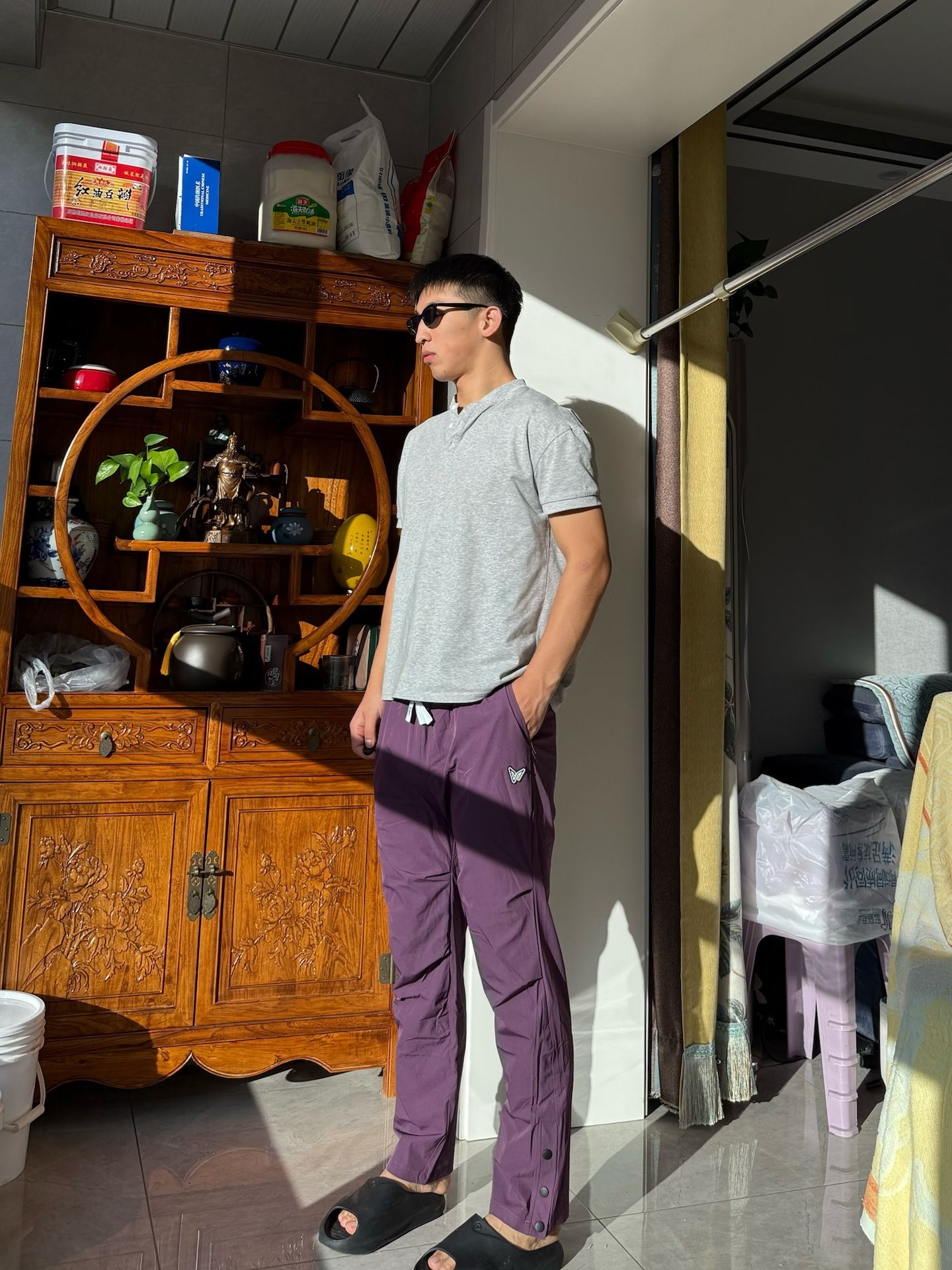 今天推荐的是来自 维动 VEIDOORN 的裂空美式休闲直筒拍扣裤👖 下身是一条维动VEIDOORN 紫色美式直筒排扣裤 裤子材质是棉纶和氨纶 面料轻薄 透气性强 裤脚两侧是排扣设计 美式感十足! 运动休闲两不误 面料是软软的轻薄面料 完全的不卡裆,不黏腿 这个排扣和直筒的款式太加分了!!! 我182体重150穿XL