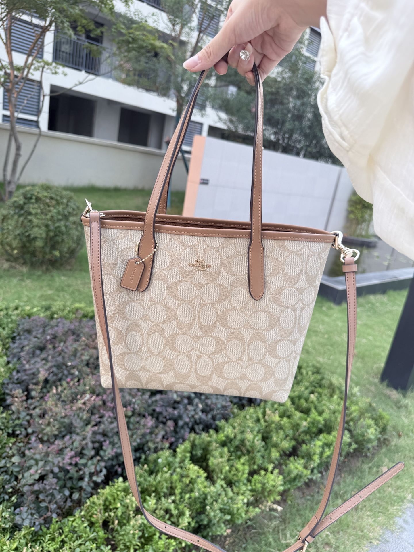 本篇笔记关联了Coach City 23 小号 经典老花按扣大容量帆布拼皮托特包Tote包购物袋手提包单肩包 奶茶色 等商品,为用户提供真实的使用体验和购买参考。