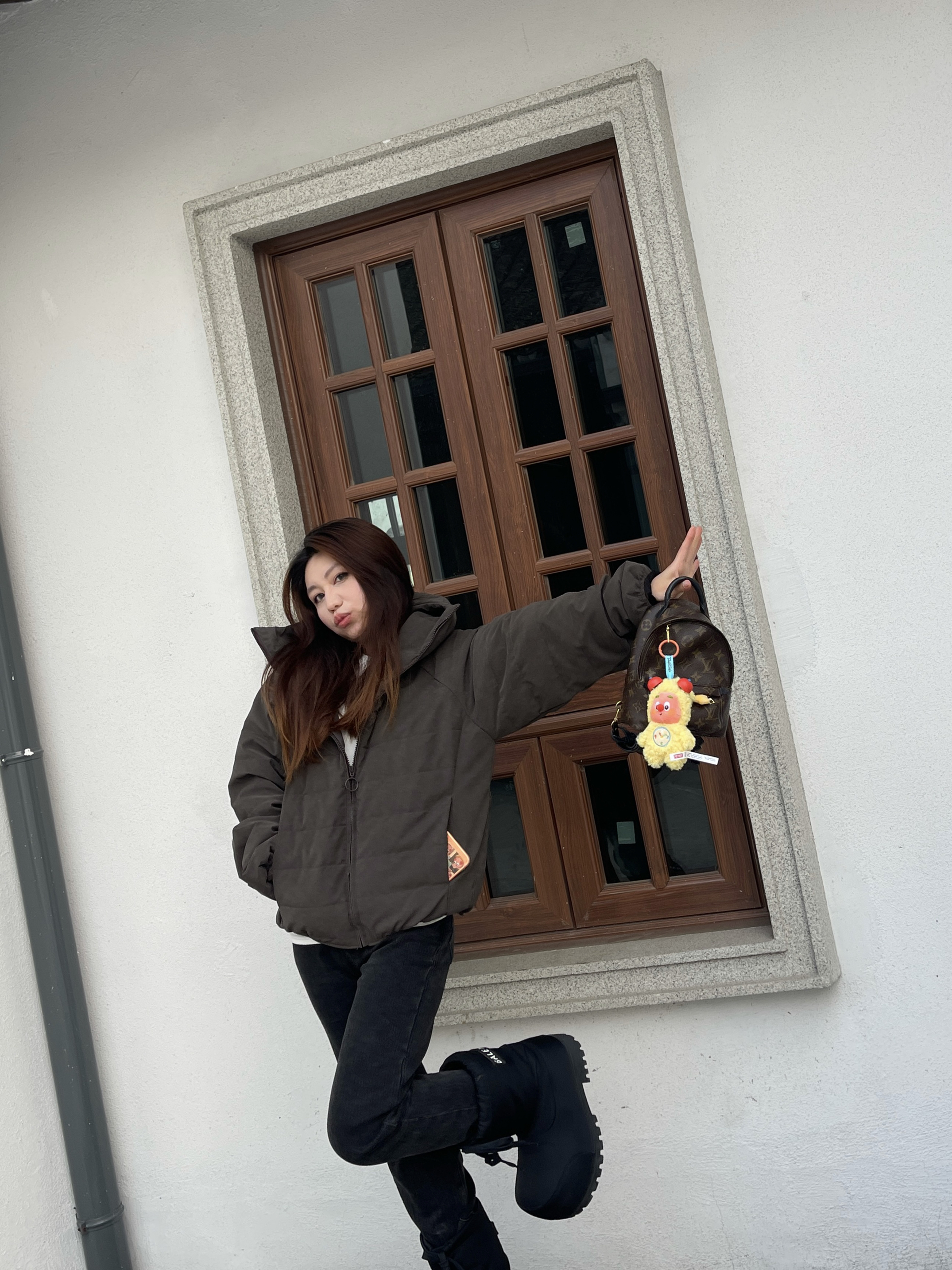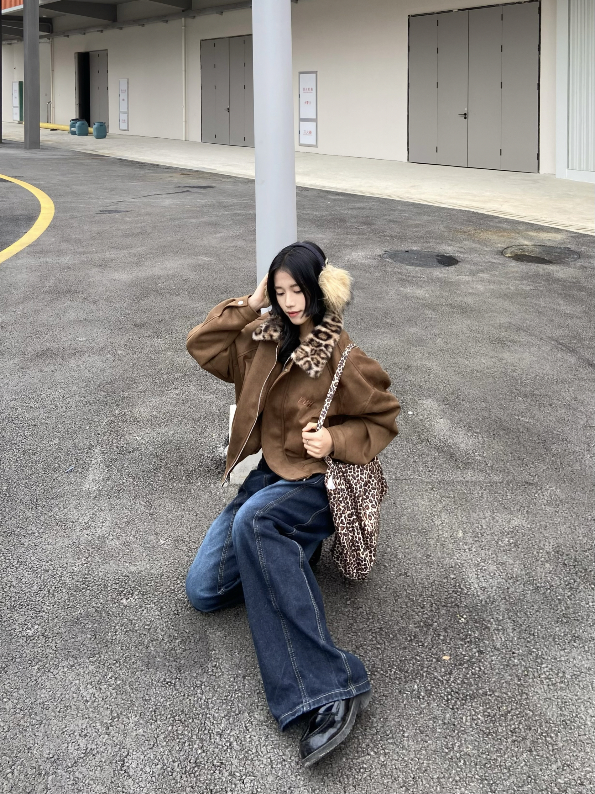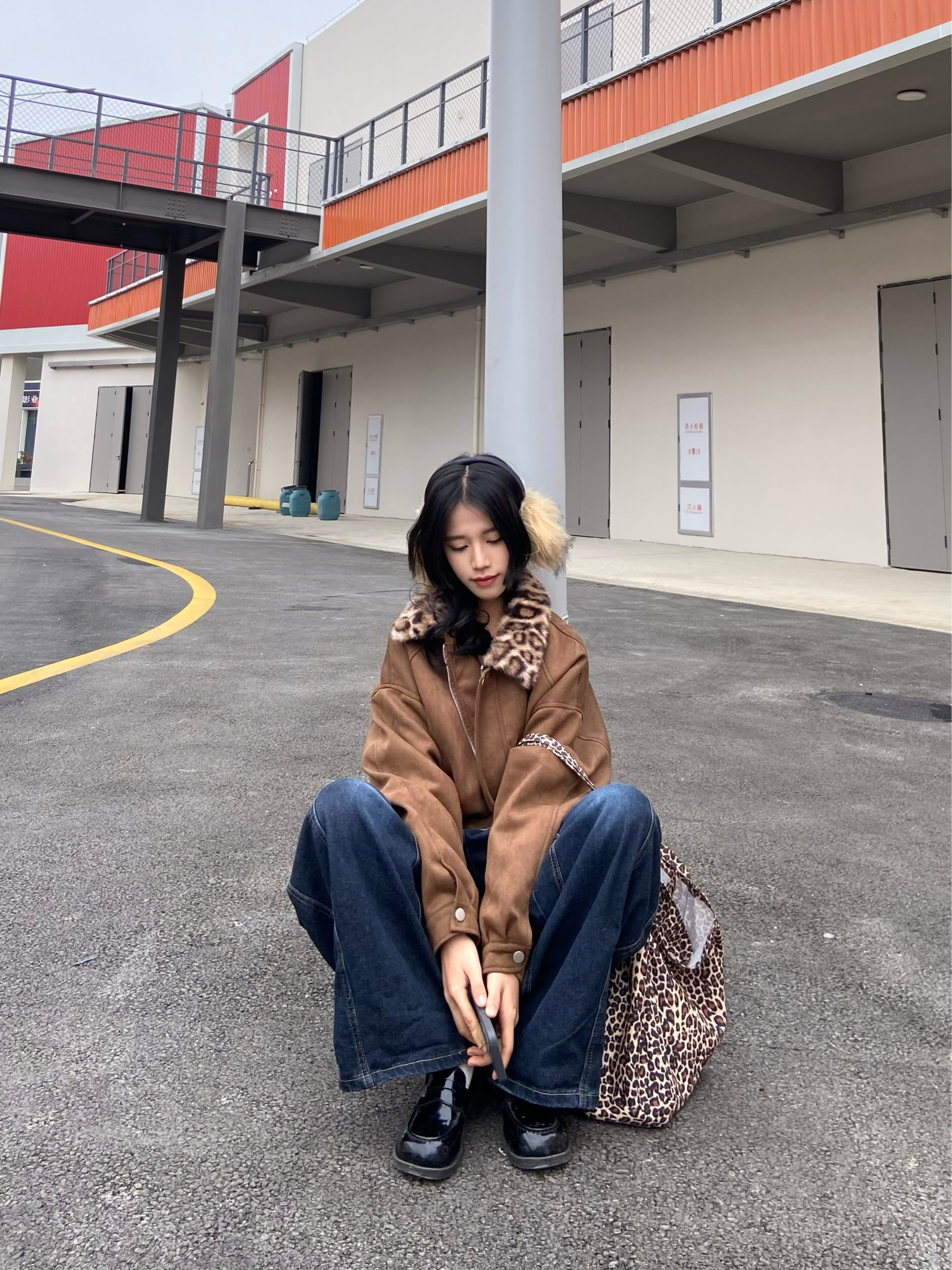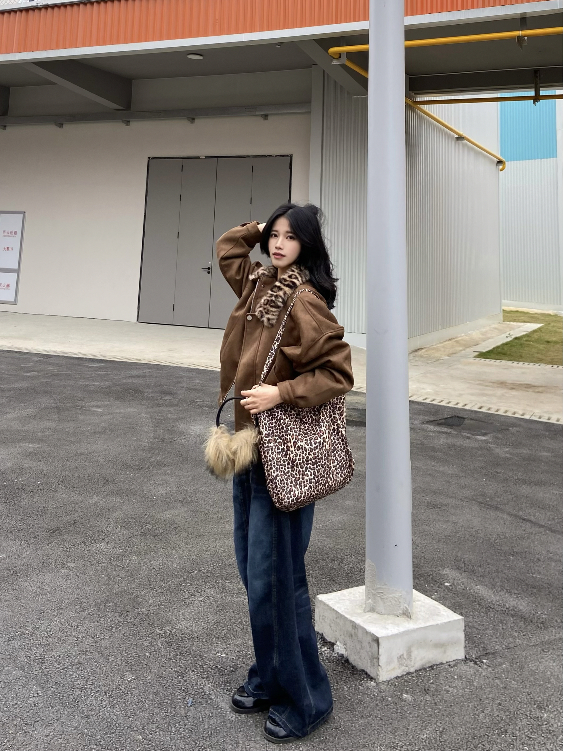 复古棕咖调的外套好特别! 豹纹毛领的小众设计😁 到手质感软乎乎毛茸茸 版型正很遮肉复古风拉满🫧