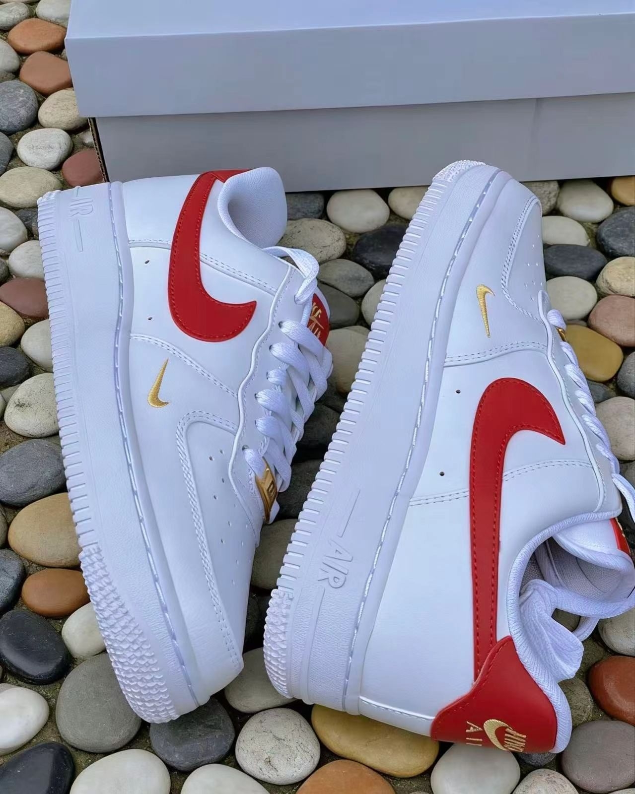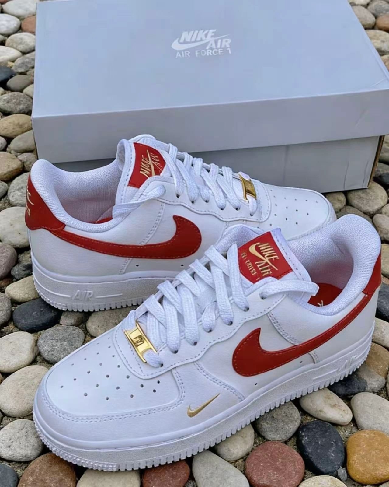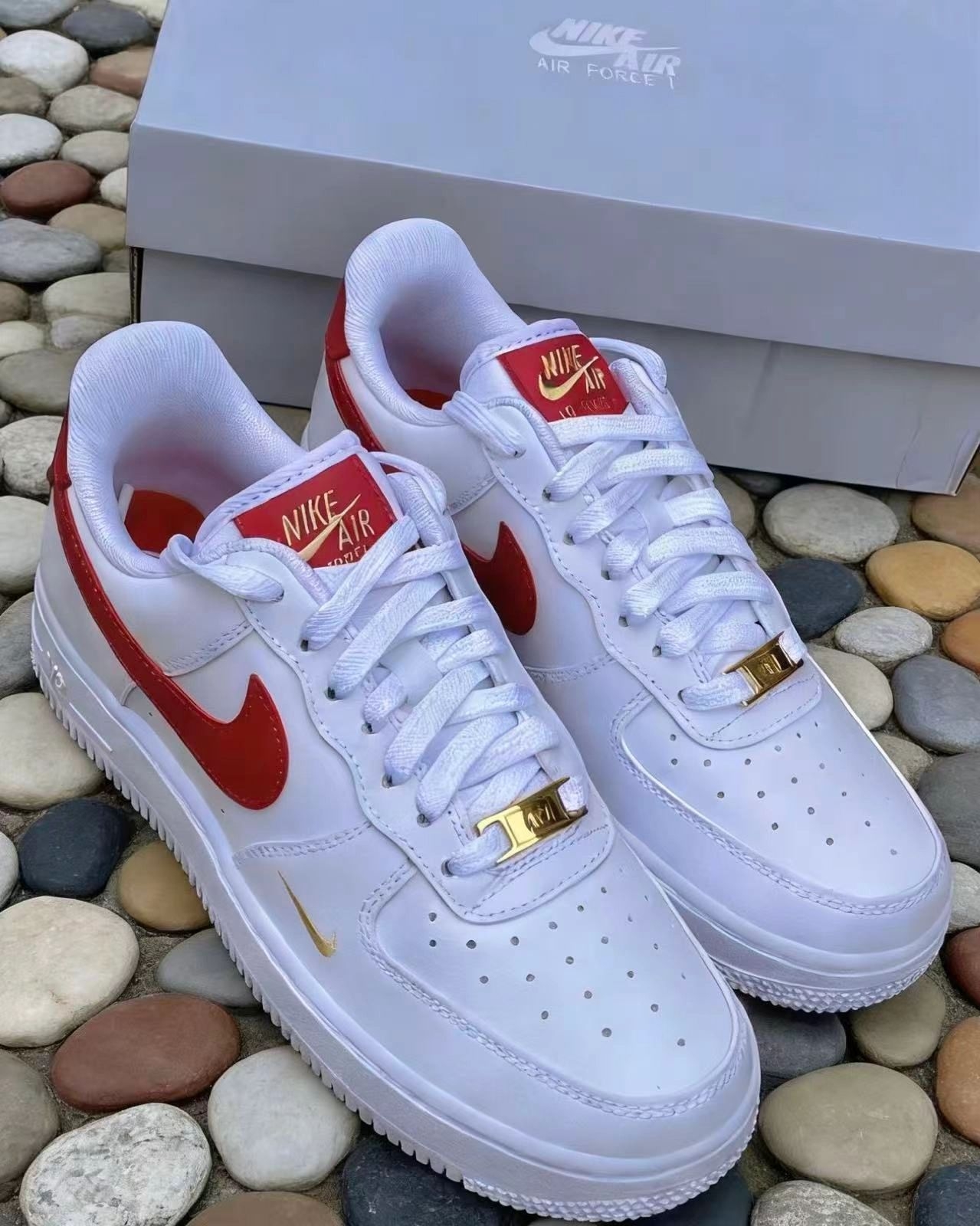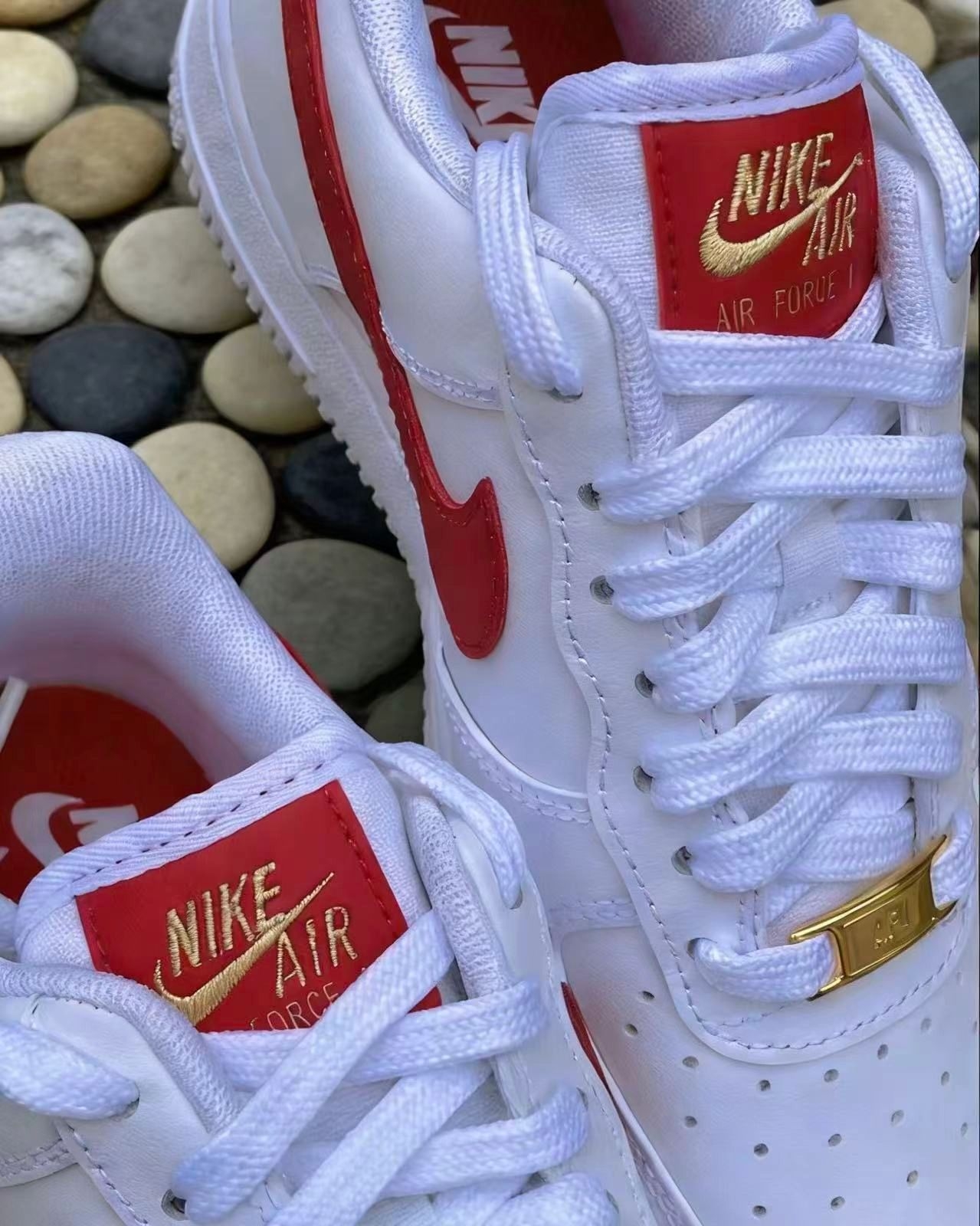 情人节礼物锁定!这双「白红金钩」AF1,送女友很难不爱❤️|||💫:Nike Air Force 1 ‘07 白红女款 | 听说这双鞋上,藏了一颗“会发光的红心”❤️✨ 💫:整双鞋以经典白色皮革包裹,干净又百搭⚪️ 最大亮点在于—— · 一抹亮眼红钩:侧身红色 Swoosh 像一笔跳动的色彩,打破纯白的静谧 · 金色细节加持:鞋舌与后跟的 “Nike Air” 刺绣、鞋带前的 AF1 勋章,都缀以...