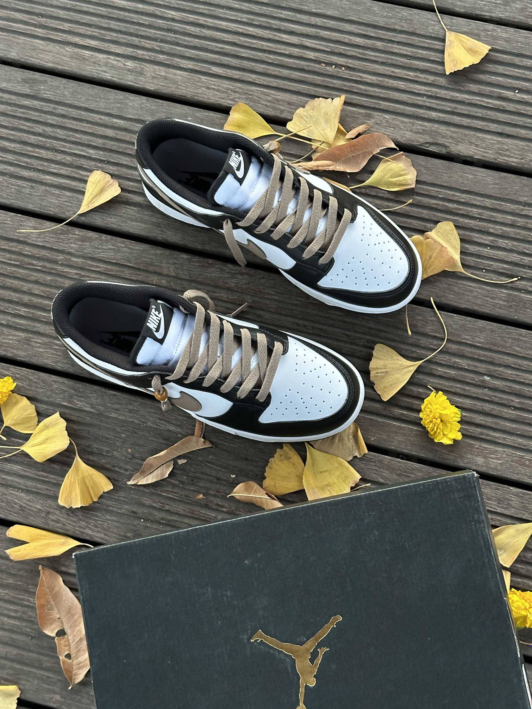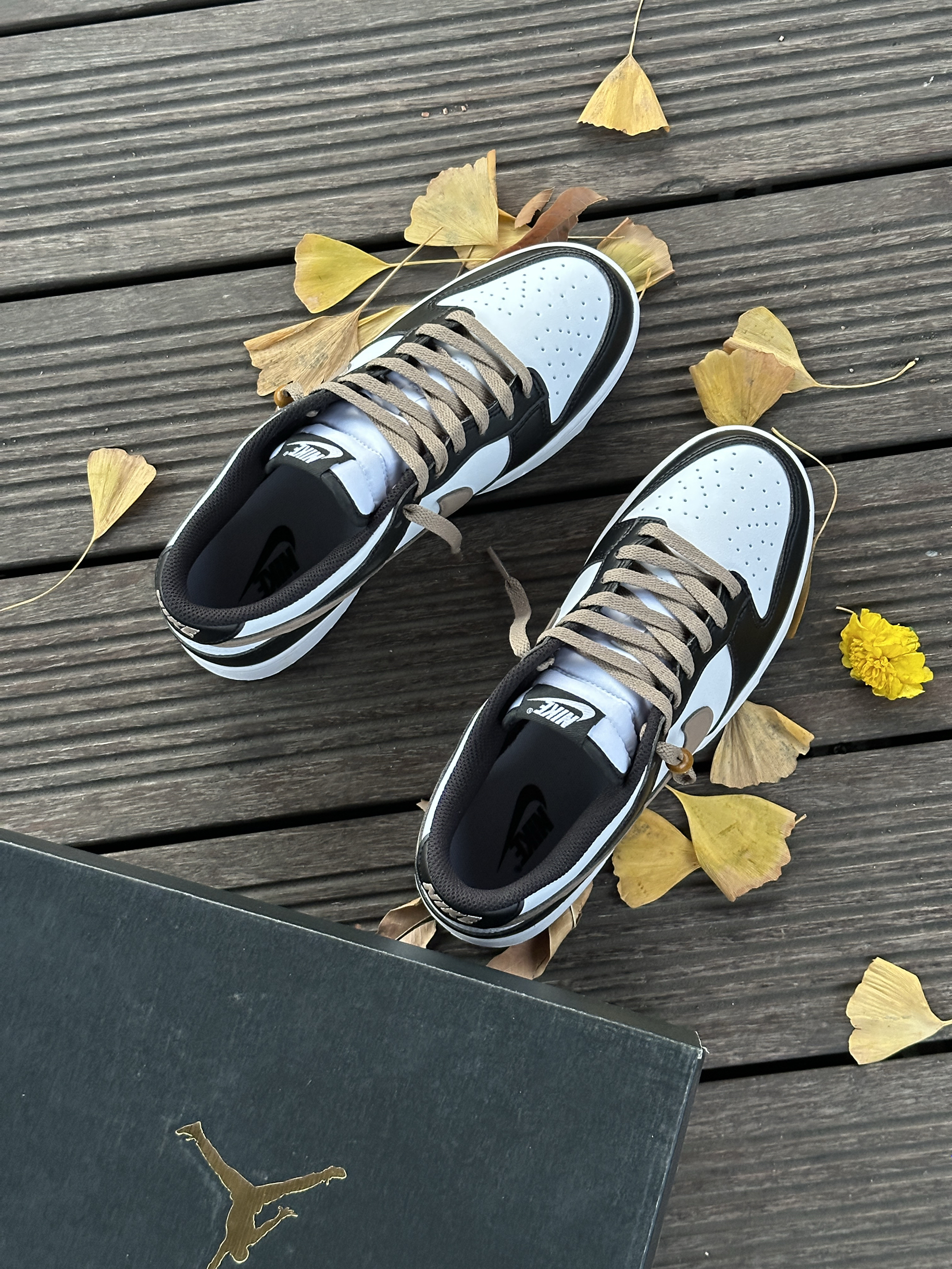 这双摩卡低帮AJ1出门半个月,聊聊实际体验。首先配色是真的耐看,黑白棕拼色搭牛仔裤、工装裤都很和谐,秋日出街拍图也上镜😌。鞋身是皮革材质,日常蹭到小污渍用湿巾一擦就干净,打理起来不费劲儿。脚感方面不算硬,日常通勤走个几公里,脚底不会有明显的酸累感