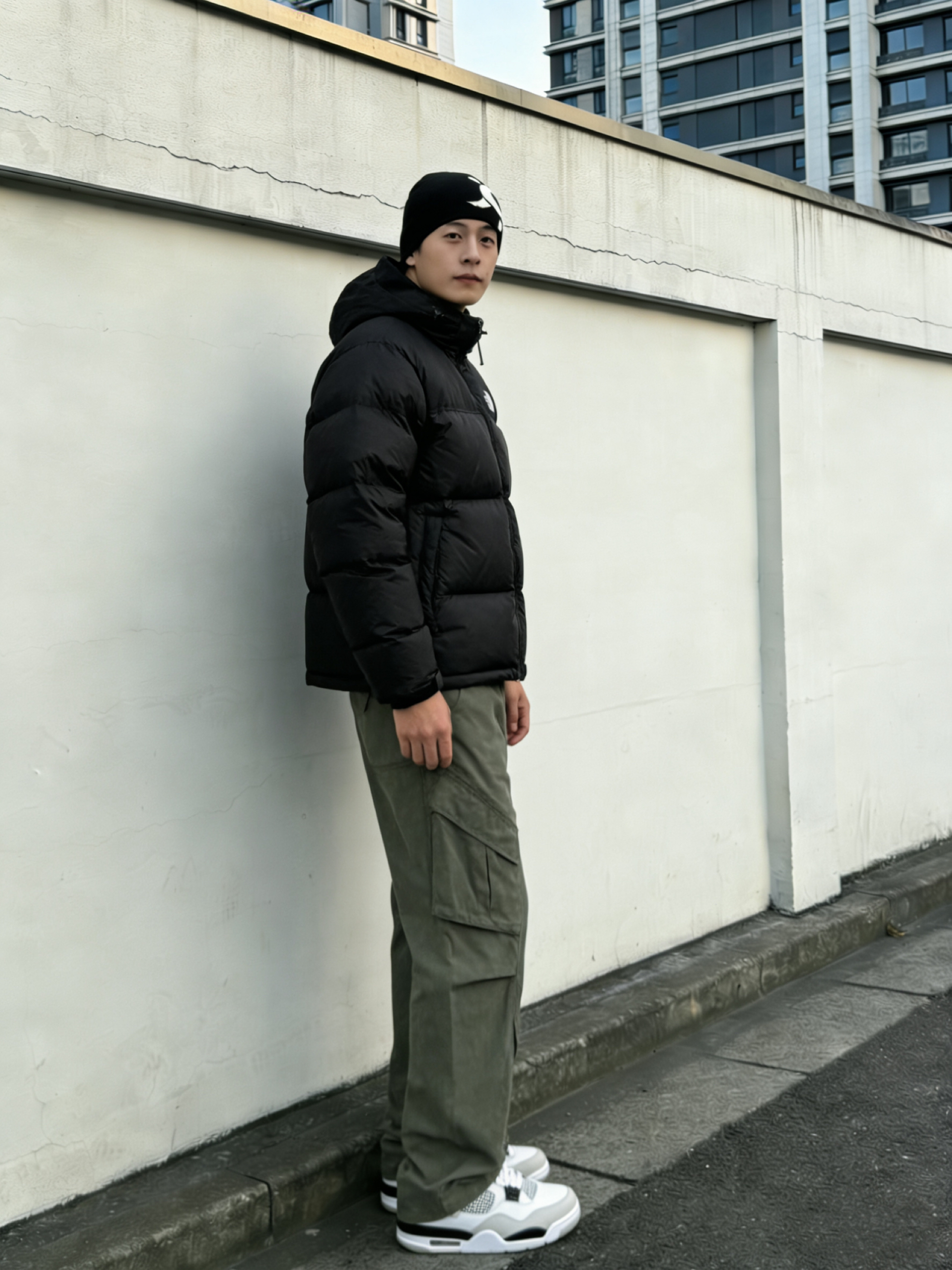 因为买了就后悔……后悔没早买!月初降温,早上哆嗦着出门,把这件套在卫衣外,瞬间像裹进热被窝。700蓬RDS鹅绒真的顶,零下天气里面一件T恤都行。别嫌面包服肿,黑色上身很利落,反而显腿细。拉链顺滑,口袋够深,通勤穿三年都不过时。贵是贵点,但省了年年换羽绒服的钱,算下来更划算。真香警告!