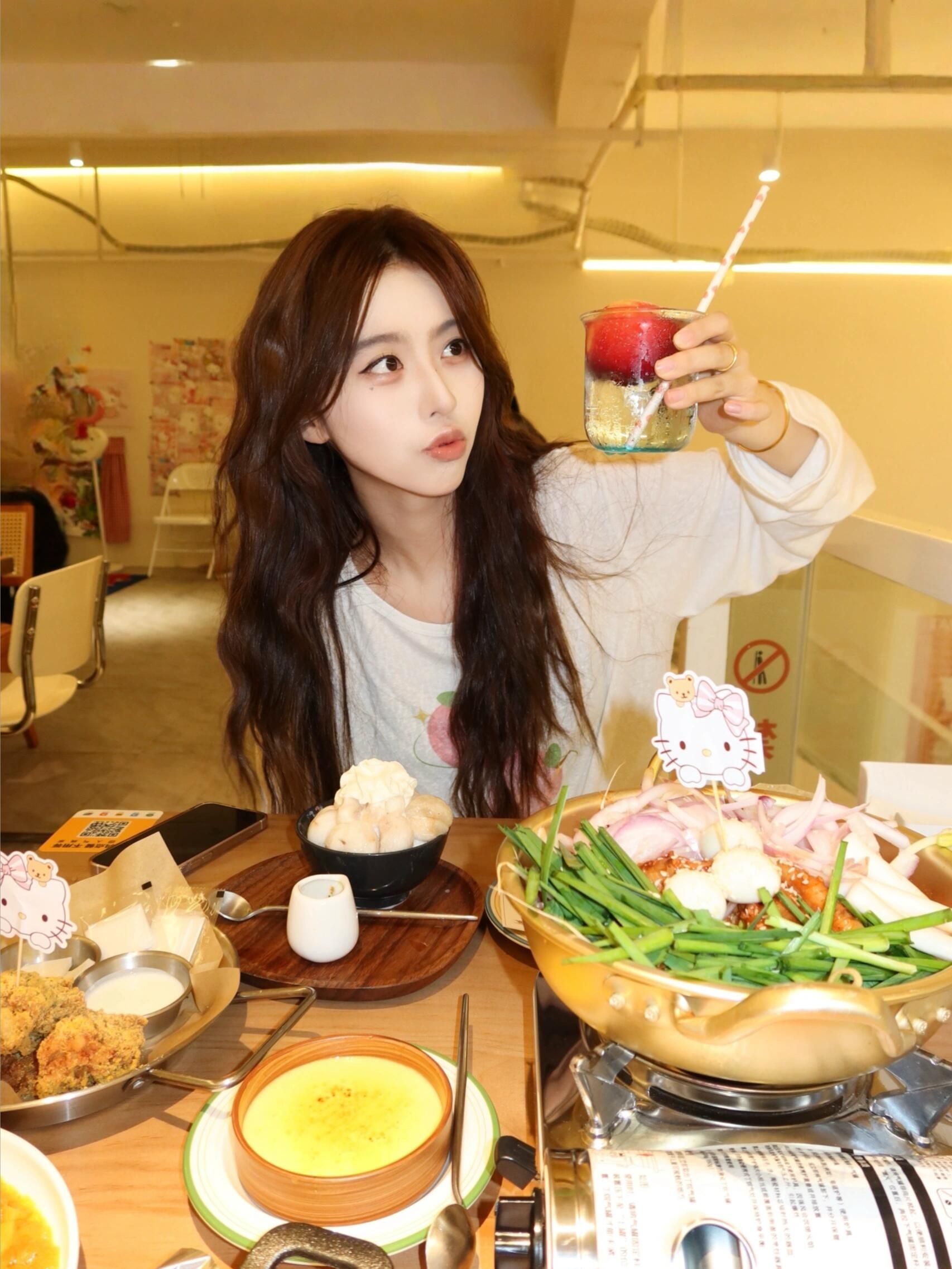 今天当一回韩系甜妹🍧 蟹蟹 Hello Kitty 萌萌的出席这顿晚饭~ 少女心直接爆棚 怎么拍都超级出片