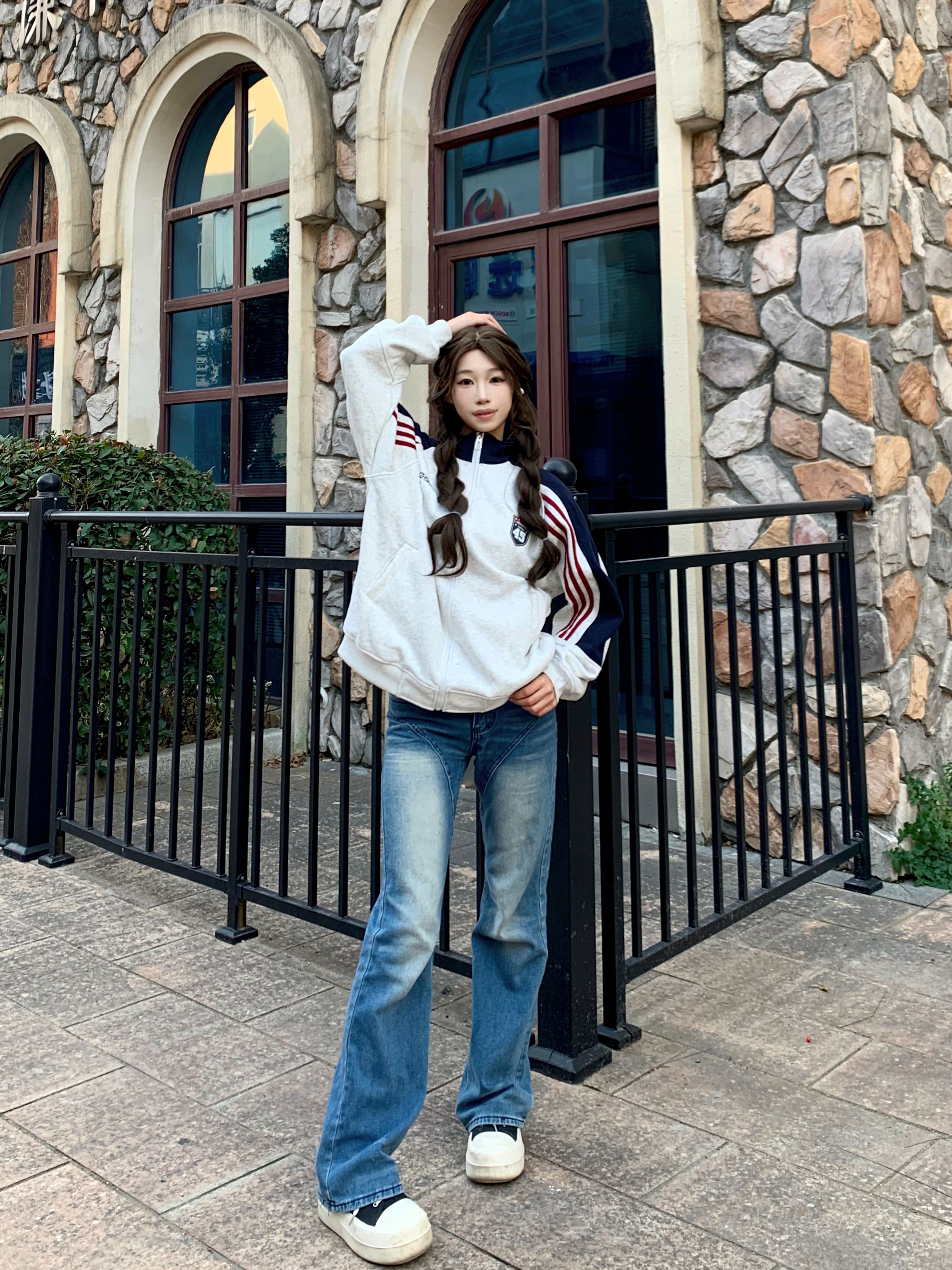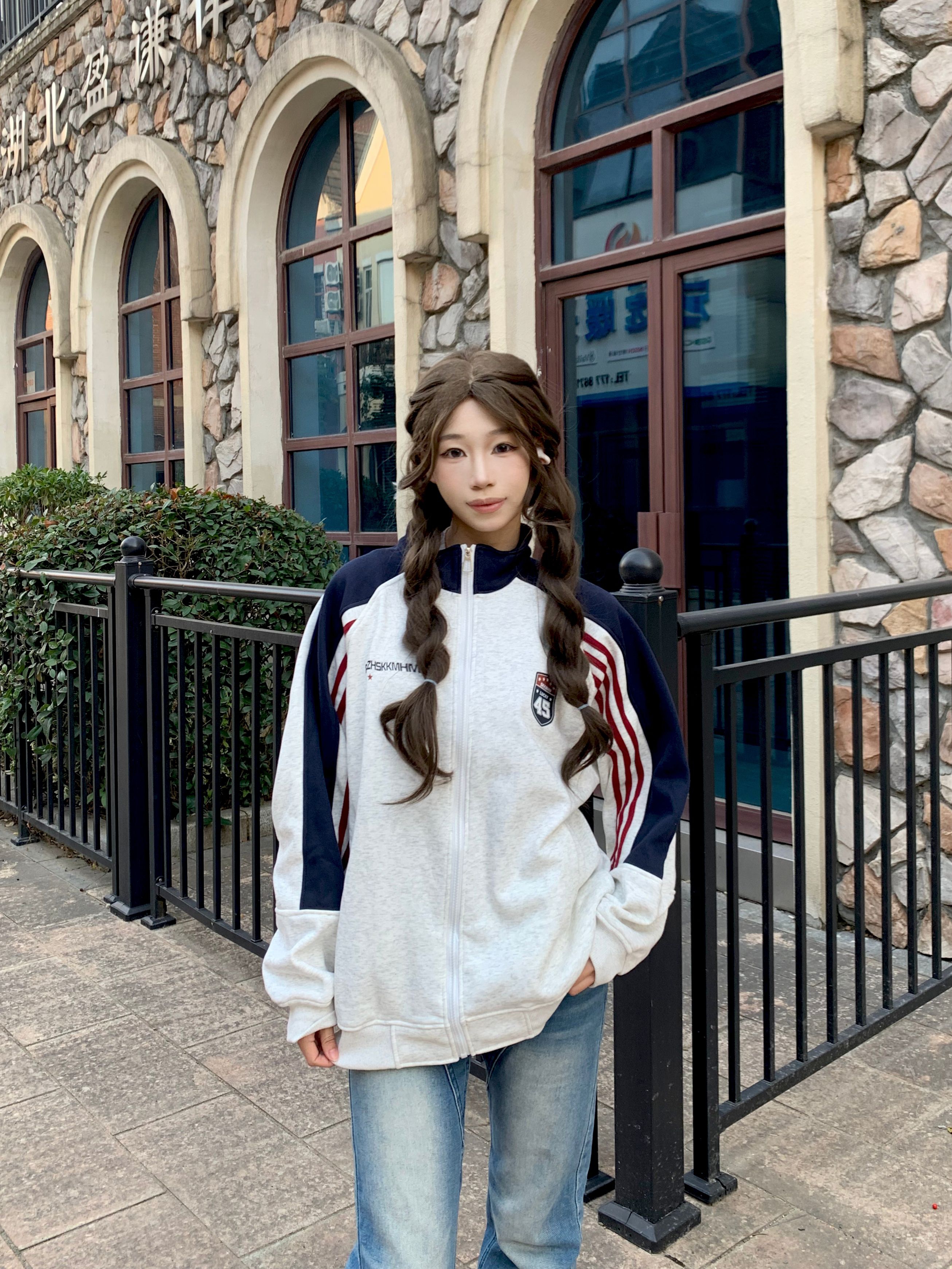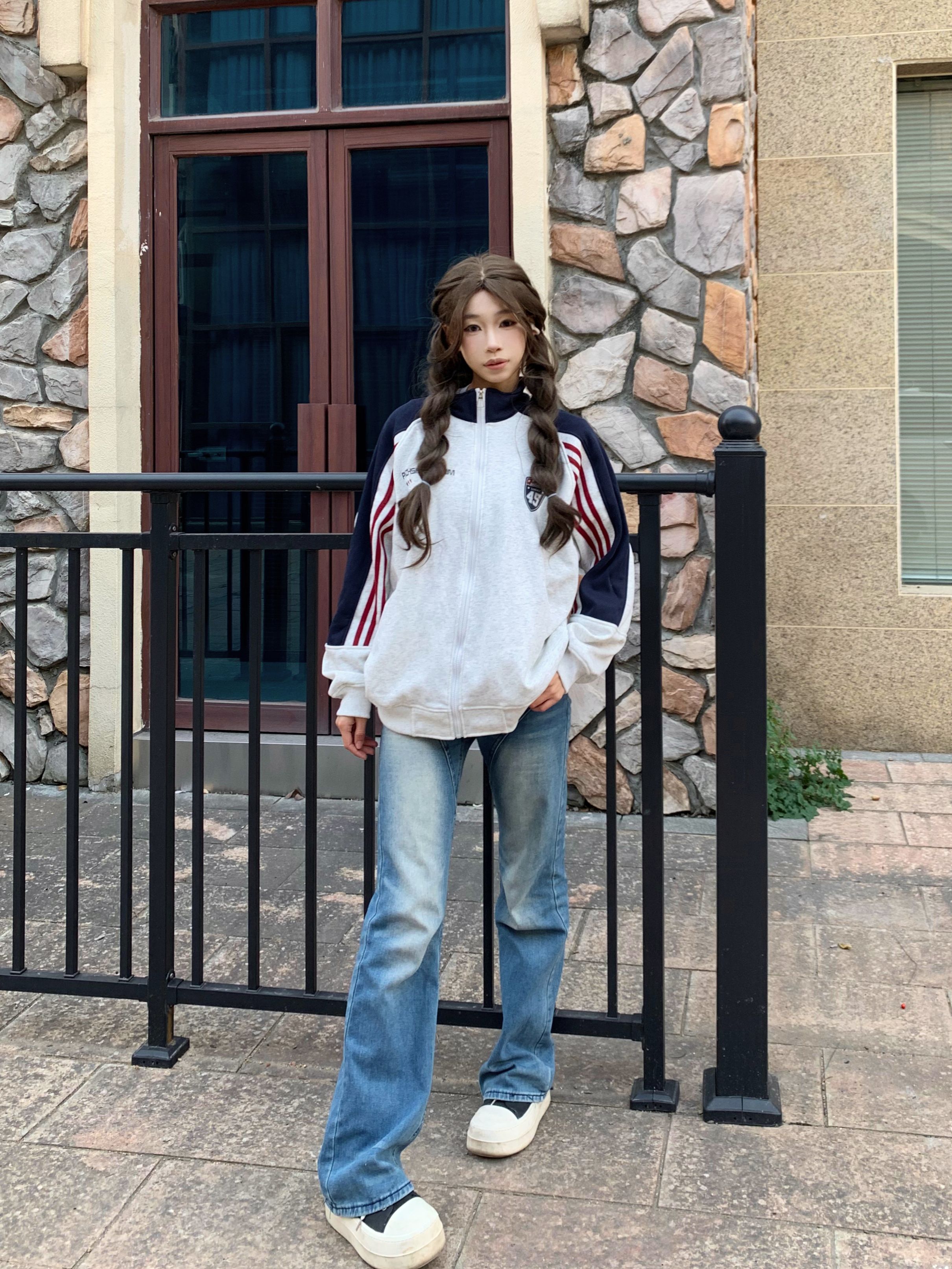- 🔹撞色拼接设计超有少年感,手臂处的红白条纹是点睛之笔,美式复古那味儿一下就出来了~ - 立领拉链款太戳我了!拉到顶是甜酷辣妹,拉开半拉链搭个白T恤,慵懒氛围感直接拉满❤️💙 - 面料是那种软软的毛圈棉,贴身穿都不扎皮肤,宽松的oversize版型把肉肉全藏住,120斤穿都显瘦😜 - 我身高160cm,穿M码长度到胯部,搭配直筒牛仔裤+厚底鞋,比例瞬间被拉长,小个子也能驾驭~ -...