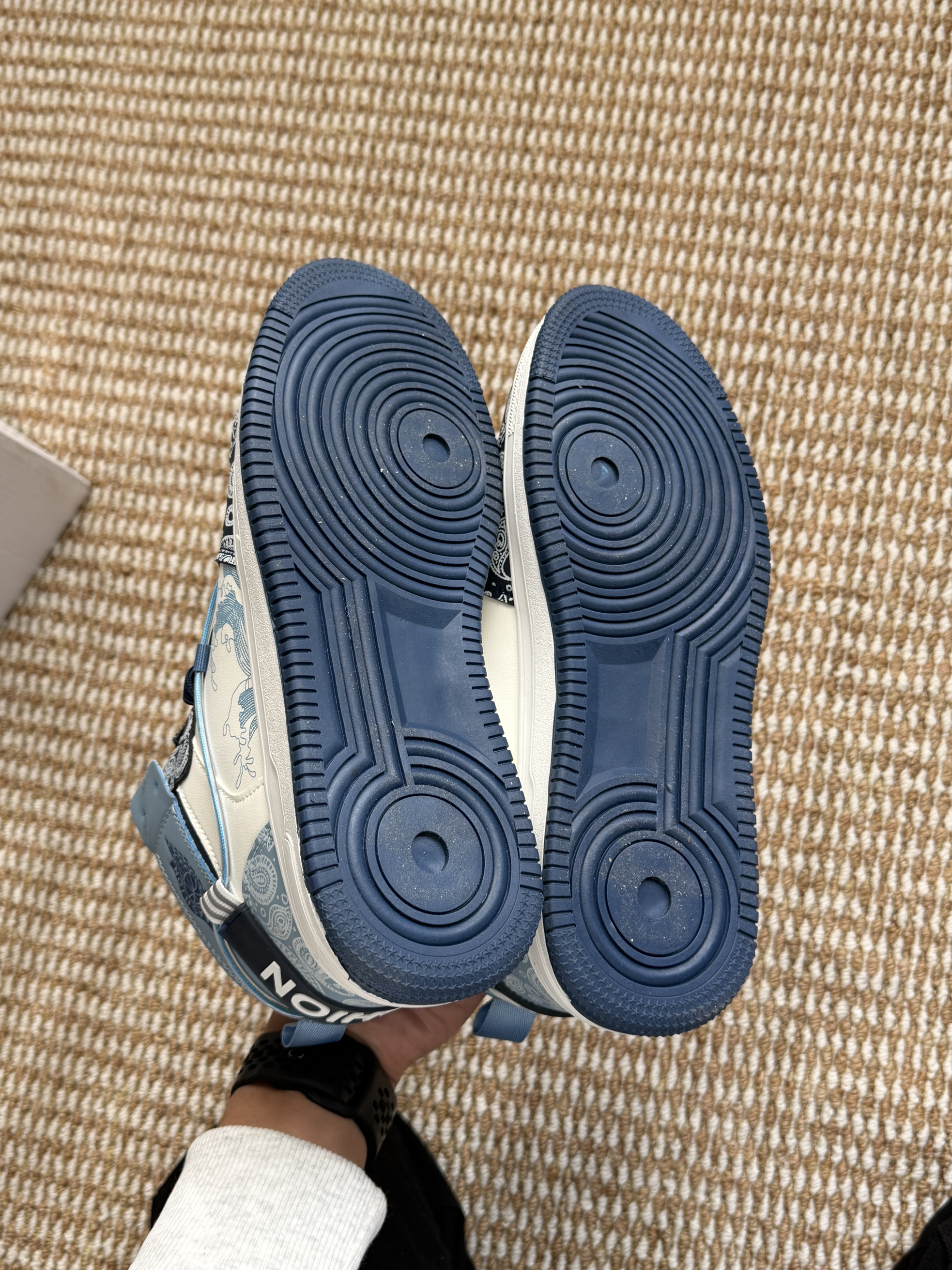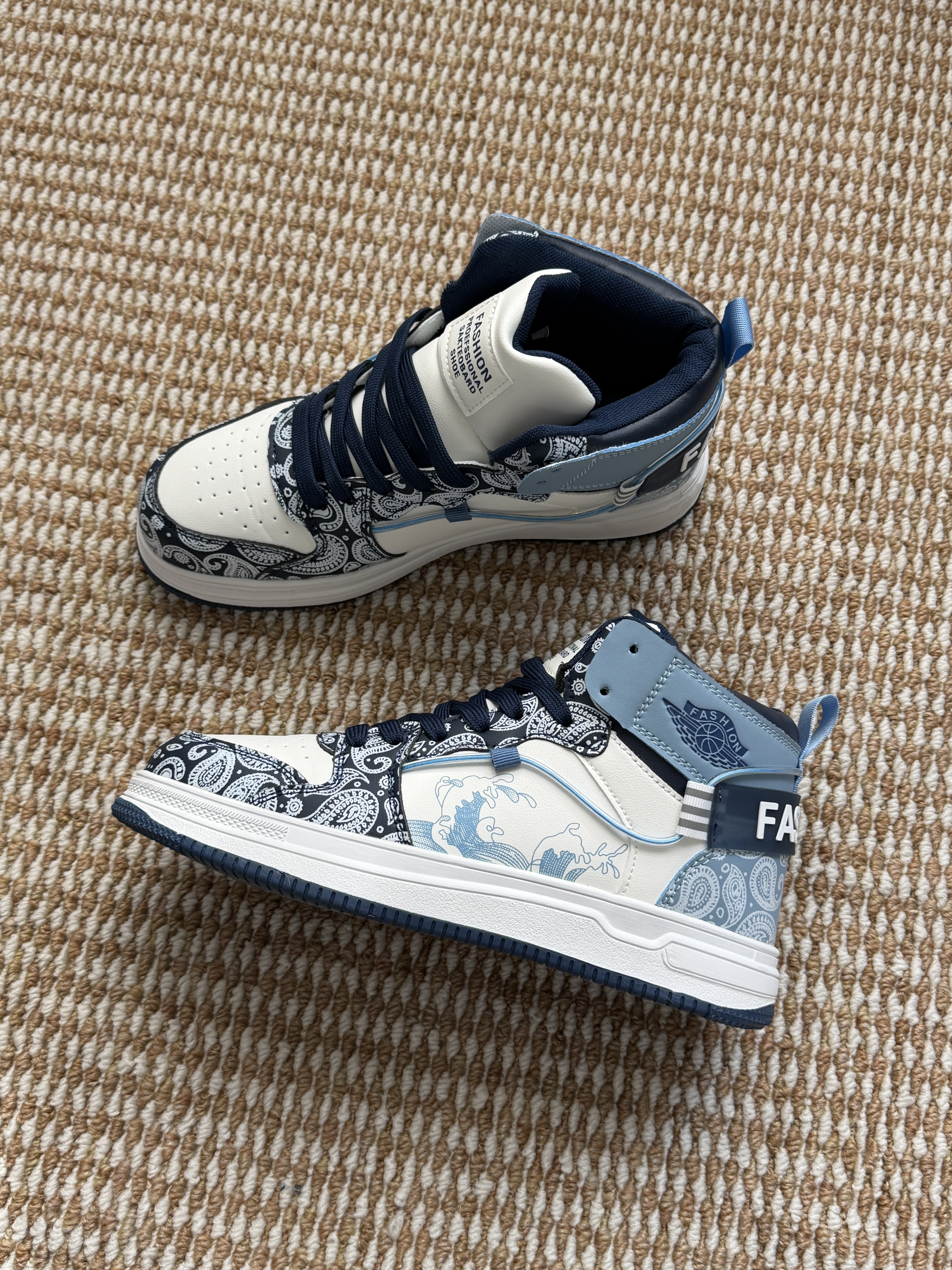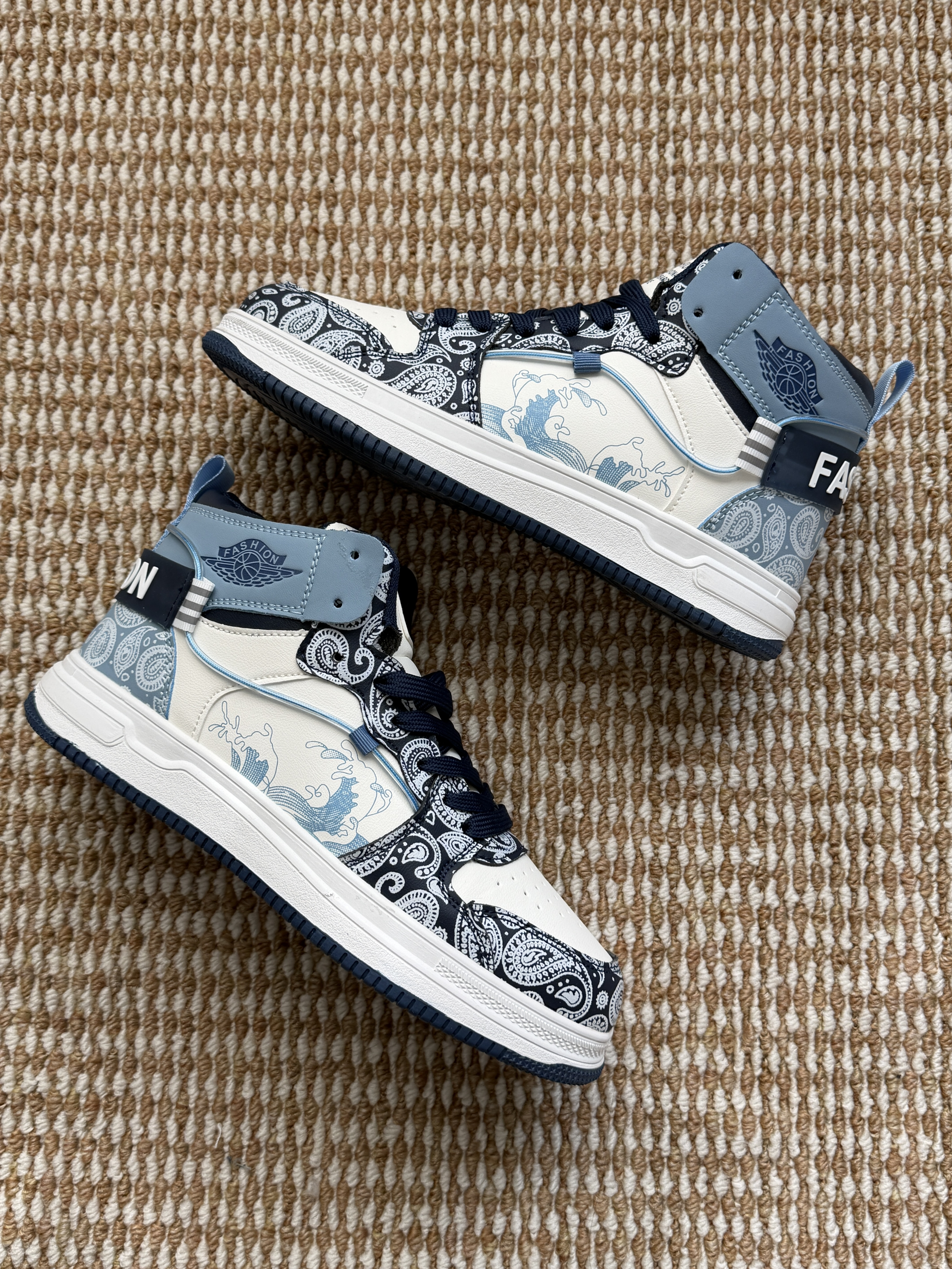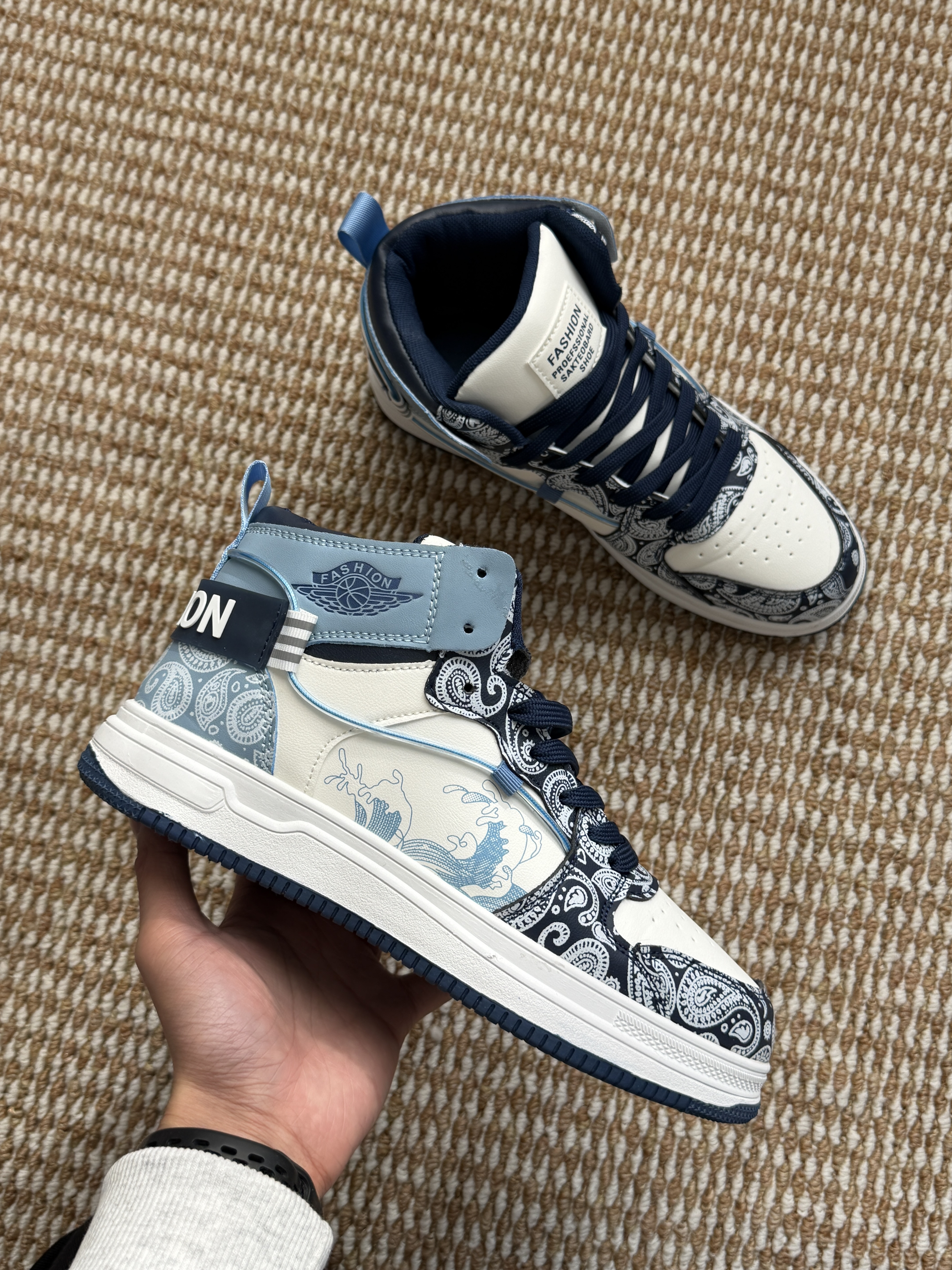 挖到宝的青花瓷高帮鞋,蓝白撞色+国风纹路超吸睛,鞋身的印花细节超精致,脚感也很软,日常穿贼百搭!