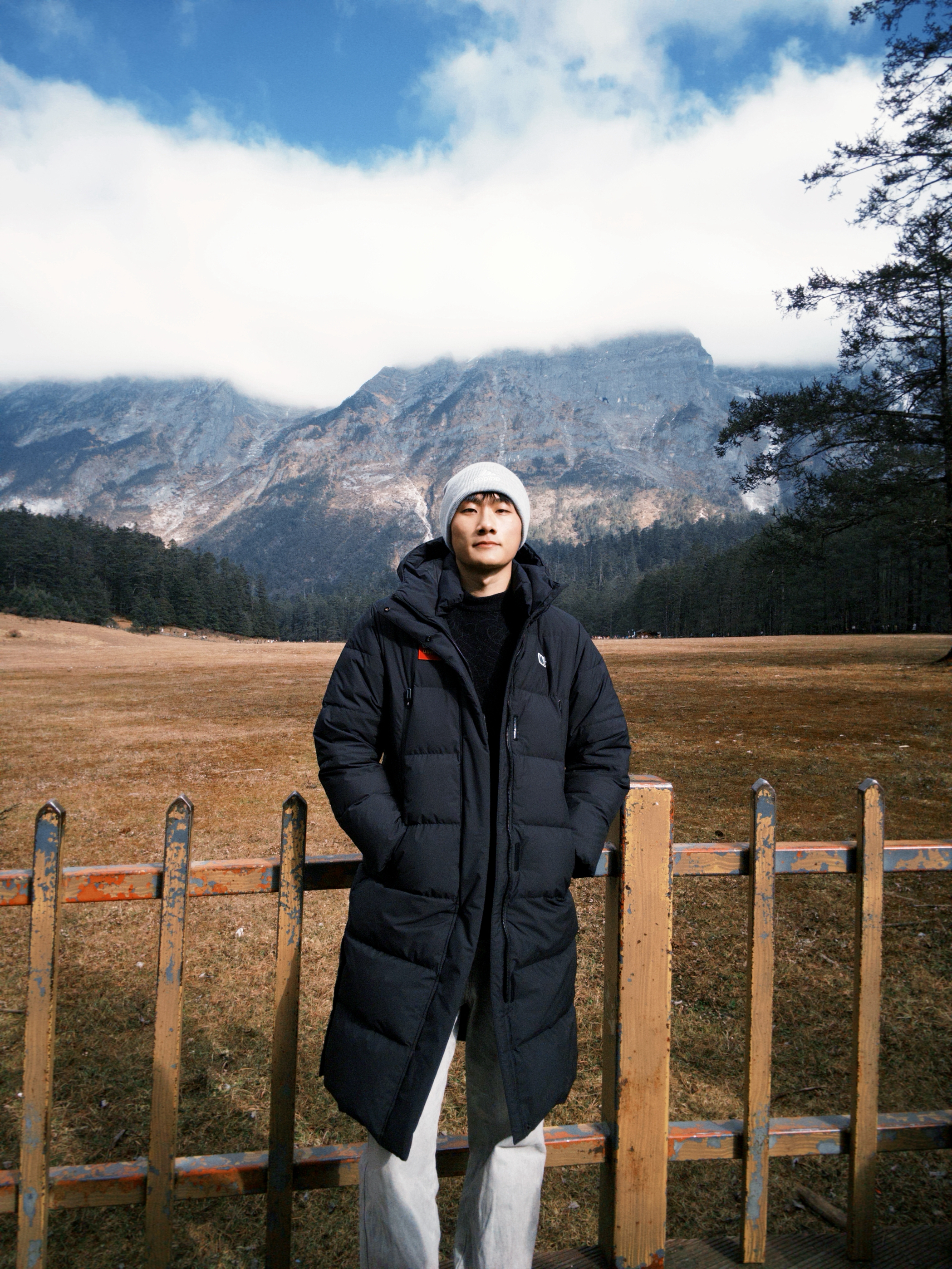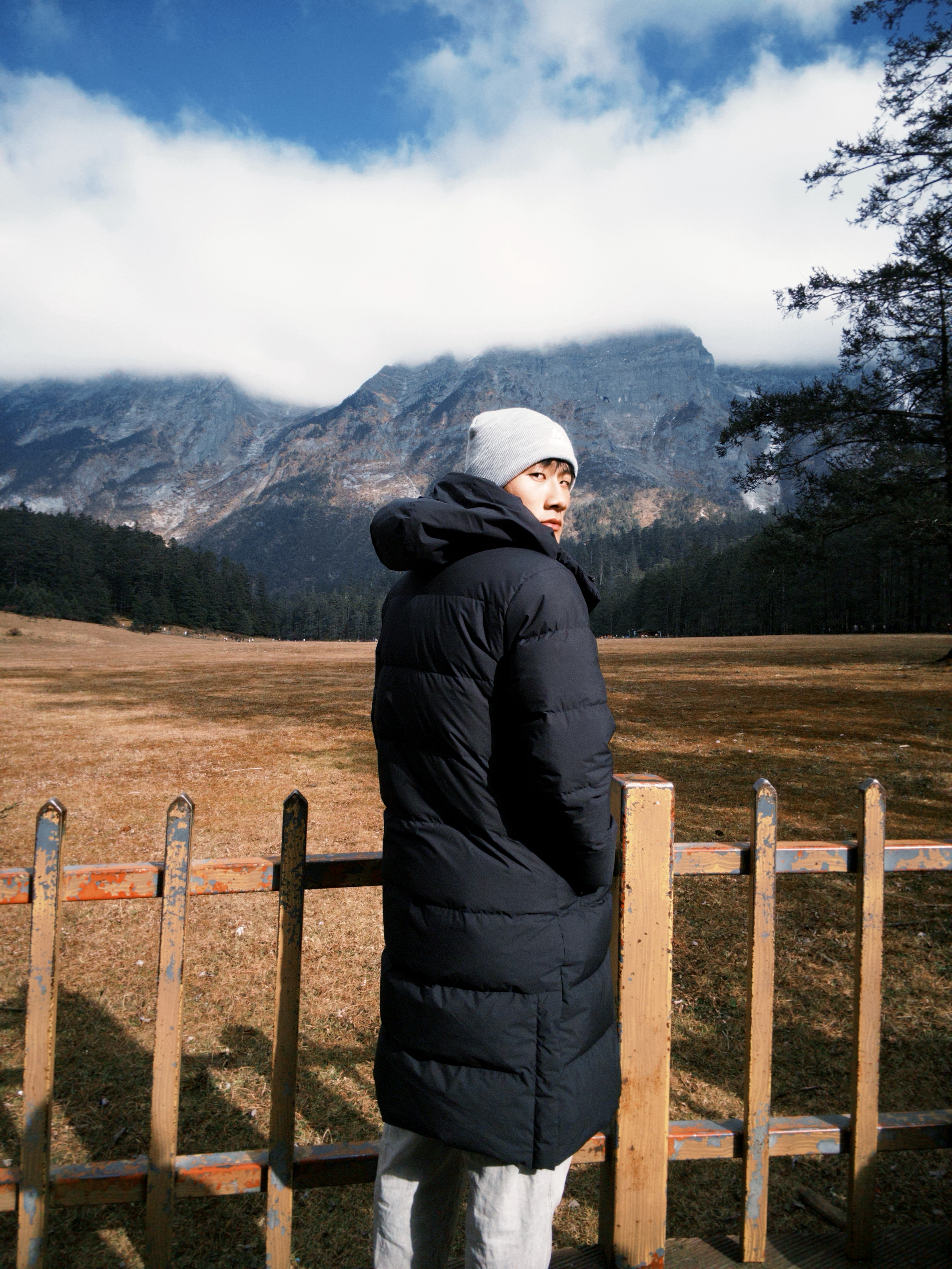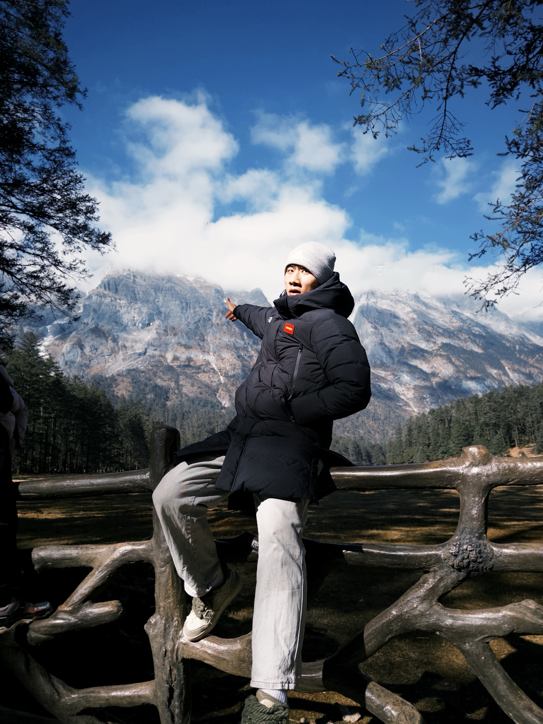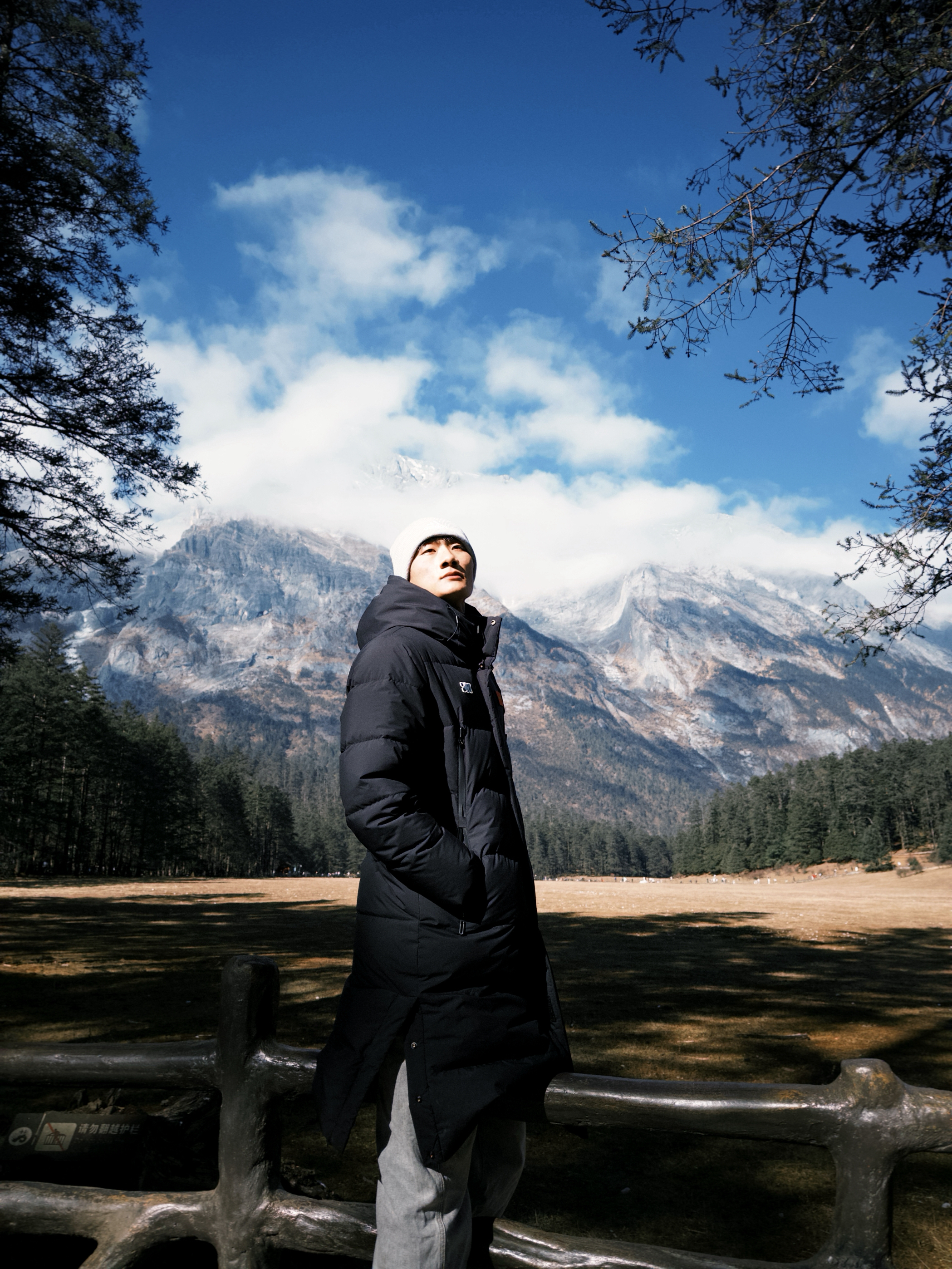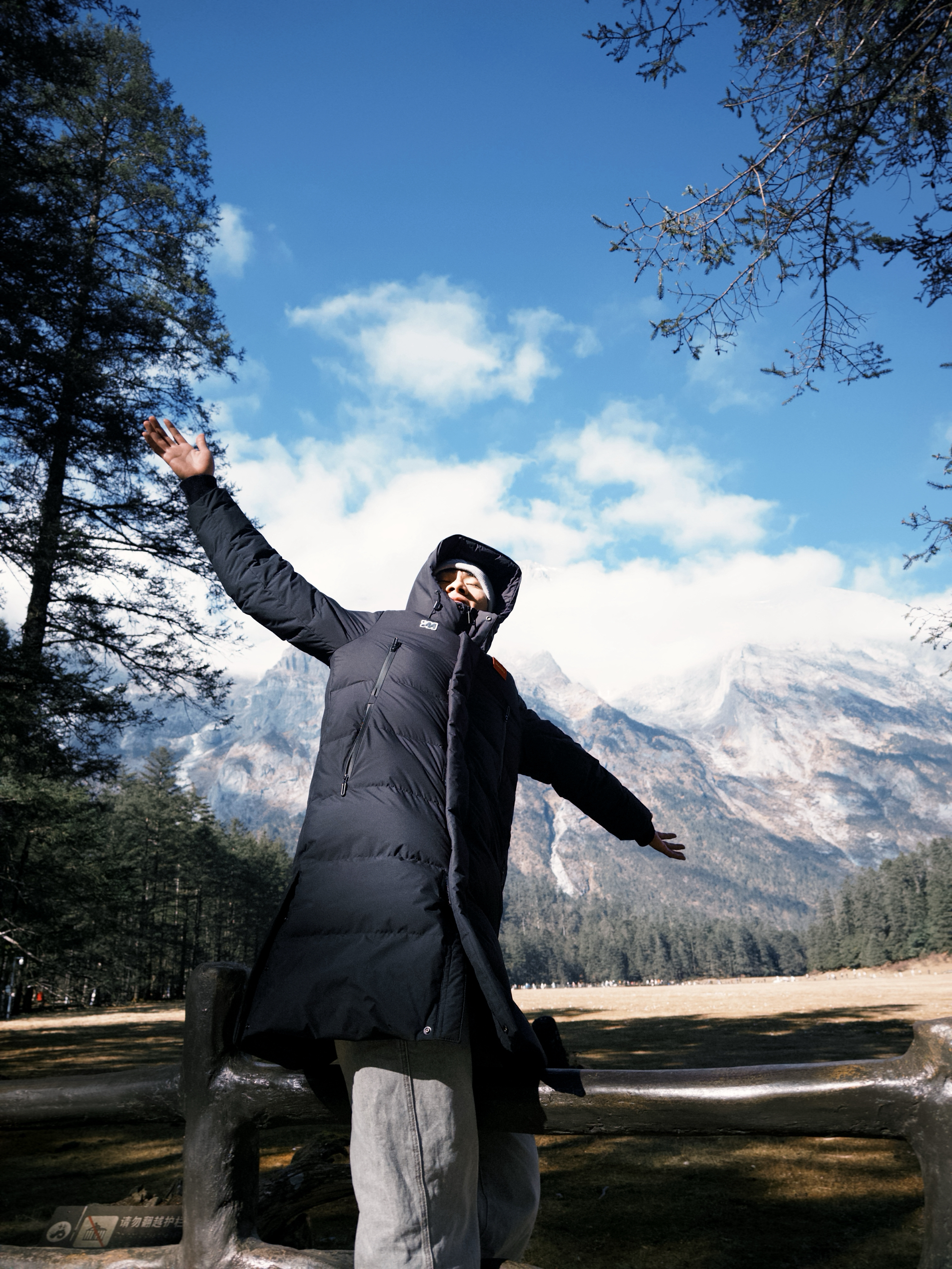 “来云南雪山高海拔地区玩穿这件鸭鸭的加厚羽绒服真的选对了! 300g的鸭绒填充裹着巨暖和,中长款版型护住腰腹和腿,完全不怕高海拔的冷风。涤纶面料防风又防水,魔术贴连帽扣紧后,徒步逛雪山也不觉得冷。黑色和雪山蓝天同框超有氛围感,搭条浅灰休闲裤,简约又出片。 你们去高海拔地区更爱穿中长款还是短款羽绒服呀?评论区说说~”