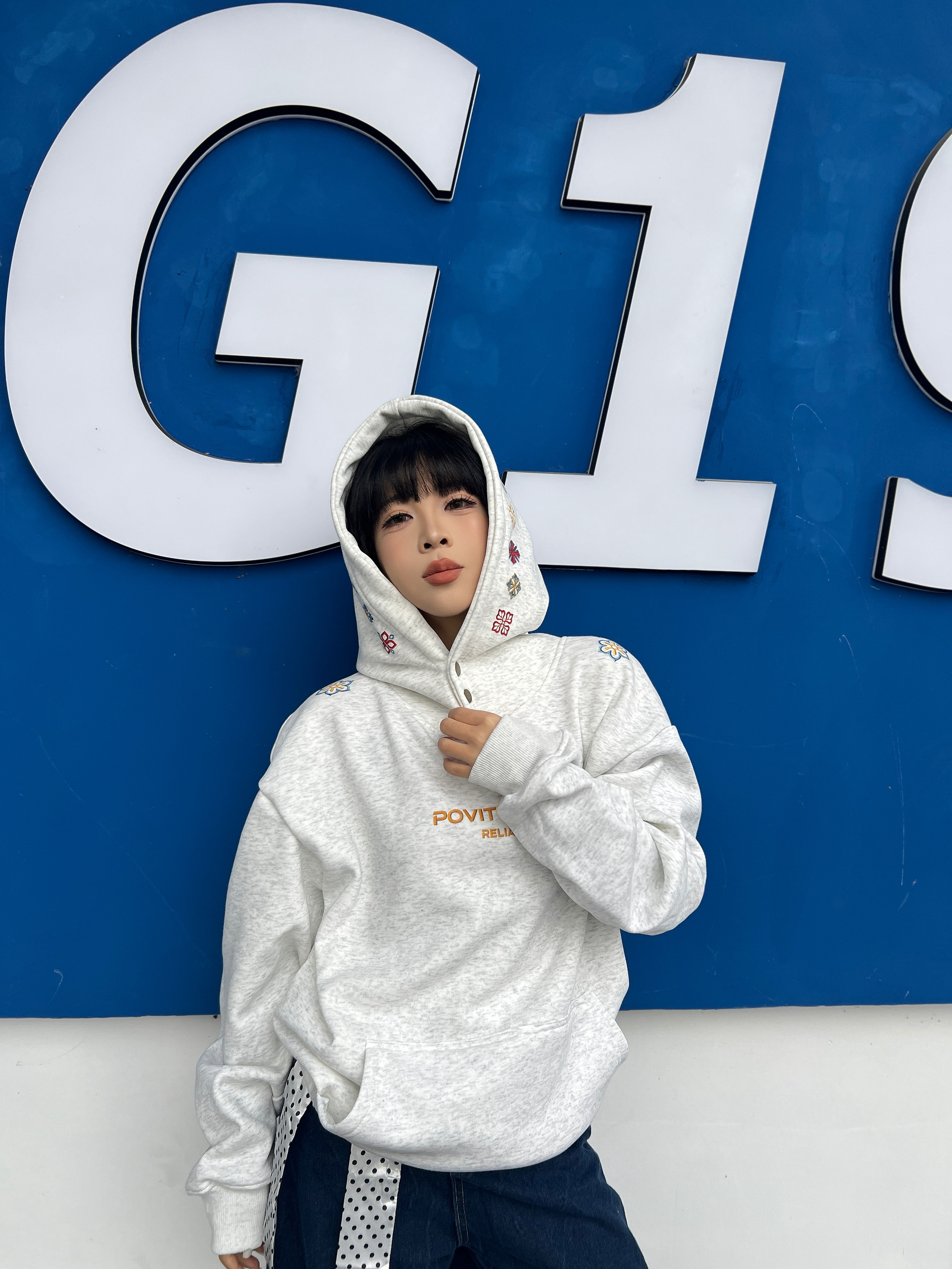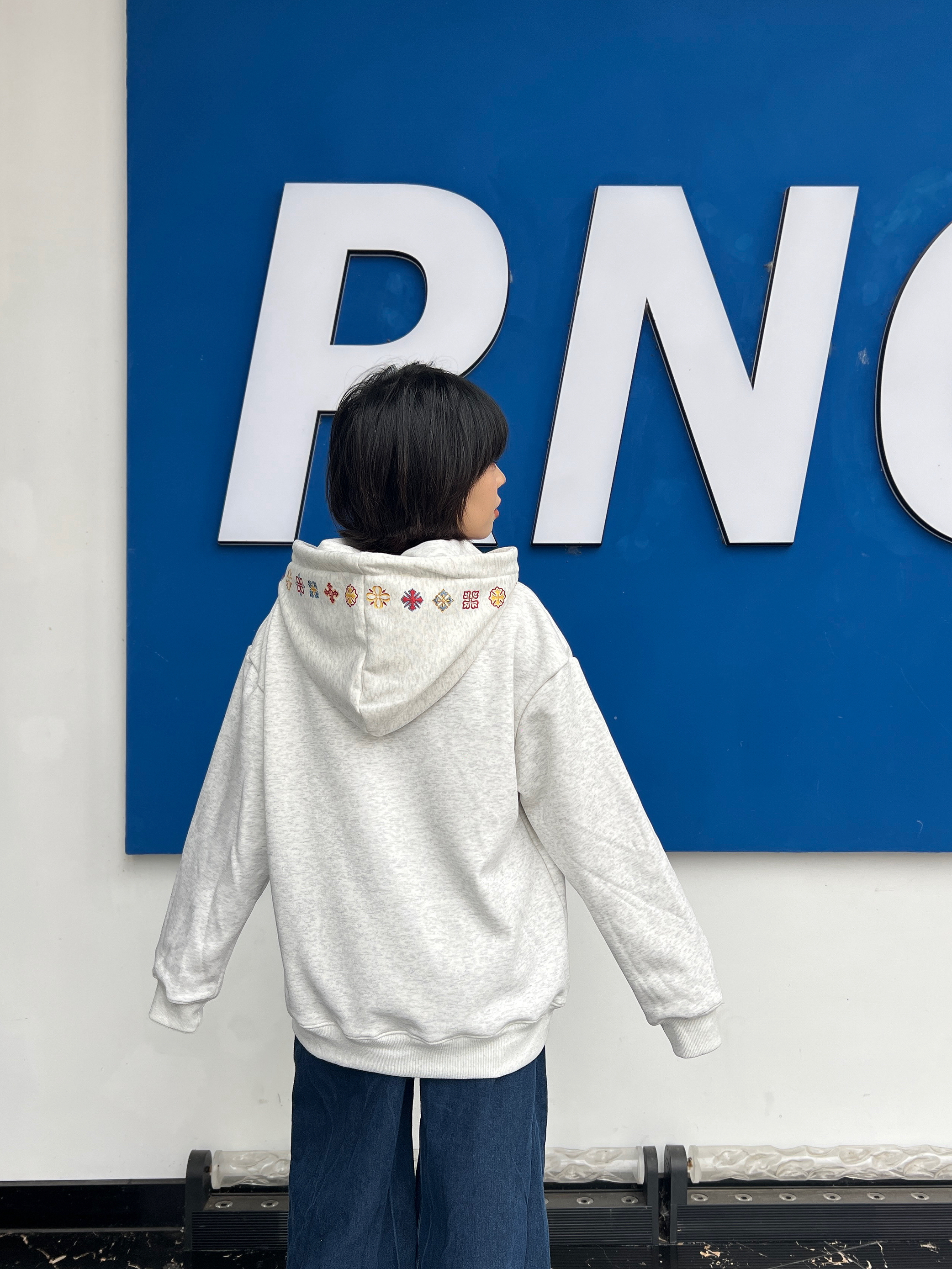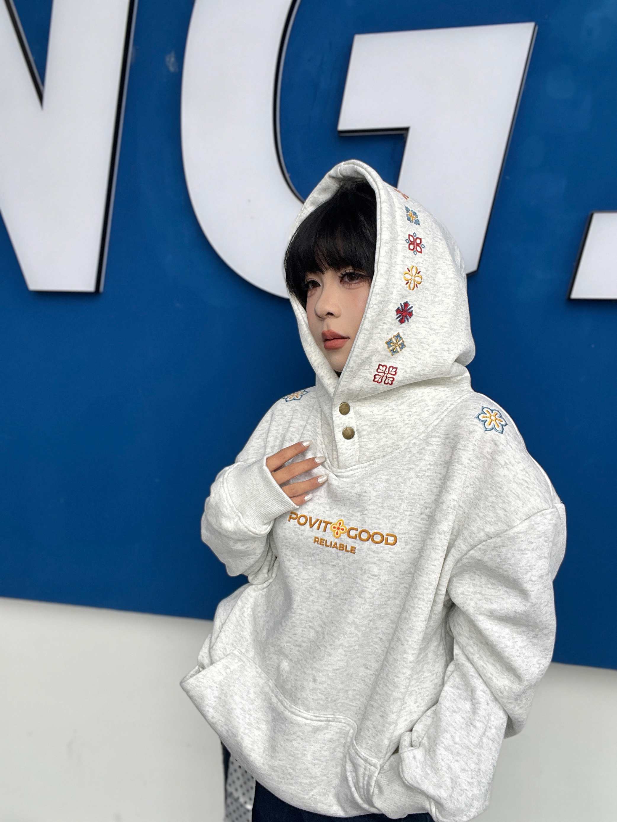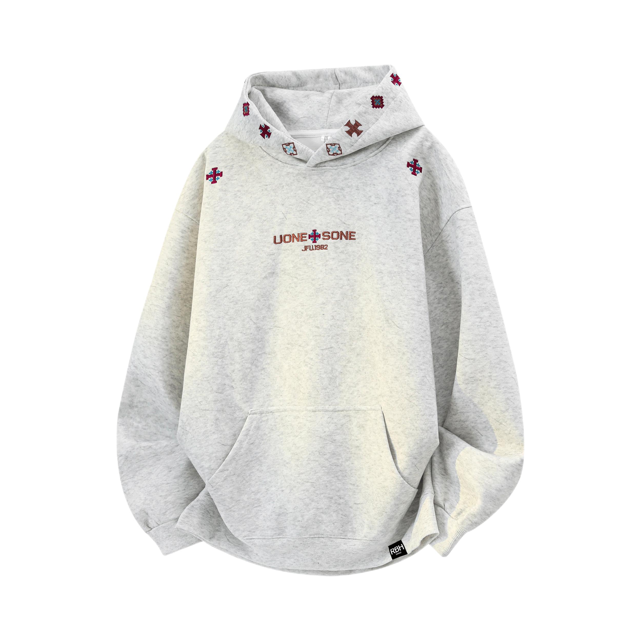 论好穿还得是连帽卫衣!随便穿都不出错~宽松版型慵懒显瘦~连帽设计利落不邋遢 灰白色系百搭不挑人,印花是美式复古风,男生女生都可以穿~上面的刺绣好精致!!双纽扣的设计还可以防风 质感软糯糯的很舒服,里面是加绒的~秋冬单穿/内搭/叠穿都很好看,早八通勤/出游一键适配!做情侣装也妥妥的