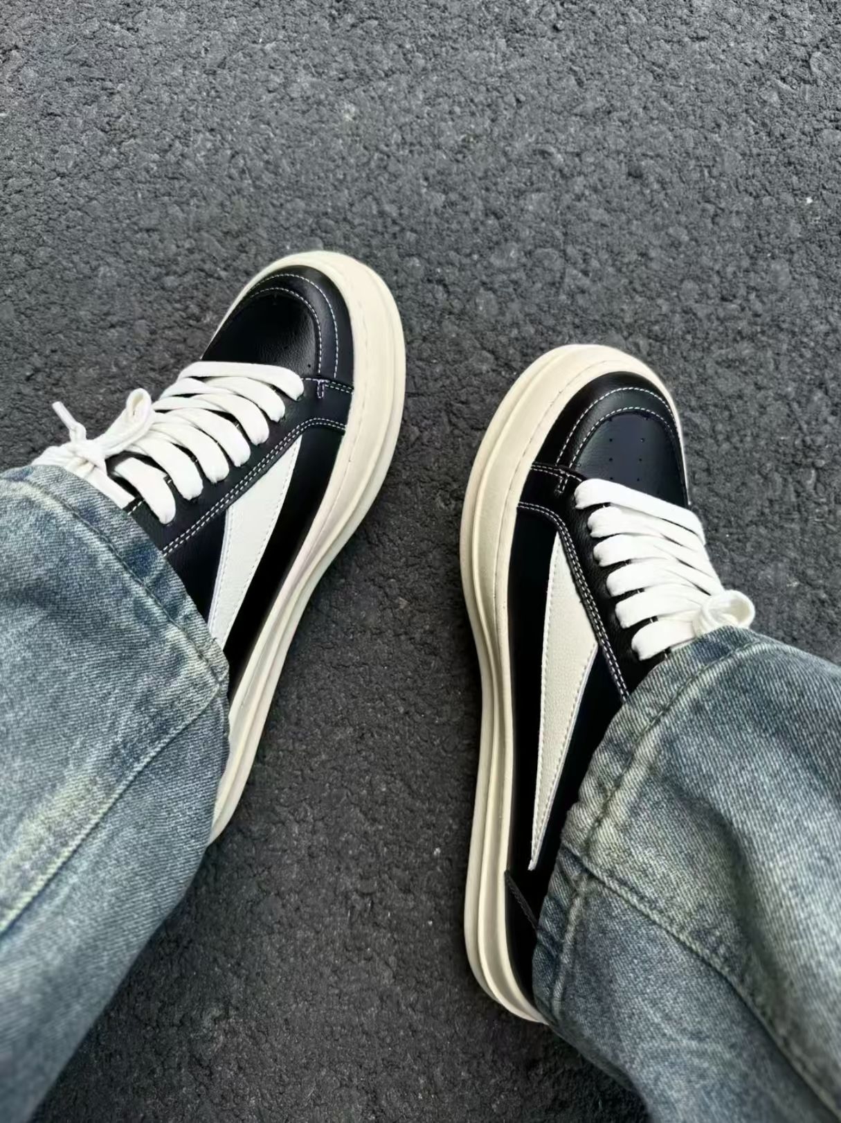 马登这双黑白拼色厚底鞋Q、把5cm增高的小心机融在厚底里,上脚轻盈不笨重,小个子也能轻松拥有大长腿既视感。 经典的黑白撞色+皮质鞋面,适配各种穿搭场景: - 搭水洗牛仔裤,裤脚随意堆在鞋帮,街头慵懒感拉满,厚底还能悄悄优化比例: - 配工装裤/東脚卫裤,利落又显高,运动休闲风拿捏得恰到好处: - 搭黑色休闲裤时,鞋身的白色线条能打破单调,让造型更有层次。 马登的鞋款在做工和脚感上也很在线,皮质鞋面...