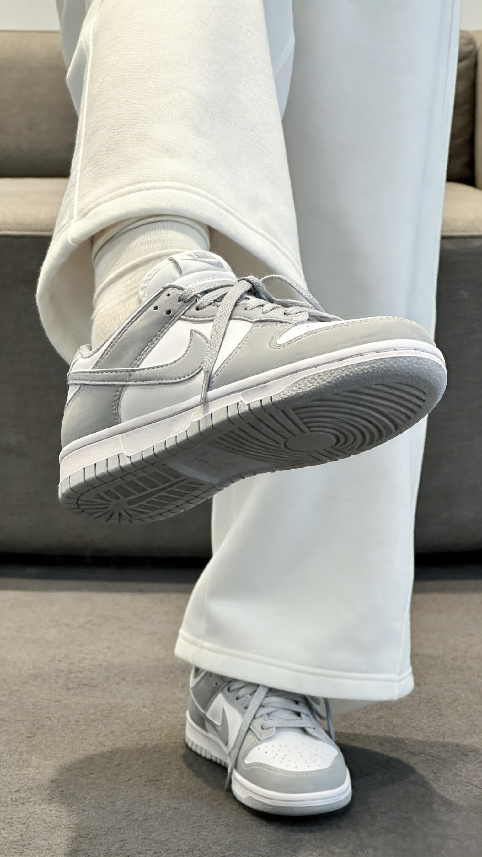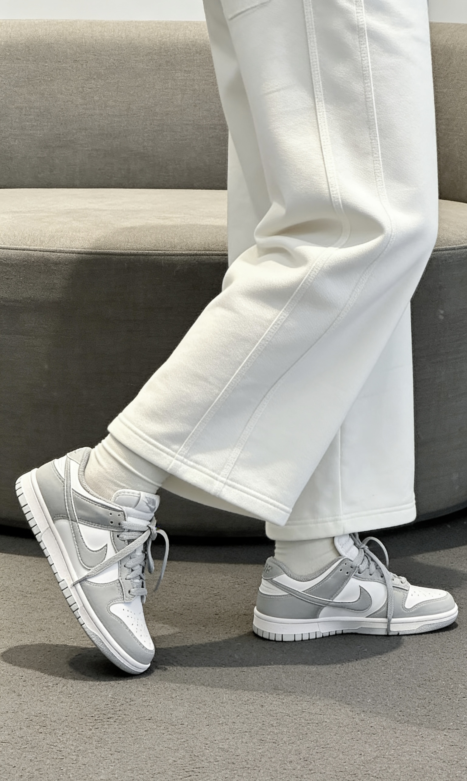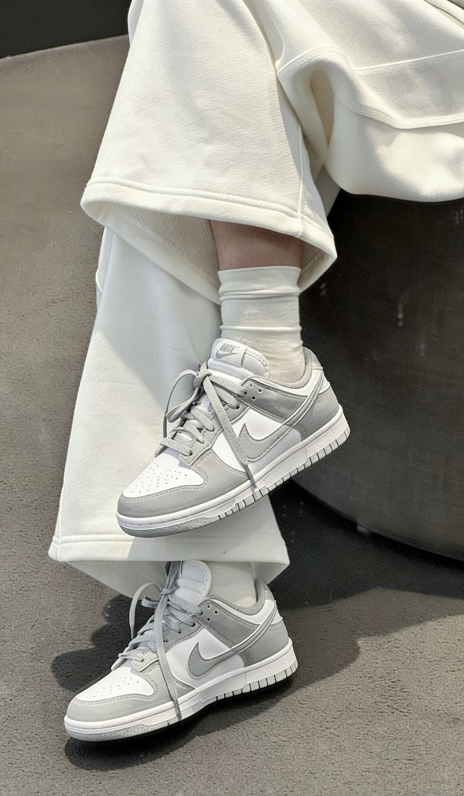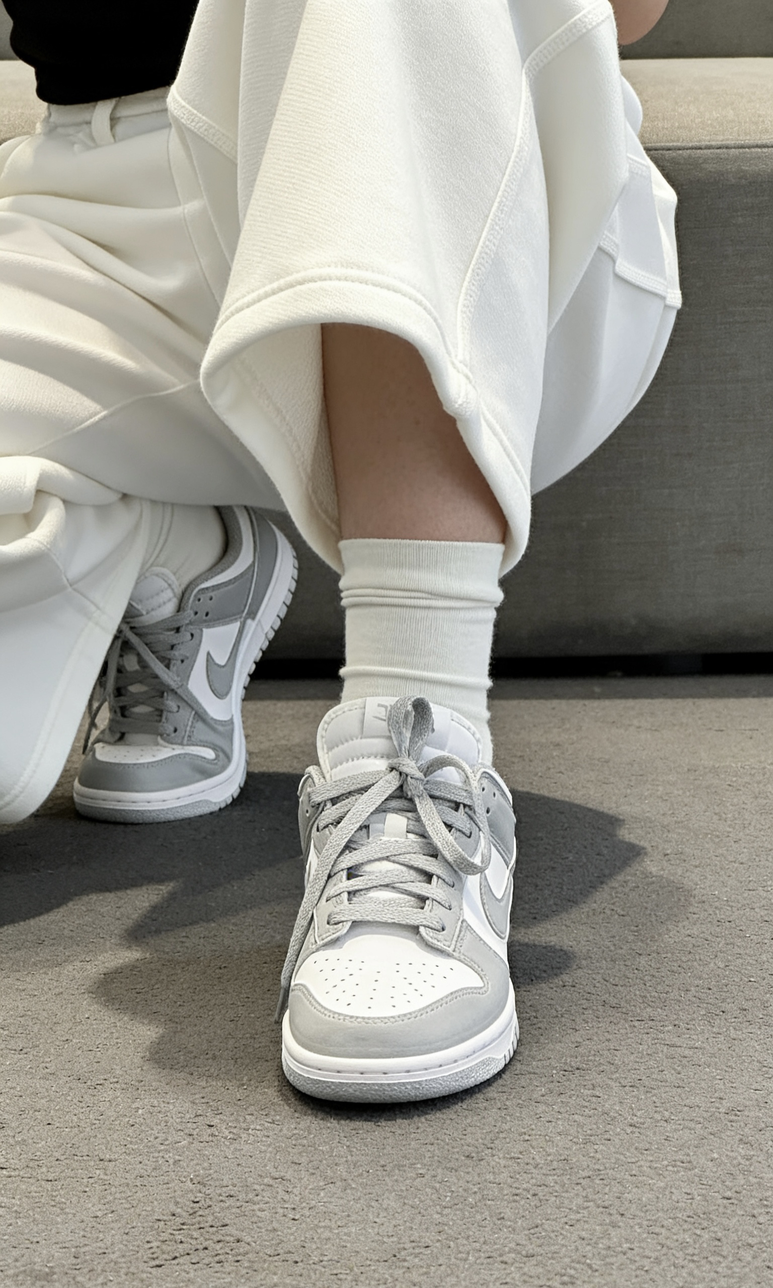 学生党上课赶早八、打工人通勤挤地铁、潮人出街凹造型,谁的鞋柜里还缺一双百搭板鞋?今天这双Nike Dunk经典复古板鞋,白灰配色清爽又高级,直接承包你四季穿搭! 纯净白色打底,搭配柔和浅灰色拼接鞋身,经典复古轮廓自带潮酷氛围感,不管是配运动束脚裤、牛仔阔腿裤还是休闲短裙,都能轻松穿出街拍大片感。鞋身采用扎实皮革材质,质感在线还耐穿,鞋型贴合脚面不挤脚,日常走路逛街一整天也毫无压力。