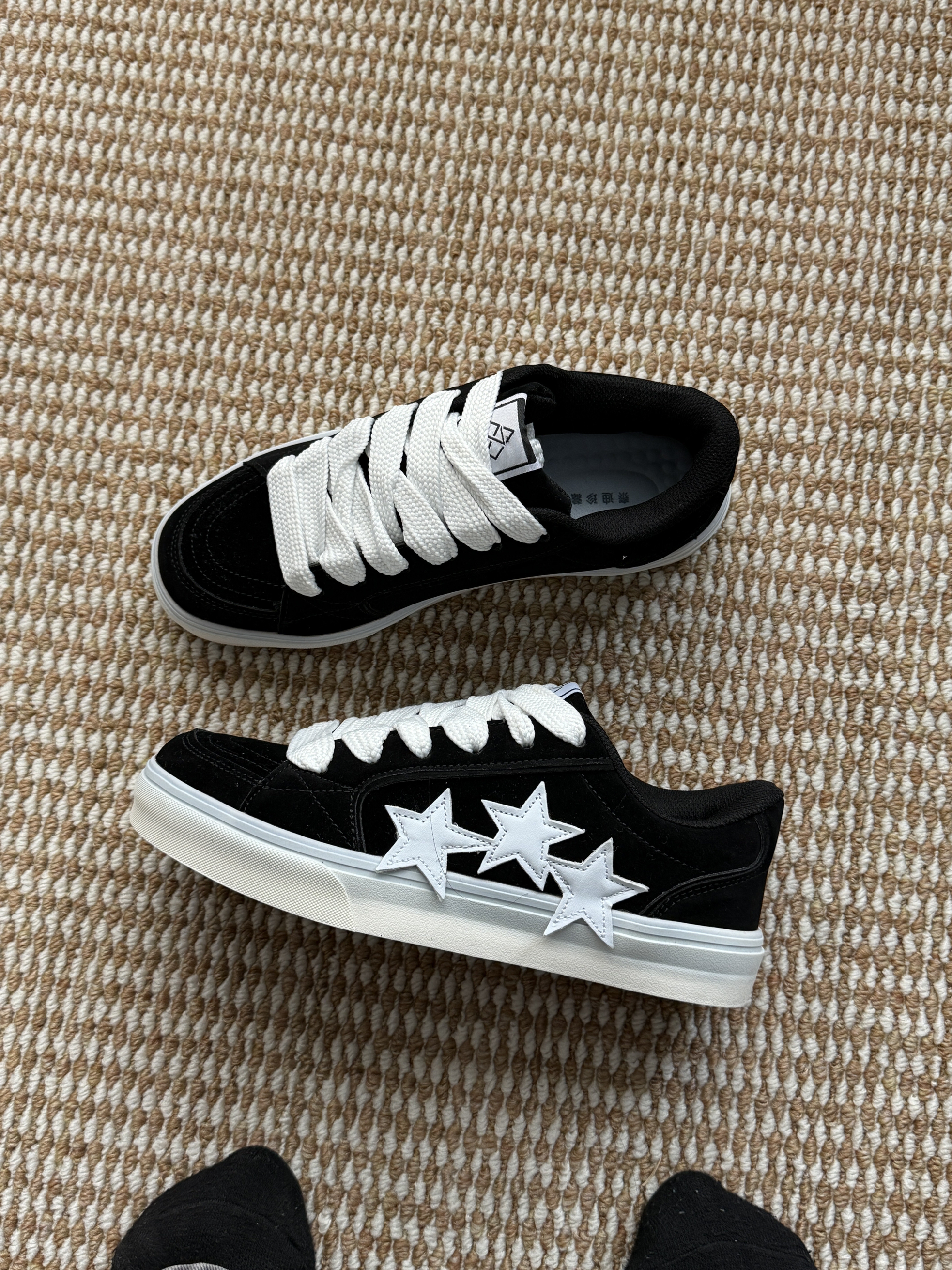 被这双星星板鞋狠狠拿捏了!黑白配色怎么搭都不踩雷,立体星星的装饰让鞋子超吸睛,脚感也软软的,日常出街穿太香了~