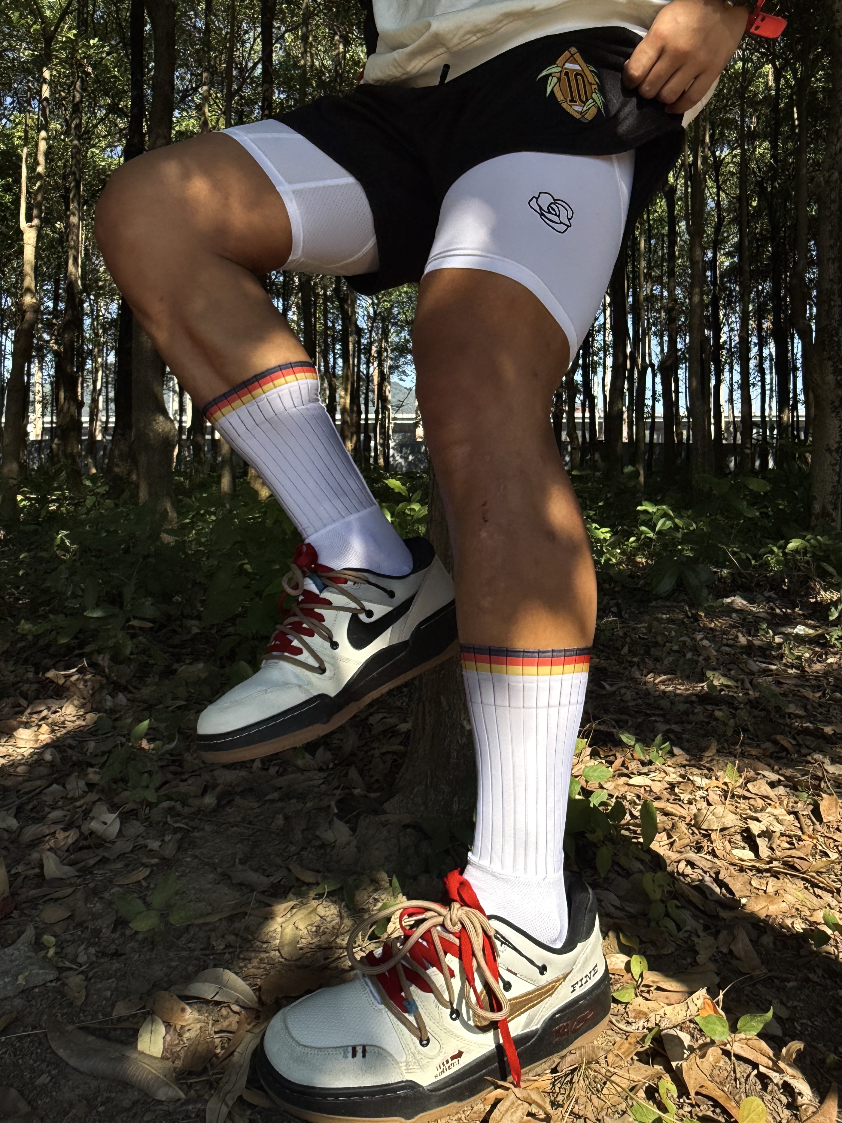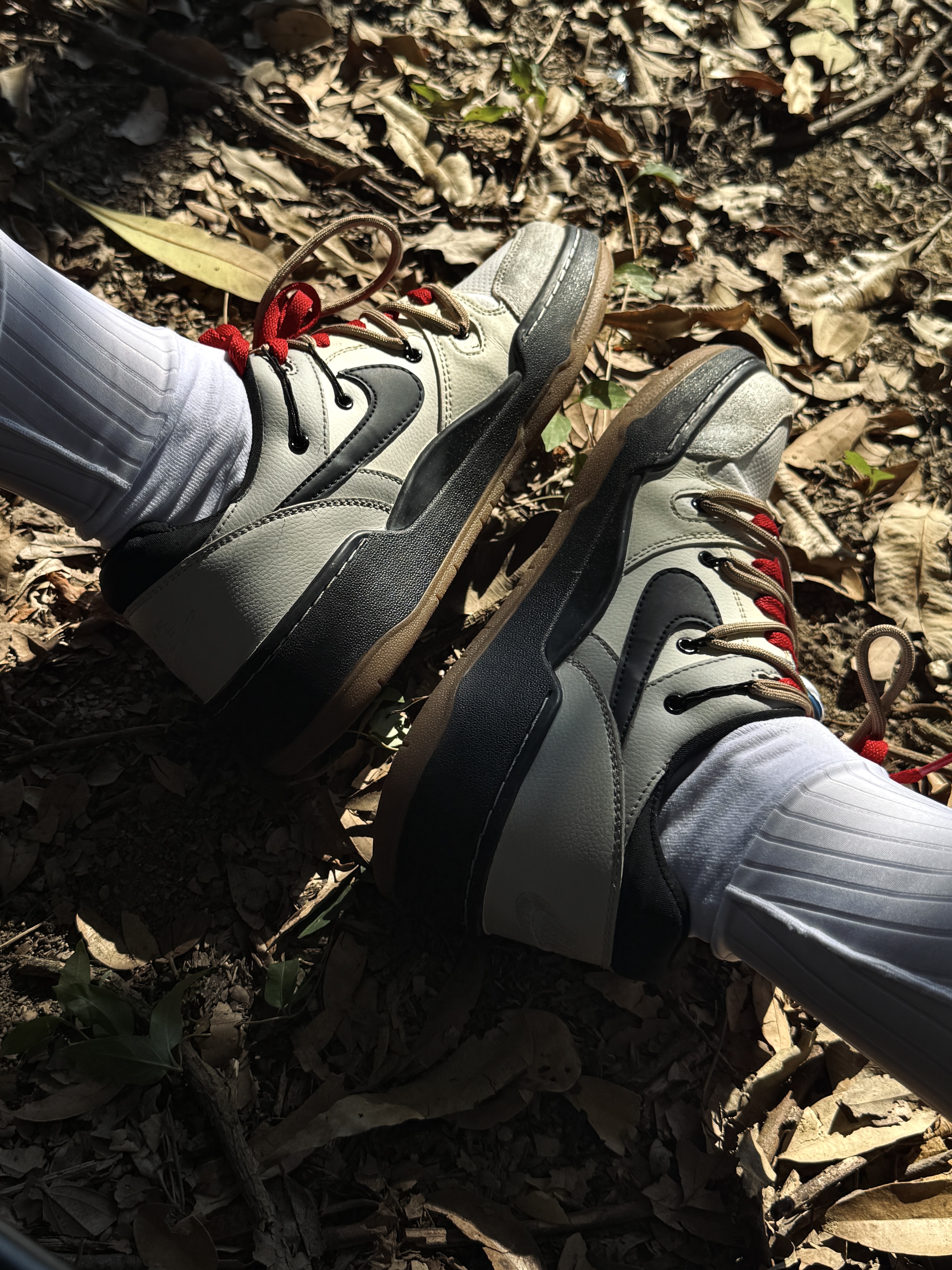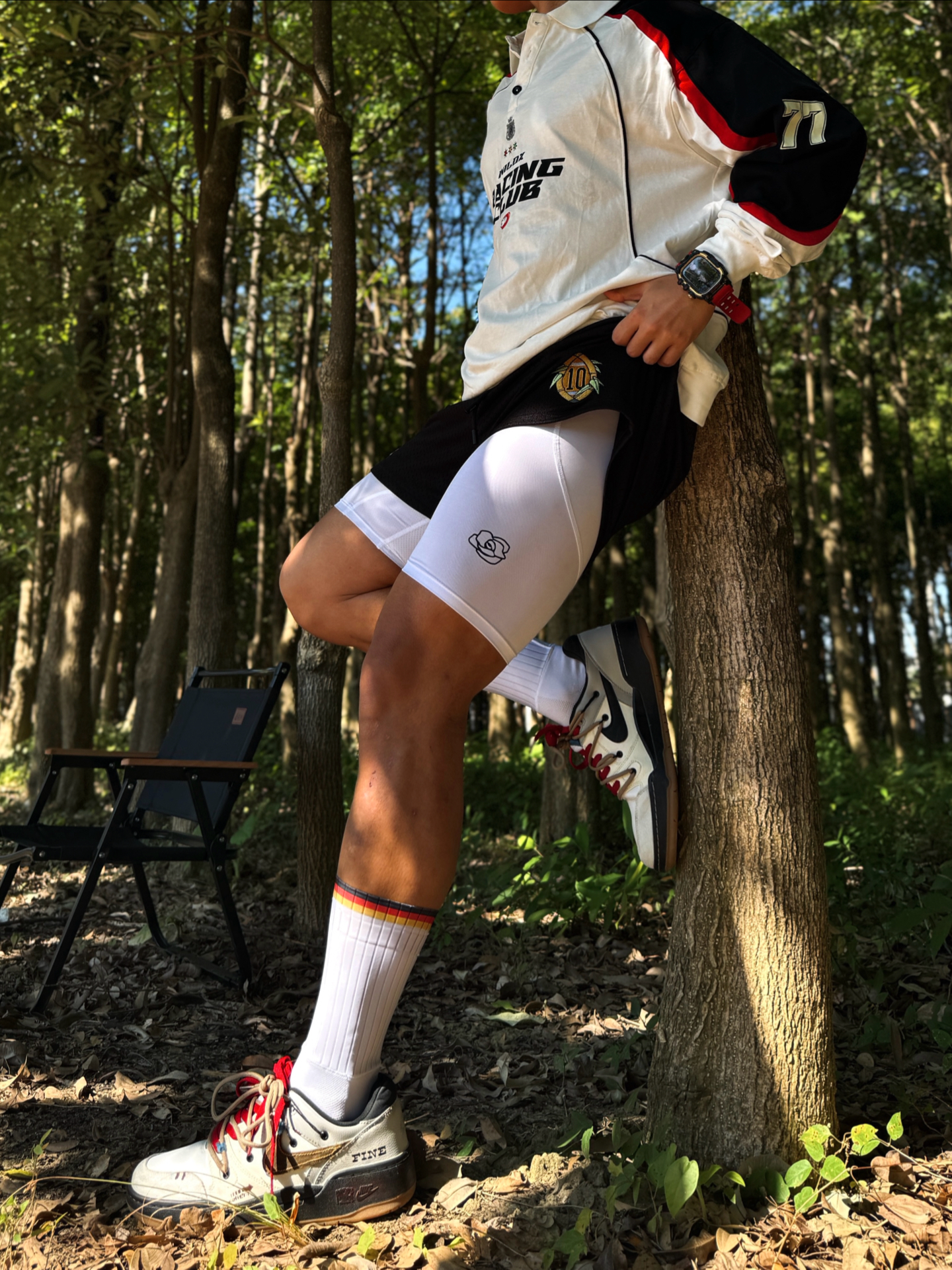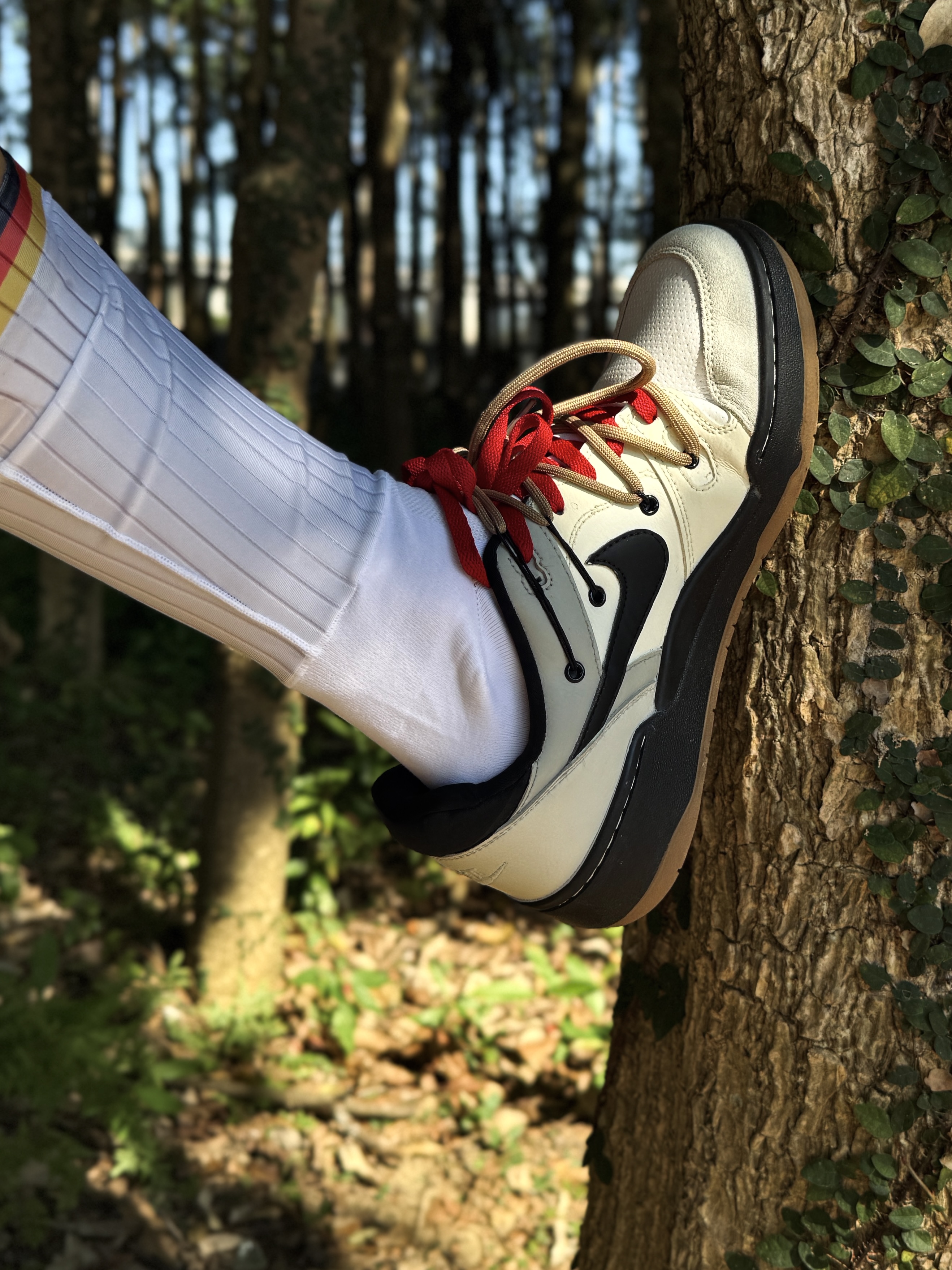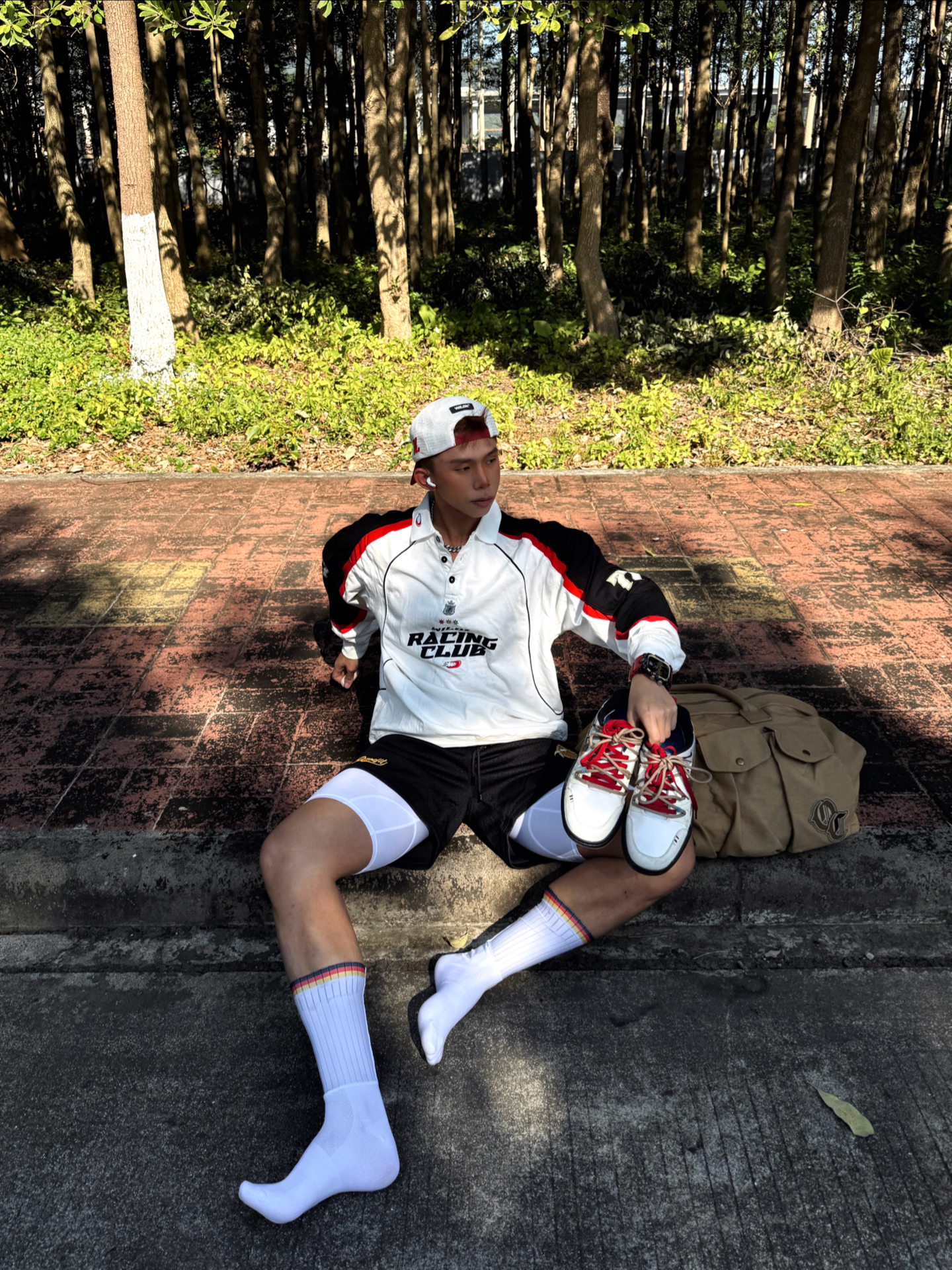 年末已快到尾声 新年怎么穿会有开运喜庆感 暖冬定制球鞋ootd给我答案📖 👟上脚定制板鞋霓虹荒原 整体采用解构设计 打破原版规整感⛓️💥 融合加入字母和暗纹定制元素 潮流设计感没得说 米白+黑色+红棕融合配色 为霓虹荒原名称点题 复古感这一块儿轻松拿捏🤌🏻 十分喜欢鞋带红棕双色的设计 适配多种穿搭风格 搭配长白彩虹条纹袜+白色紧身短款高弹 再和上身黑白红赛车风polo衫巧妙呼应 整体走机能运...
