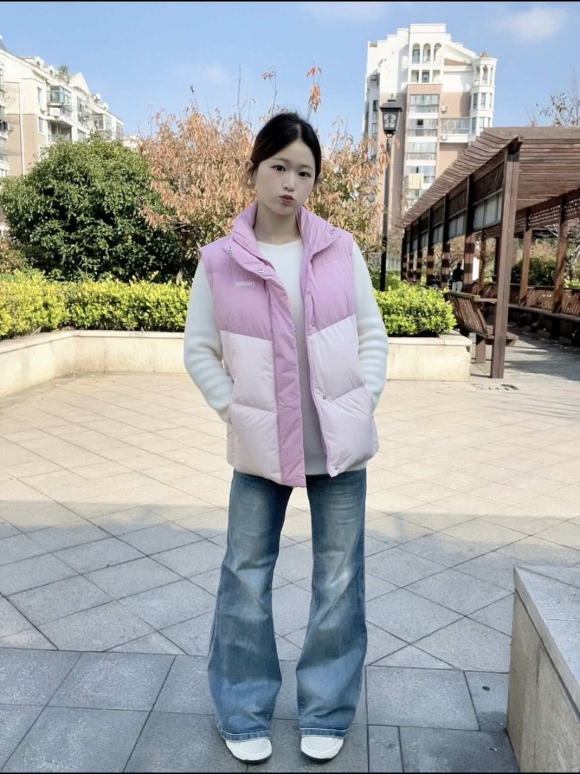 粉色渐变羽绒马甲,是谁的冬日甜妹DNA动了! 粉白渐变也太戳我的少女心了! 外层是软乎乎的轻羽绒,保暖又不臃肿,套在毛衣外面完全不显壮~ 配宽松牛仔裤+小白鞋,就是韩系女高那味儿! 南方初冬单穿马甲刚好,北方宝子叠穿大衣也巨好看! 虽然是童装,但是我身高158,体重90,穿160cm简直太合身啦 巴拉巴拉这波直接把甜妹冬日穿搭给拿捏了🤌