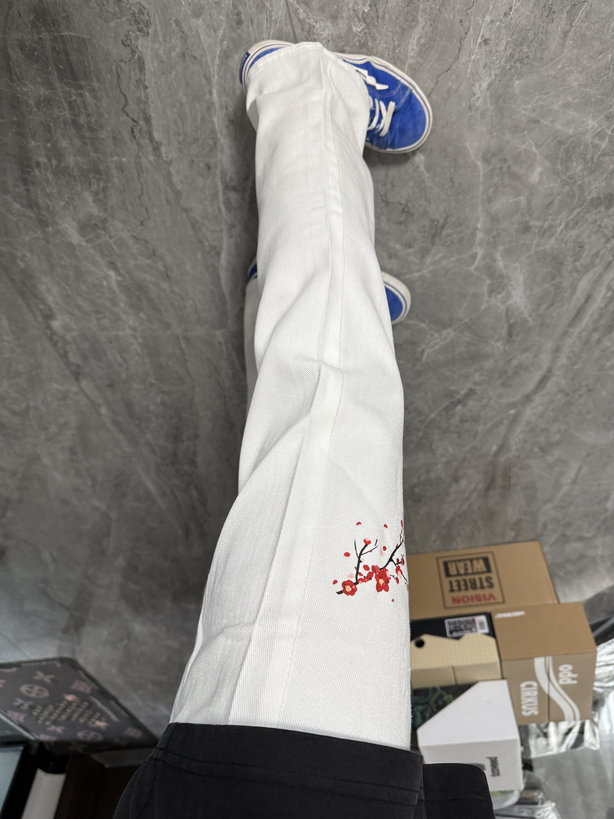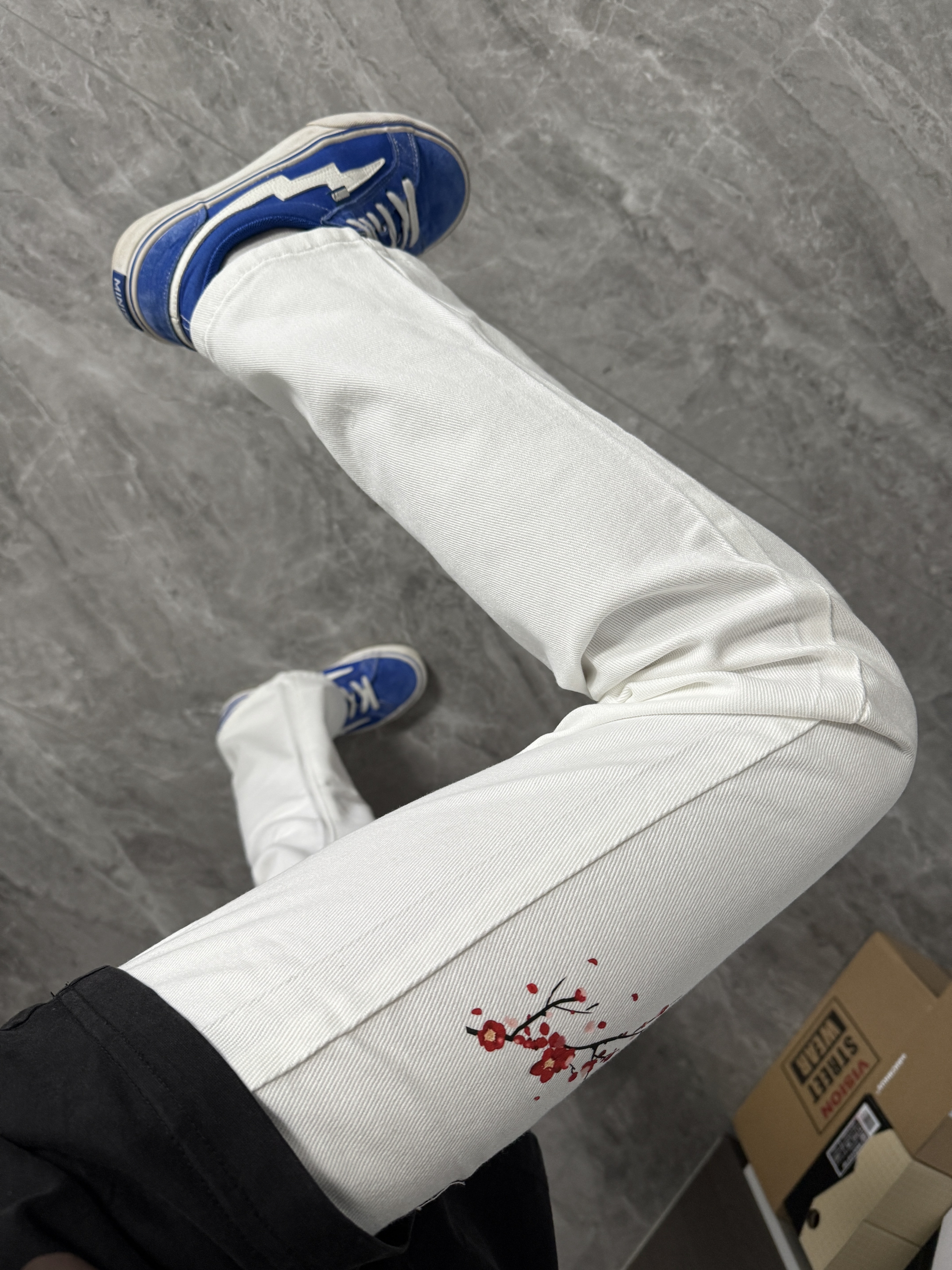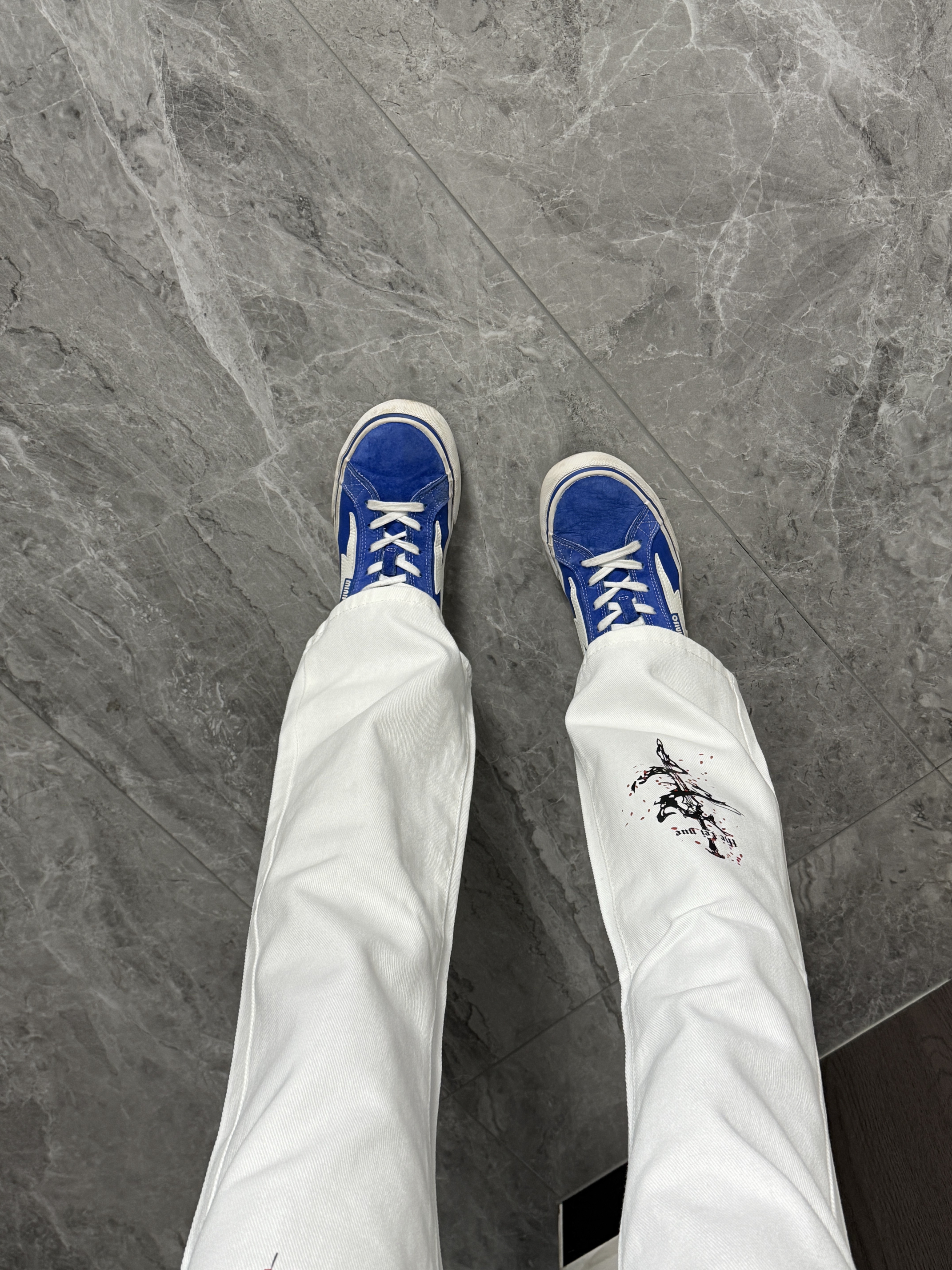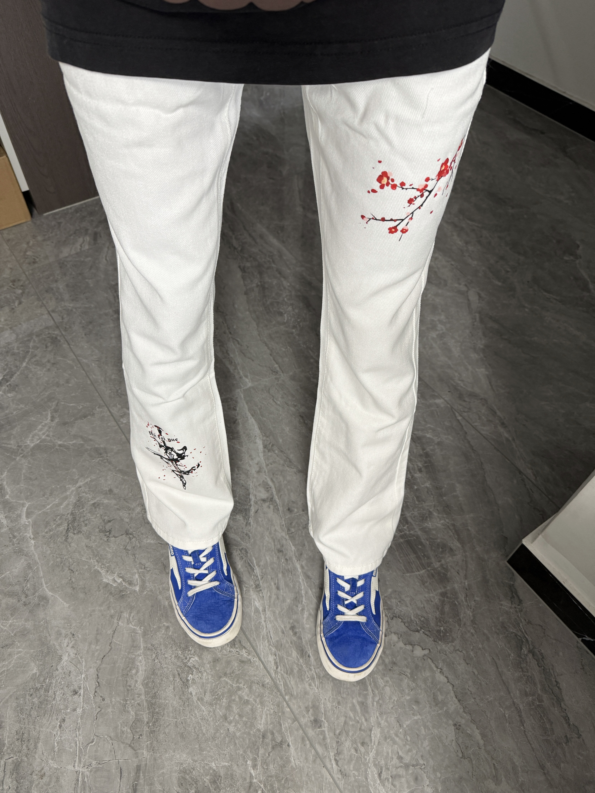 哈哈哈今天这套舒适是帅到我了!印花白牛仔百搭休闲,搭配一双蓝色板鞋简单又帅气~时尚感拉满!