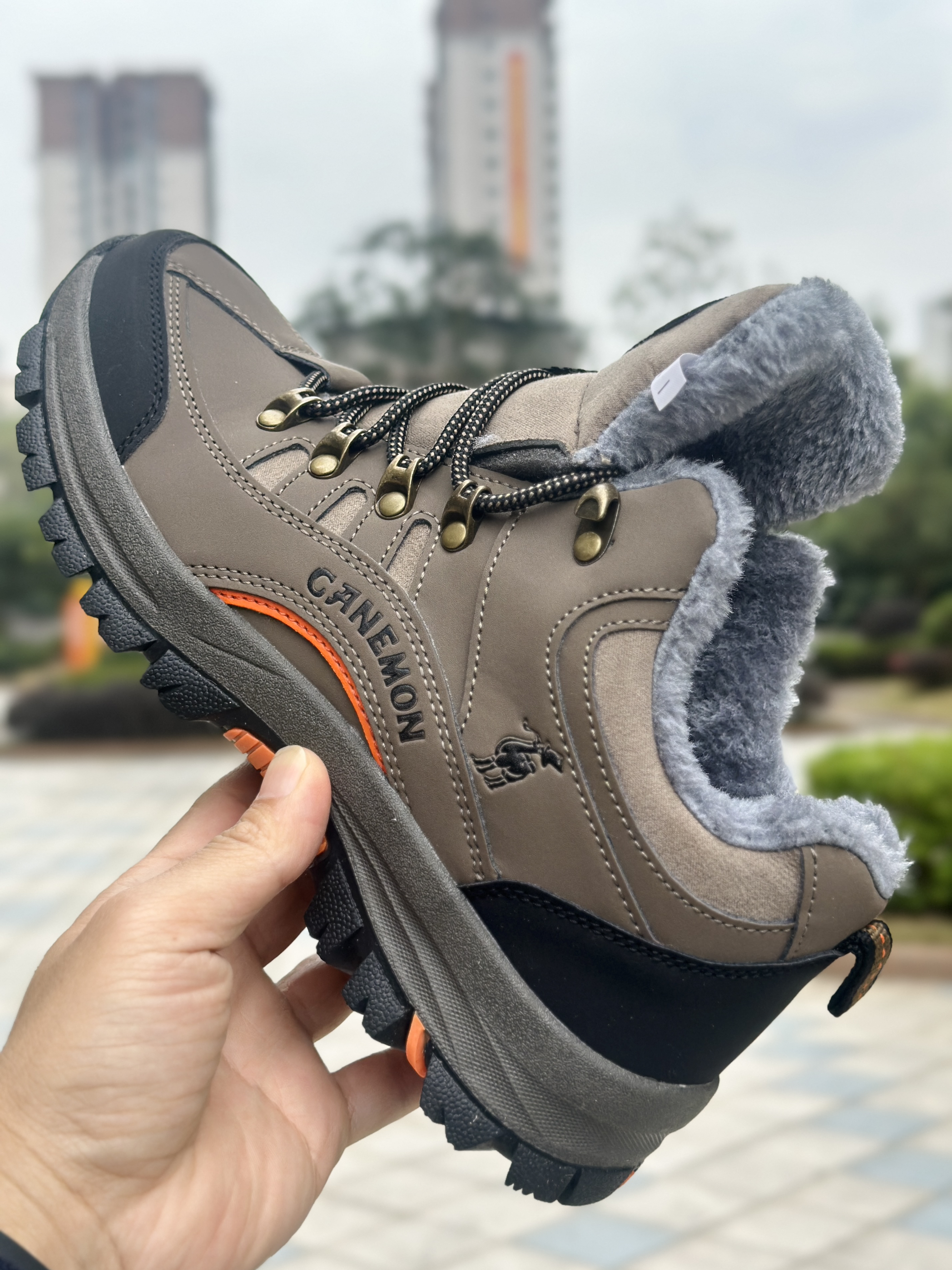 今天到手这这双保罗骆驼加绒徒步鞋,款式休闲百搭,码数标准,40码鞋子单只重量在356克,在加绒靴里面算是比较轻盈的,冬天走几个小时的路也不累脚 鞋底有大约3cm的一个厚度,而且还是比较柔软的中底,走路不会很膈应,有一种回弹感。防滑锯齿橡胶底就略微偏硬一点,因为需要增加摩擦力和耐磨性 上脚感受鞋楦宽度刚好,就算加绒的也完全不会挤压脚。鞋面是猪巴革材质,下雪天和下雨天也没那么容易浸湿到鞋子。5度以...