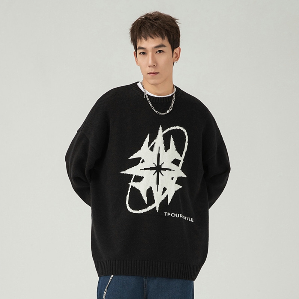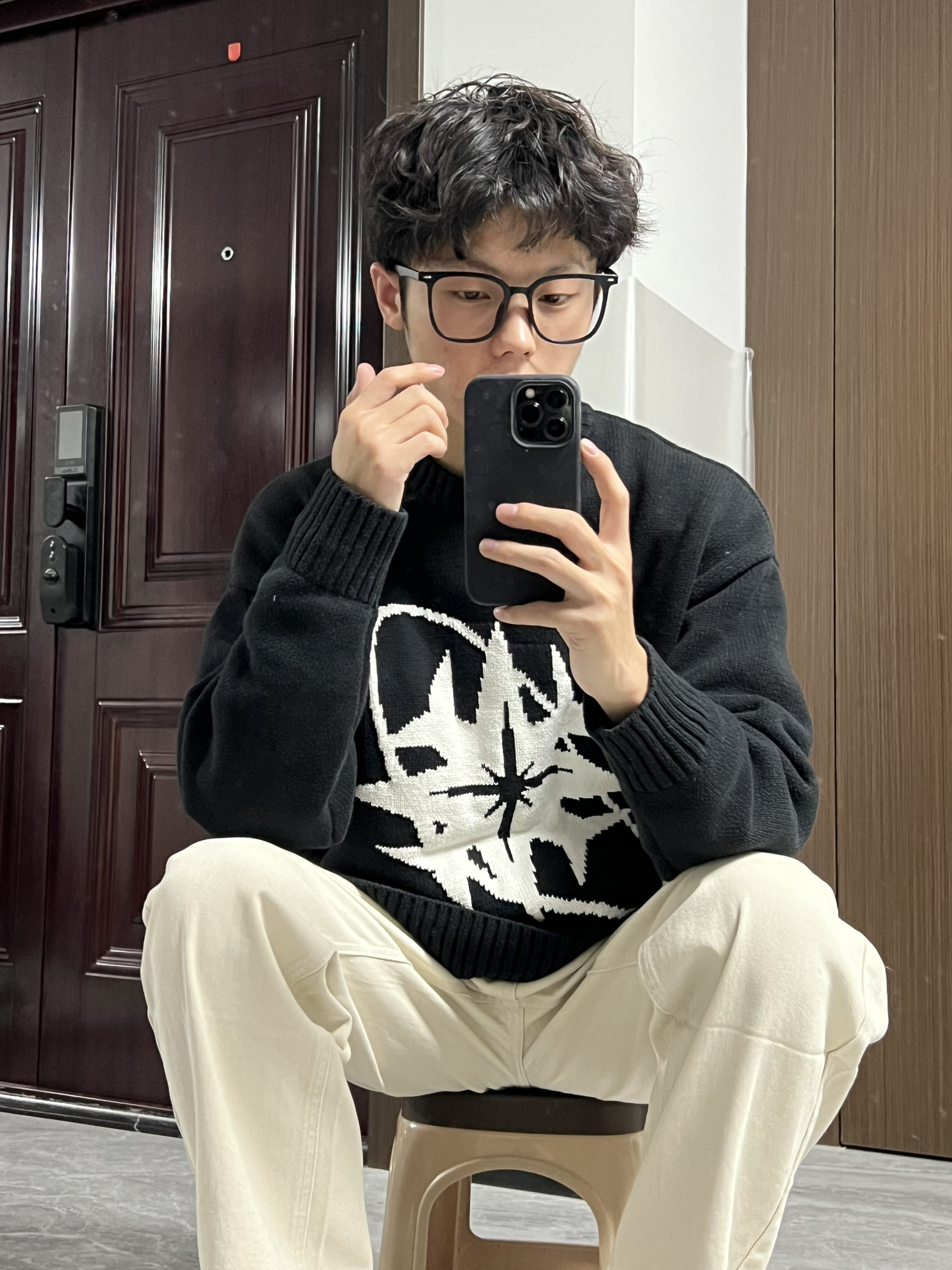哈哈哈冬天在家穿的舒服很重要呀 这件八芒星毛衣完全符合我的审美啊 黑色也很百搭 搭条米白色工装裤简单又好看