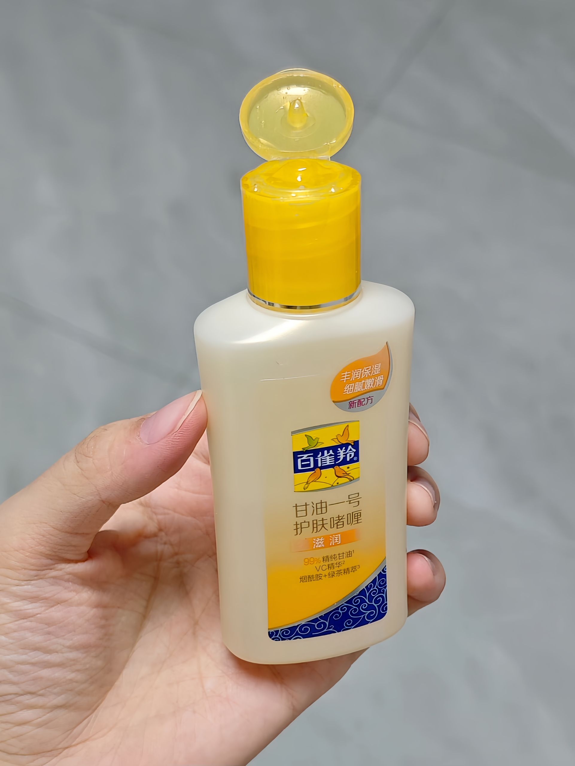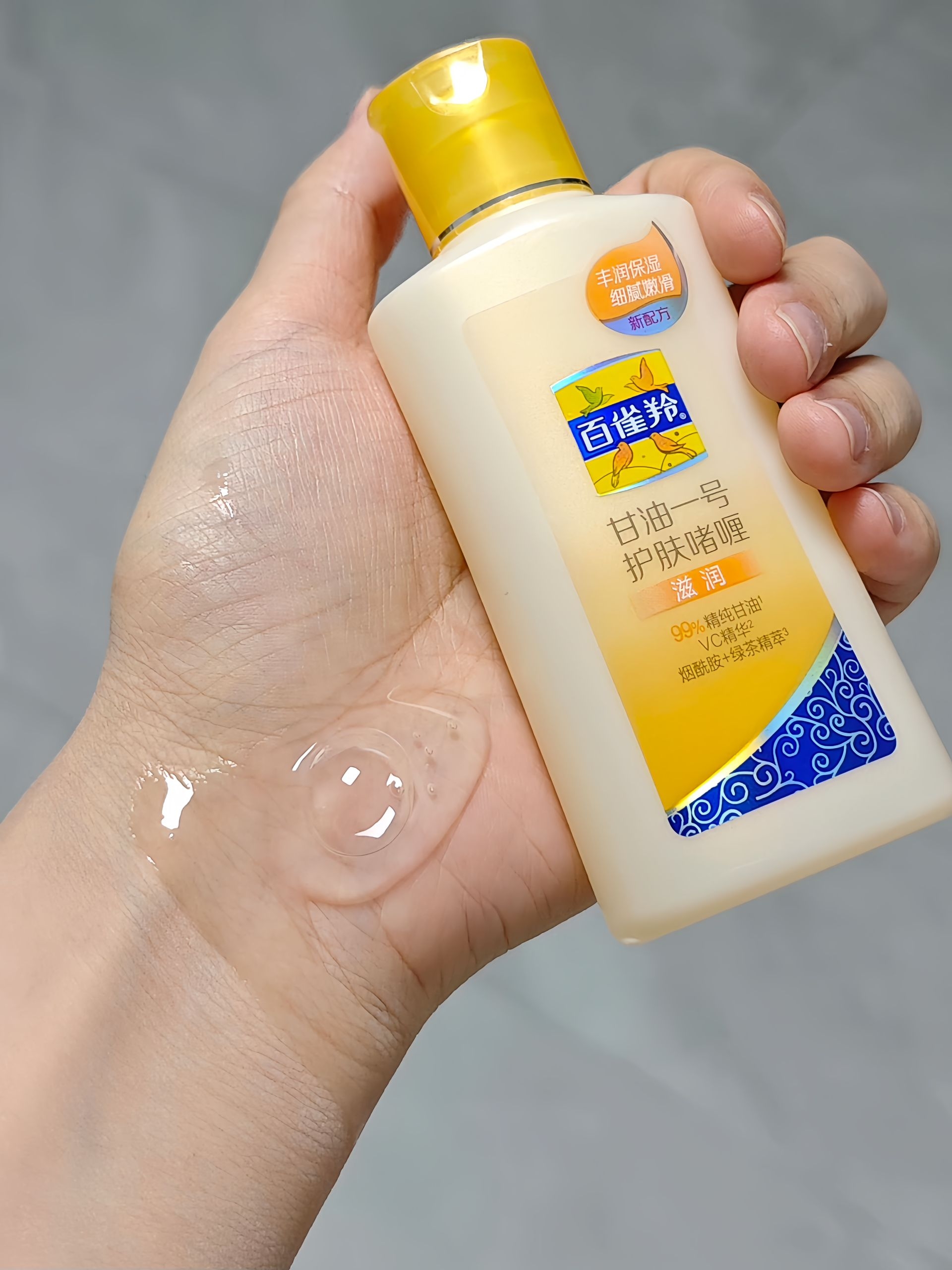 真心安利!我挖到一个国货老牌的隐藏用法👇🏻 把百雀羚护肤甘油当身体乳来使用 这瓶成分比较纯净 敏皮也能放心用 它的质地是透明啫喱 一抹开就化成水 完全不会油 皮肤吸收后也不会黏黏糊糊的 最香的是它的超高性价比!怎么厚涂都不心疼, 特别是关节、脚后跟、膝盖这些易干燥的地方。