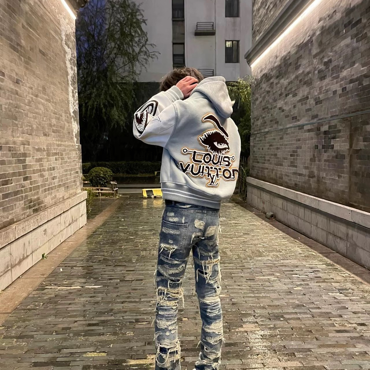 今天这条裤子是真的帅啊,闪电纹理的设计蛮酷的,美式高街感拉满!搭配双匡威板鞋简单又帅气!