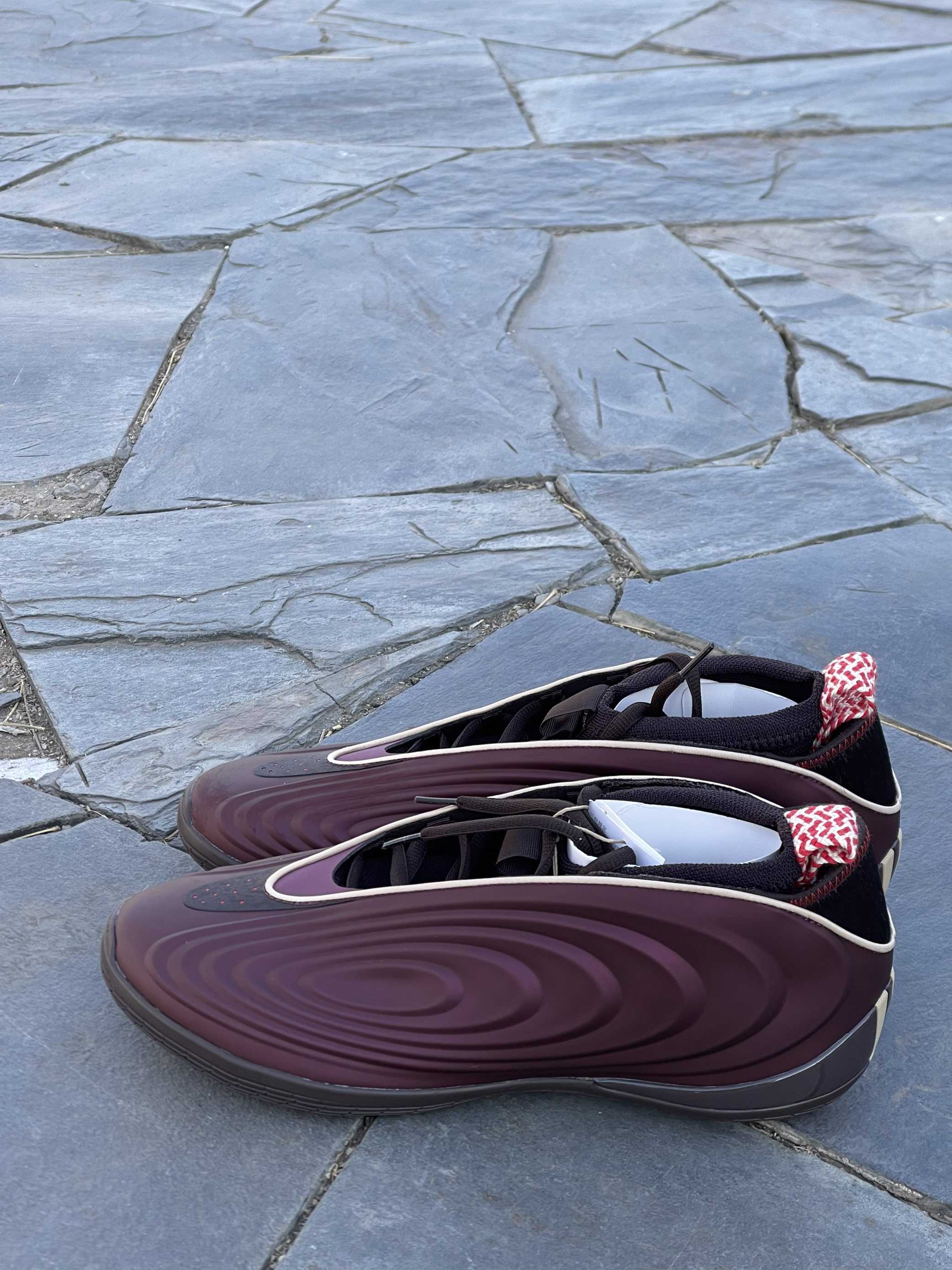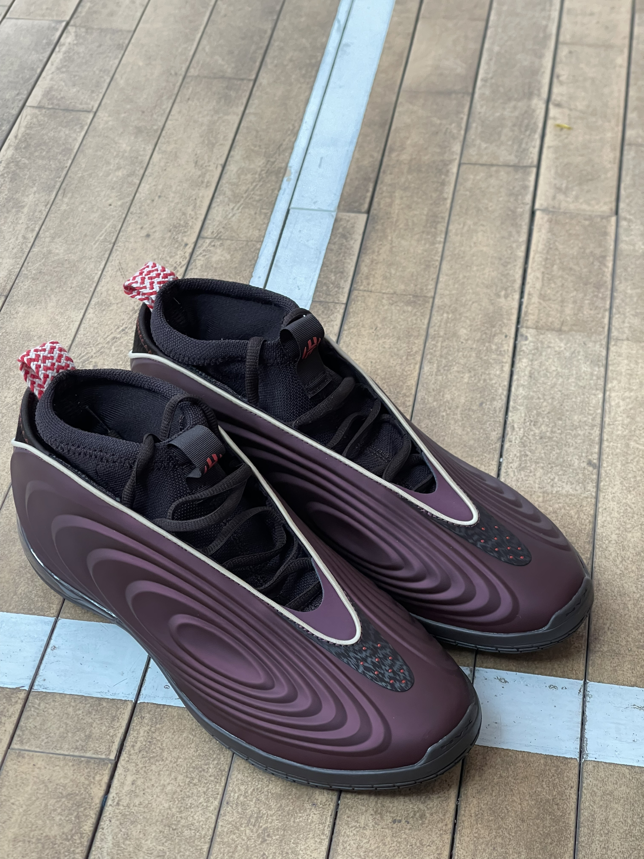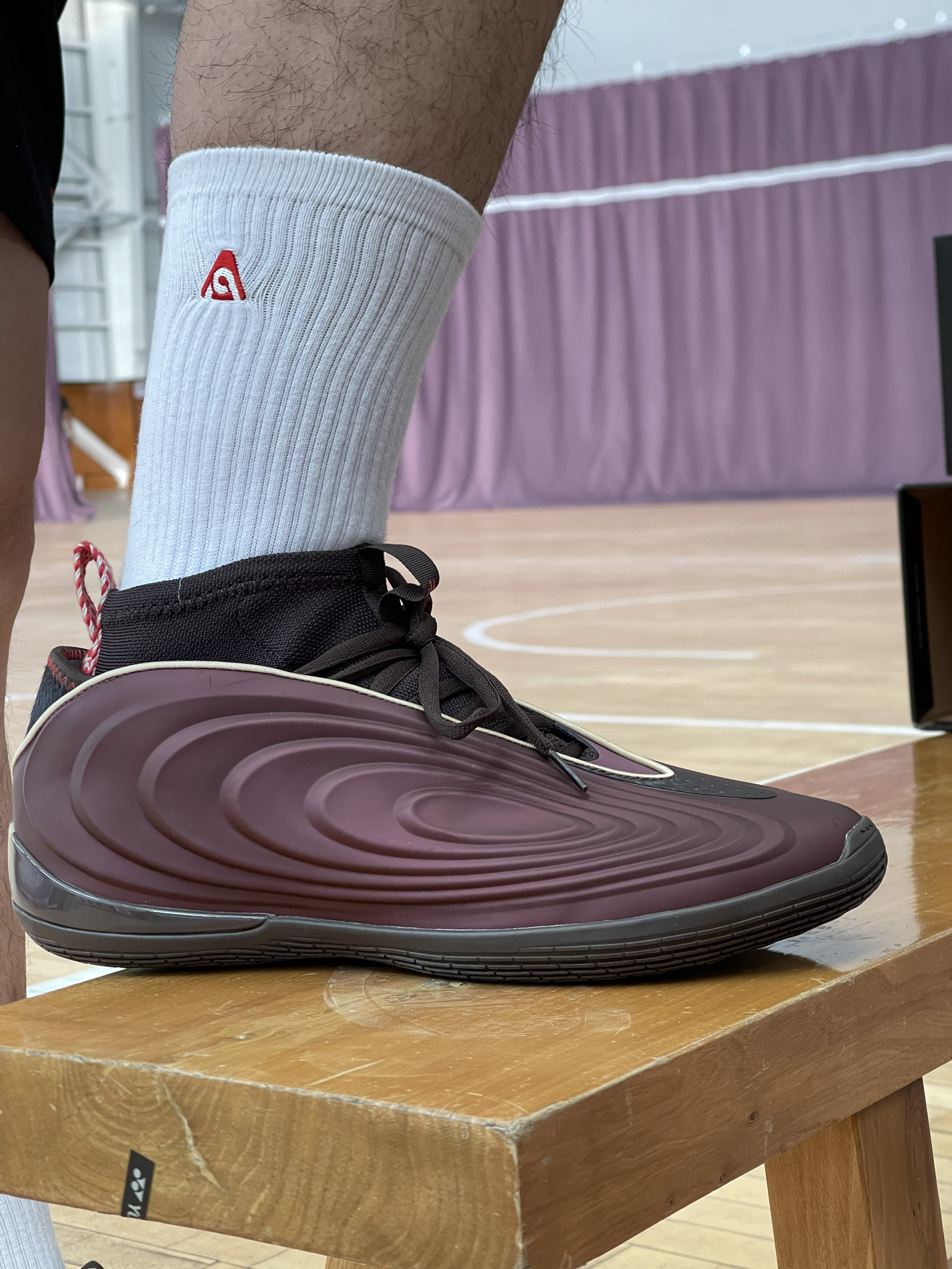 颜值真的太帅气了吧😎,汗血宝马配色真的很惊艳,第一眼普通,但是越看越耐看🤩,我47.5的脚想要穿上还是比较困难的,袜套式的设计包裹感和鞋脚一体性很强烈👟,不算太重穿起来,防侧翻很好👍,穿着2小时训练,鞋底缓震对于210斤的我来说很够用,采用的是水晶底以及橡胶的拼接工艺,防滑性没得说😧,更适合内场实战,后跟的一撮马毛呼应了新年的主题,是一双一到五号位都能穿的鞋子,而且不偏码,正常选择就可以🤭!新年的...