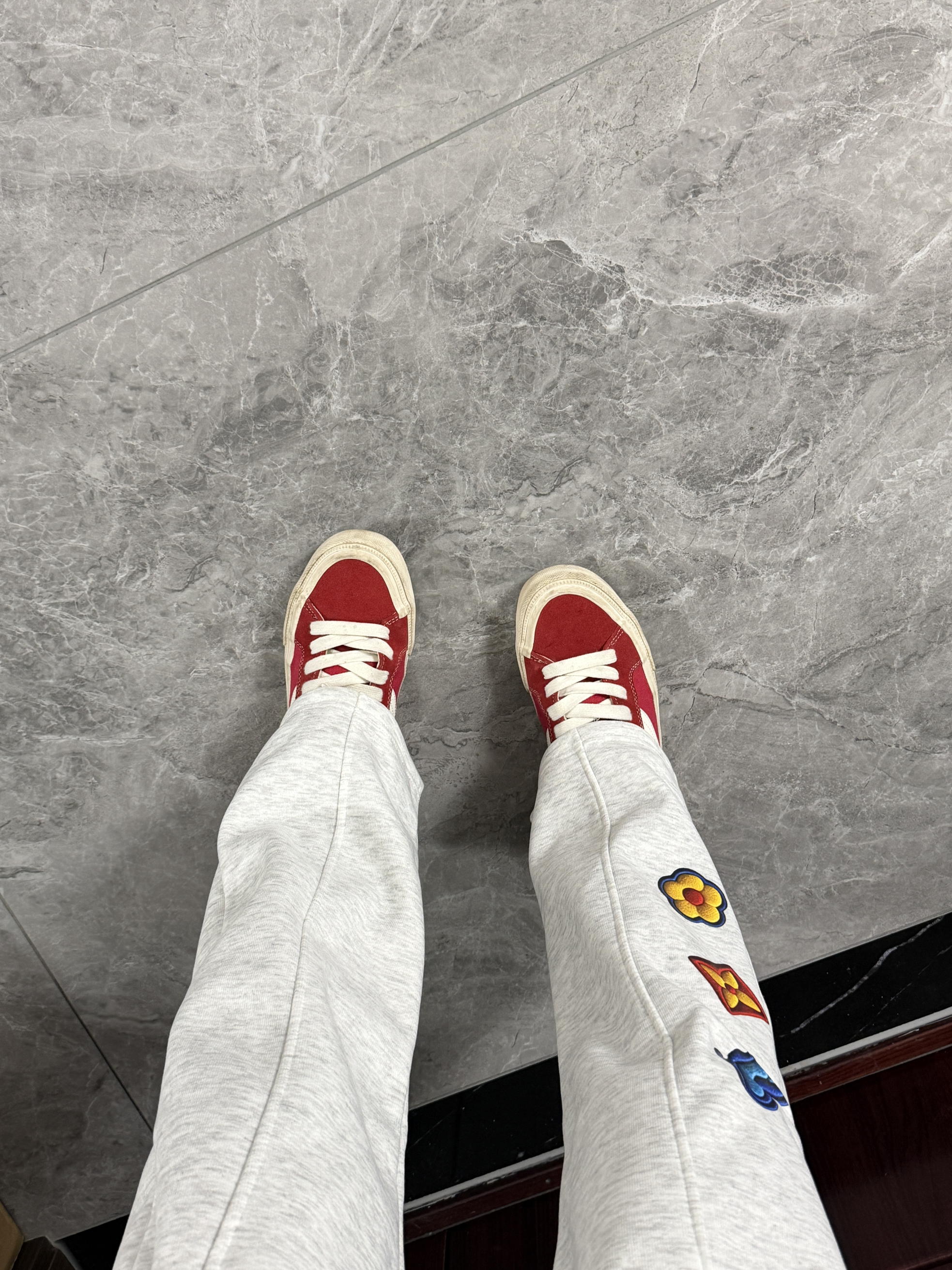秋冬穿搭少不了卫裤,这条花朵印花的休闲裤休闲松弛美式感拉满!柔软亲肤的面料就很适合冬天穿,搭配双红色复古滑板鞋帅飞了!