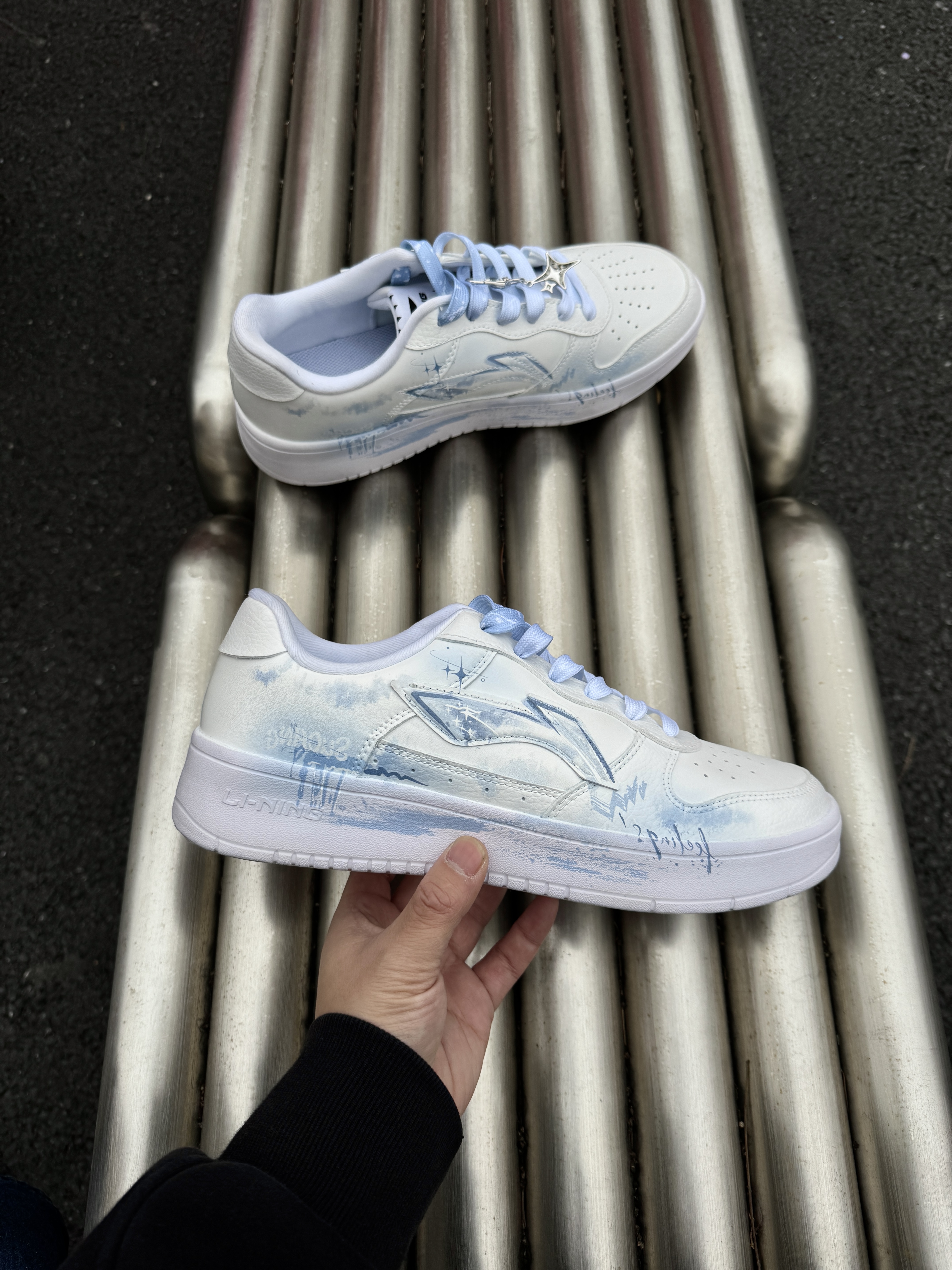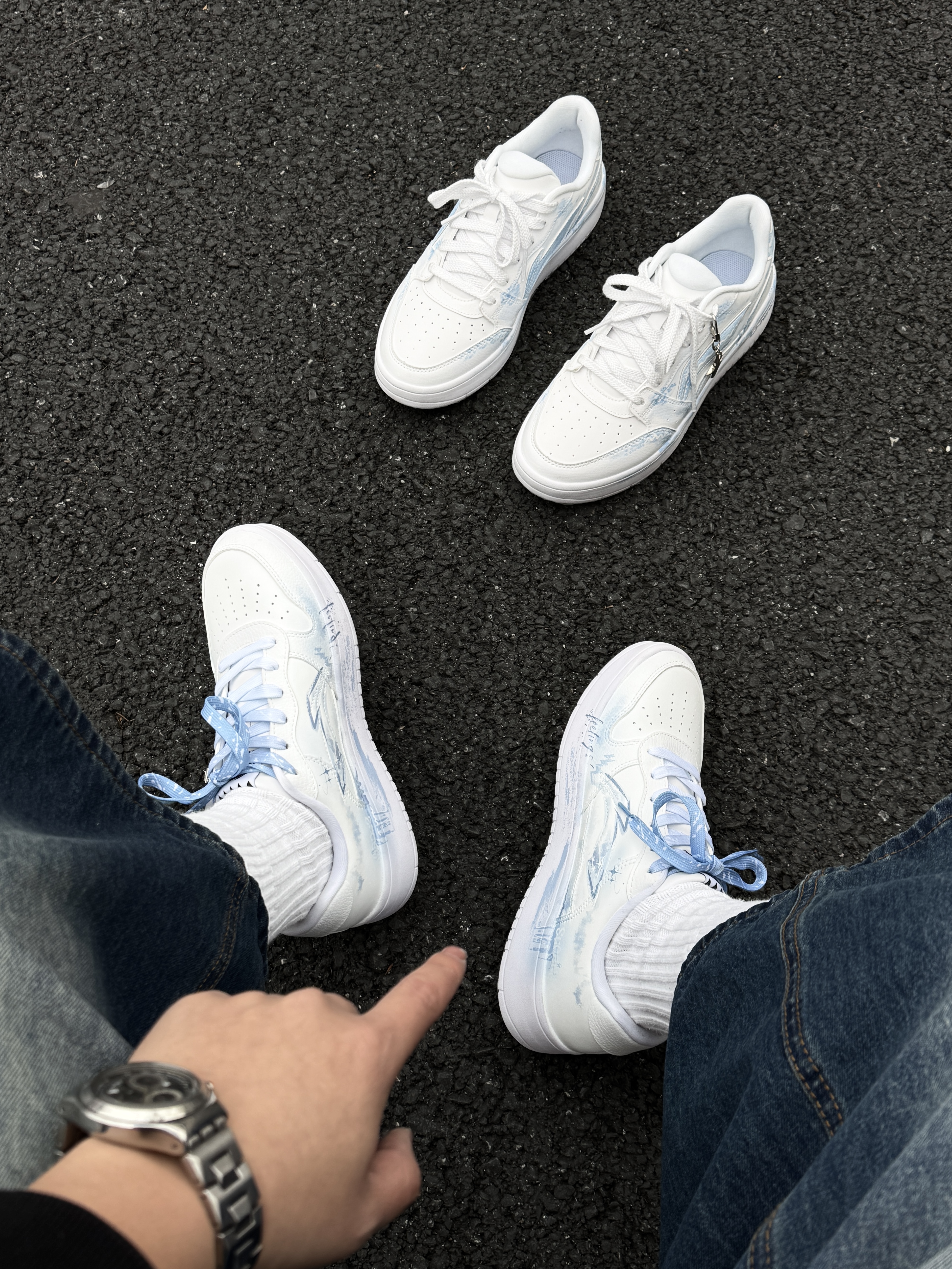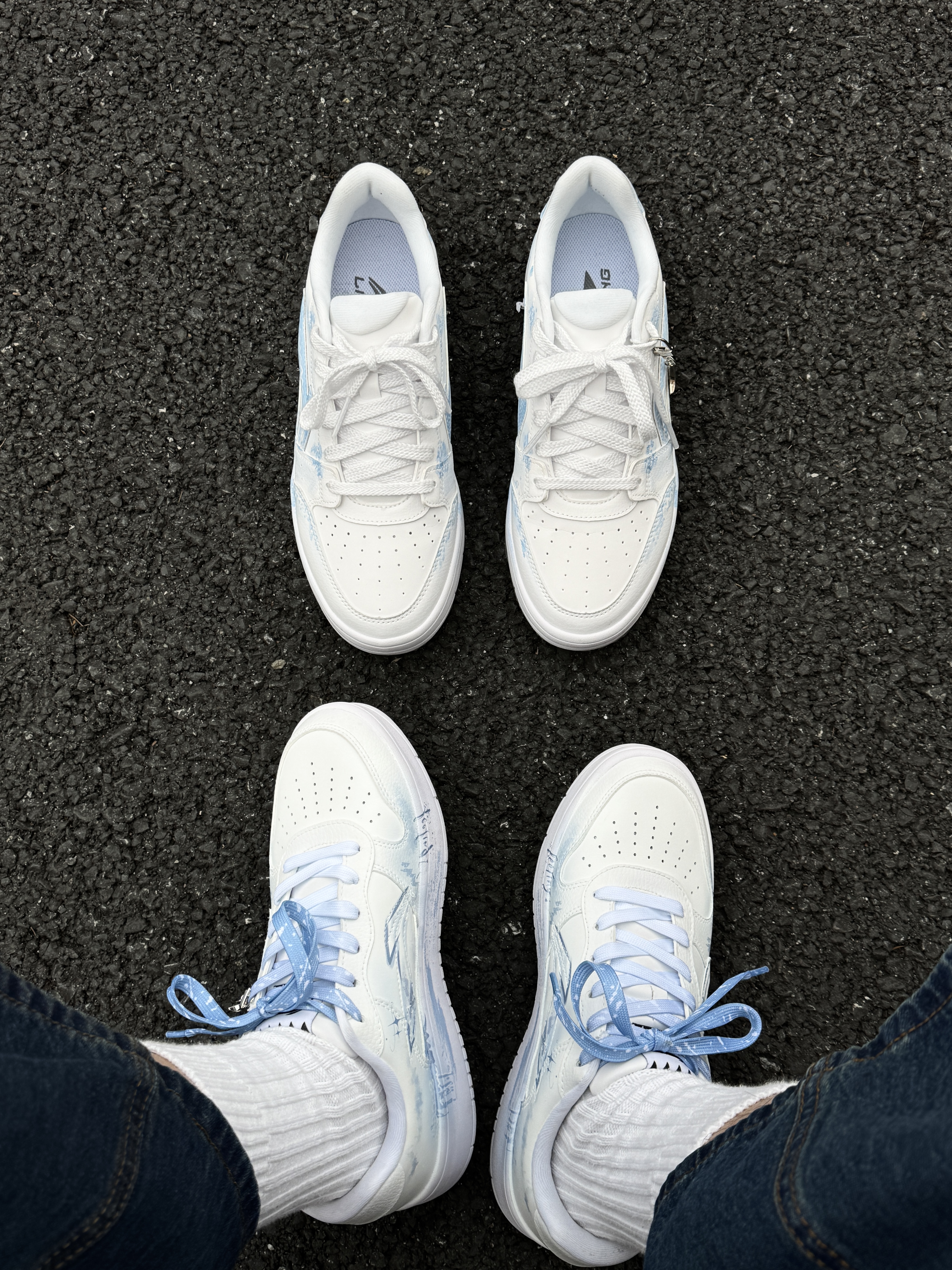 ~ 给大家分享两双 #李宁 的定制板鞋👟 这两双都是基础款鞋型白蓝配色 不同的是两双的版画设计会有些不同 这两双感觉男孩子穿起来更显得干净清爽 厚底增高大概有个2-3公分左右 鞋身都不是很重 上脚轻便还百搭 亲测走上一天也不累脚🦶🏻 尺码小建议: 徐哥平常穿的40这双40的刚好合适‼️ #一马当先晒新鞋 #竟然被鞋抢了c位 #2025年度好东西 #双旦礼物礼物节 #时髦蜈蚣精必备