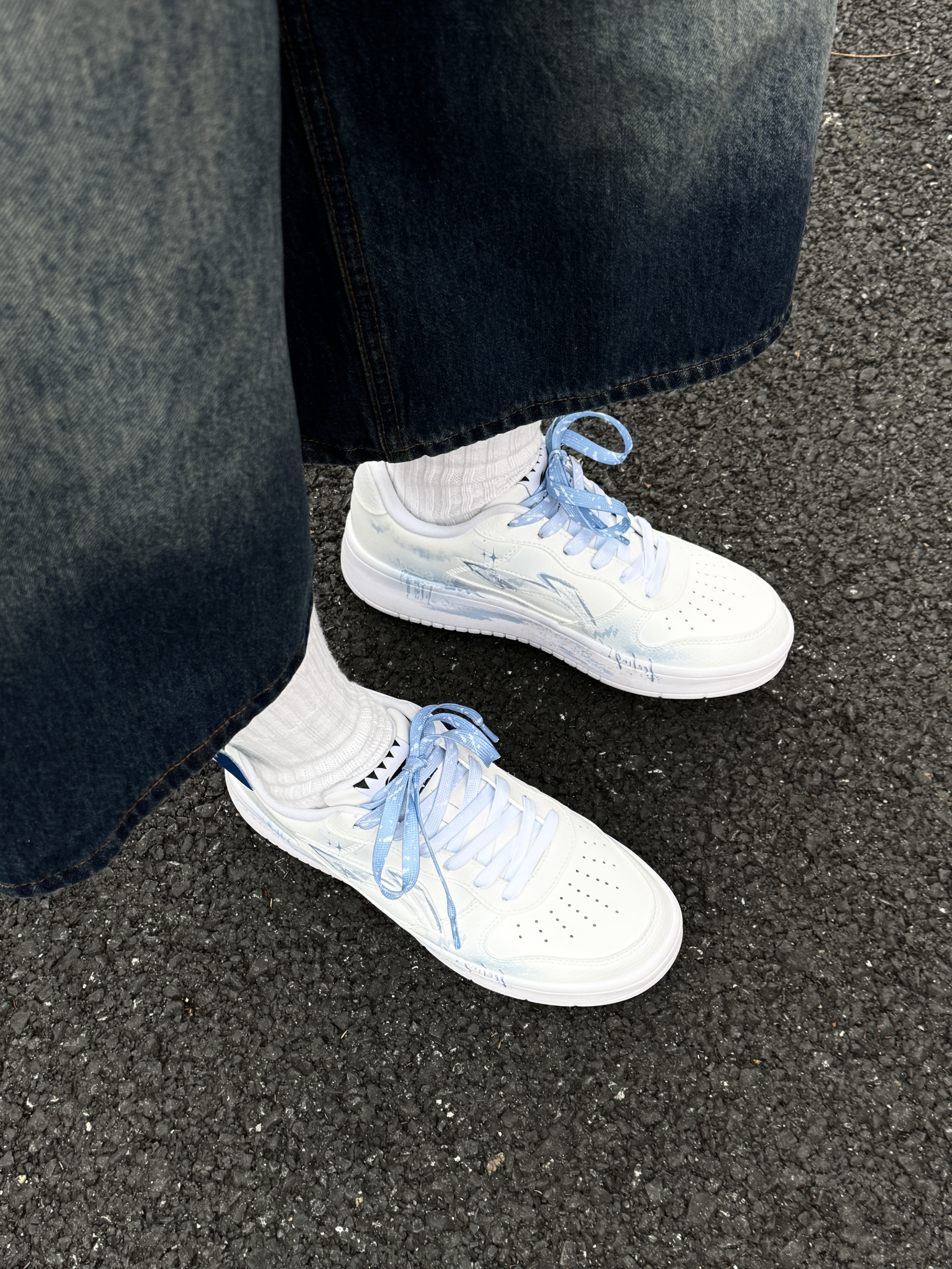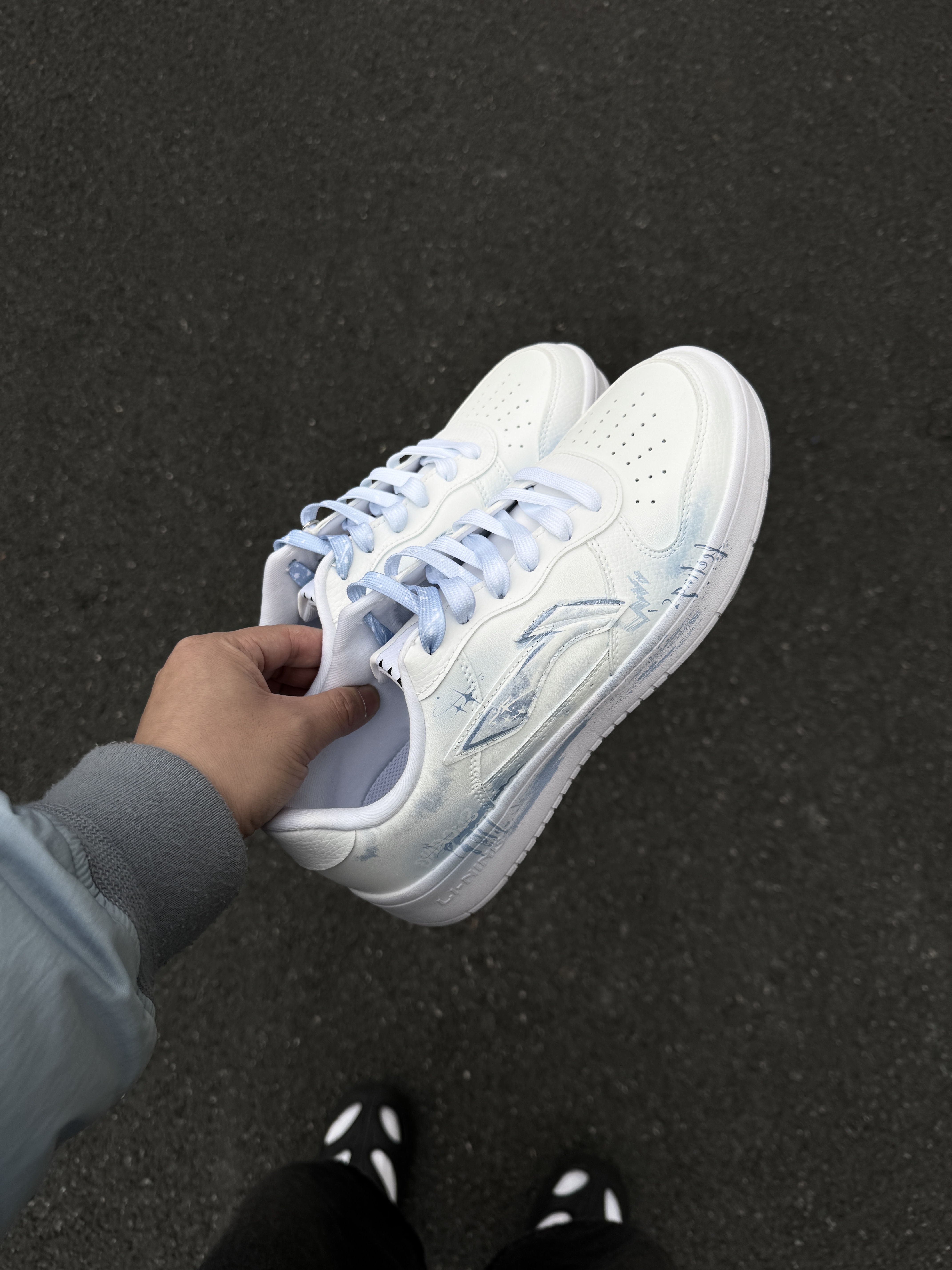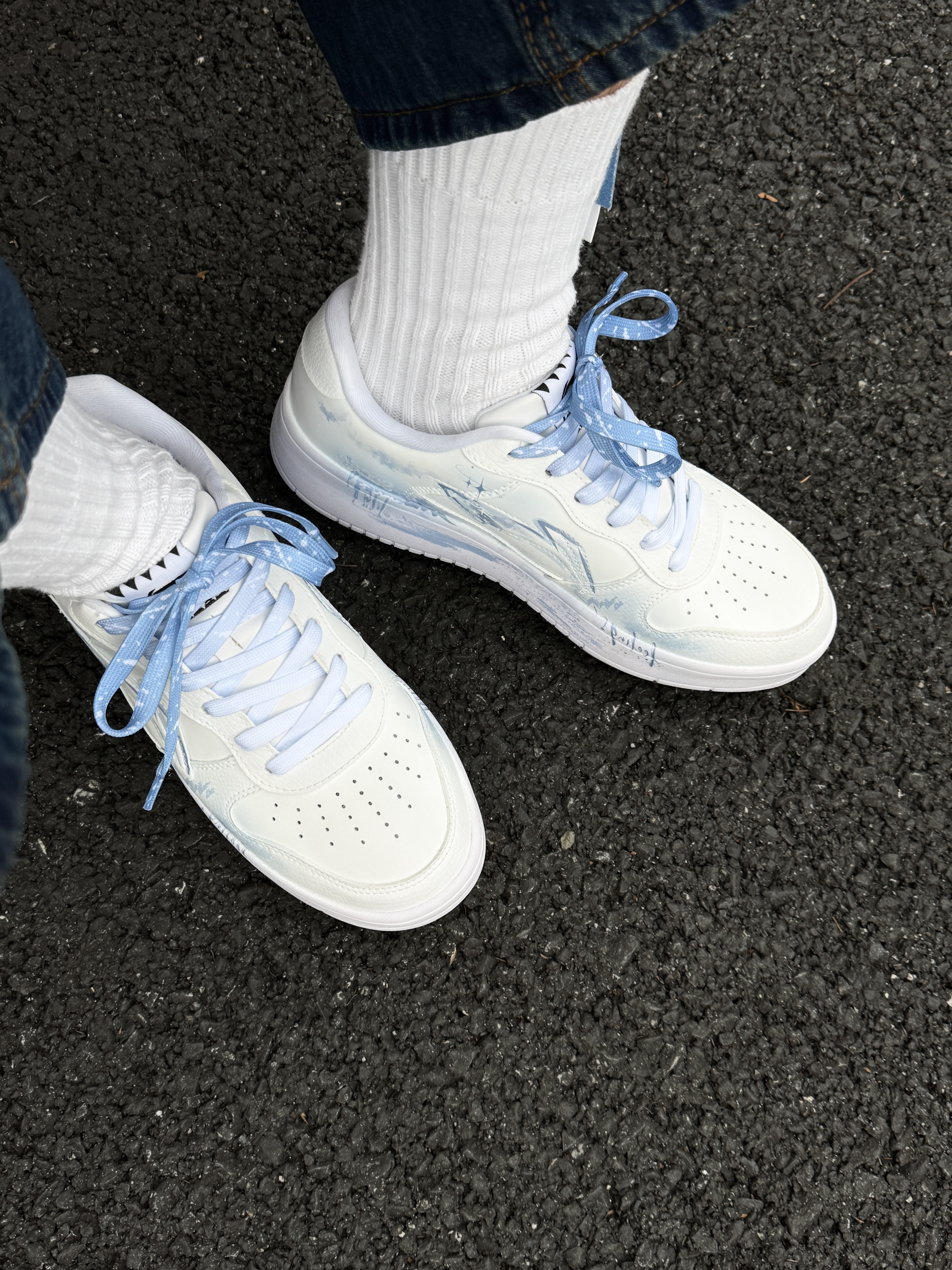 ~ 给大家分享两双 #李宁 的定制板鞋👟 这两双都是基础款鞋型白蓝配色 不同的是两双的版画设计会有些不同 这两双感觉男孩子穿起来更显得干净清爽 厚底增高大概有个2-3公分左右 鞋身都不是很重 上脚轻便还百搭 亲测走上一天也不累脚🦶🏻 尺码小建议: 徐哥平常穿的40这双40的刚好合适‼️ #一马当先晒新鞋 #竟然被鞋抢了c位 #2025年度好东西 #双旦礼物礼物节 #时髦蜈蚣精必备