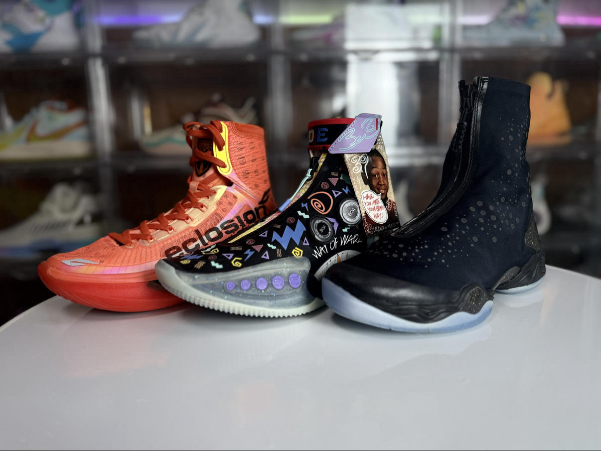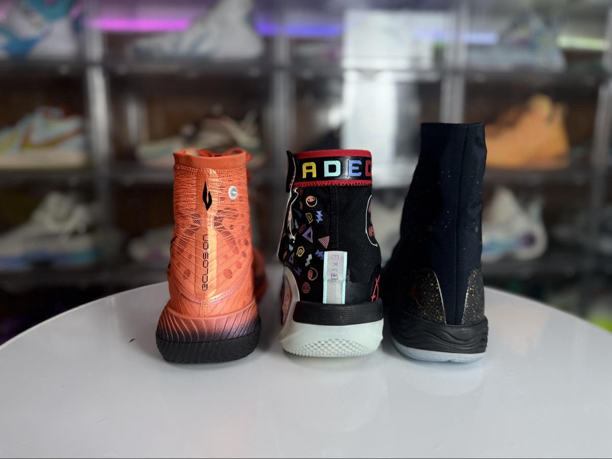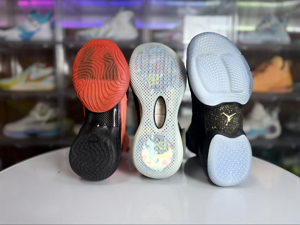 三款球鞋在发售年份品牌最高价位的篮球鞋,分别代表了安踏、李宁、耐克在篮球鞋领域的技术探索与设计理念,从配置科技到实战体验各有鲜明特色: 1. 安踏eclosion® TYPE 1 Lattice:搭载前后掌填腹式氮科技中底+前掌晶格结构缓震模块,轻量韧弹且落地稳定,全飞线+内冲孔编织鞋面兼顾透气与支撑带来极致包裹;液态橡胶配合参数化外底设计耐磨能适配室内外场地,但内场容易吸灰,40码单只约370g...