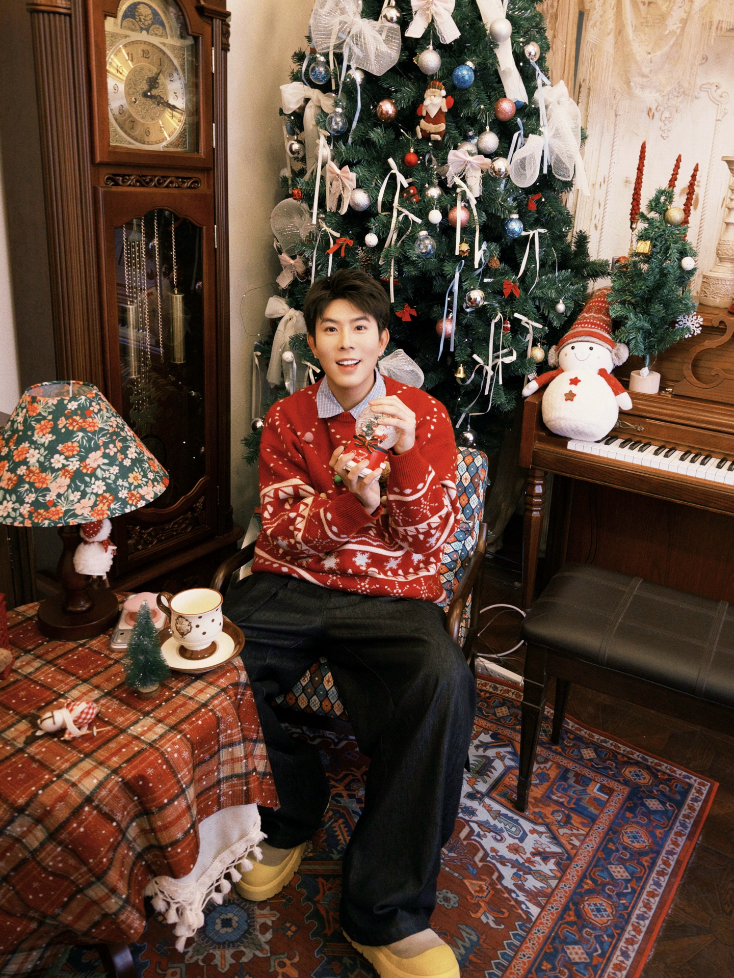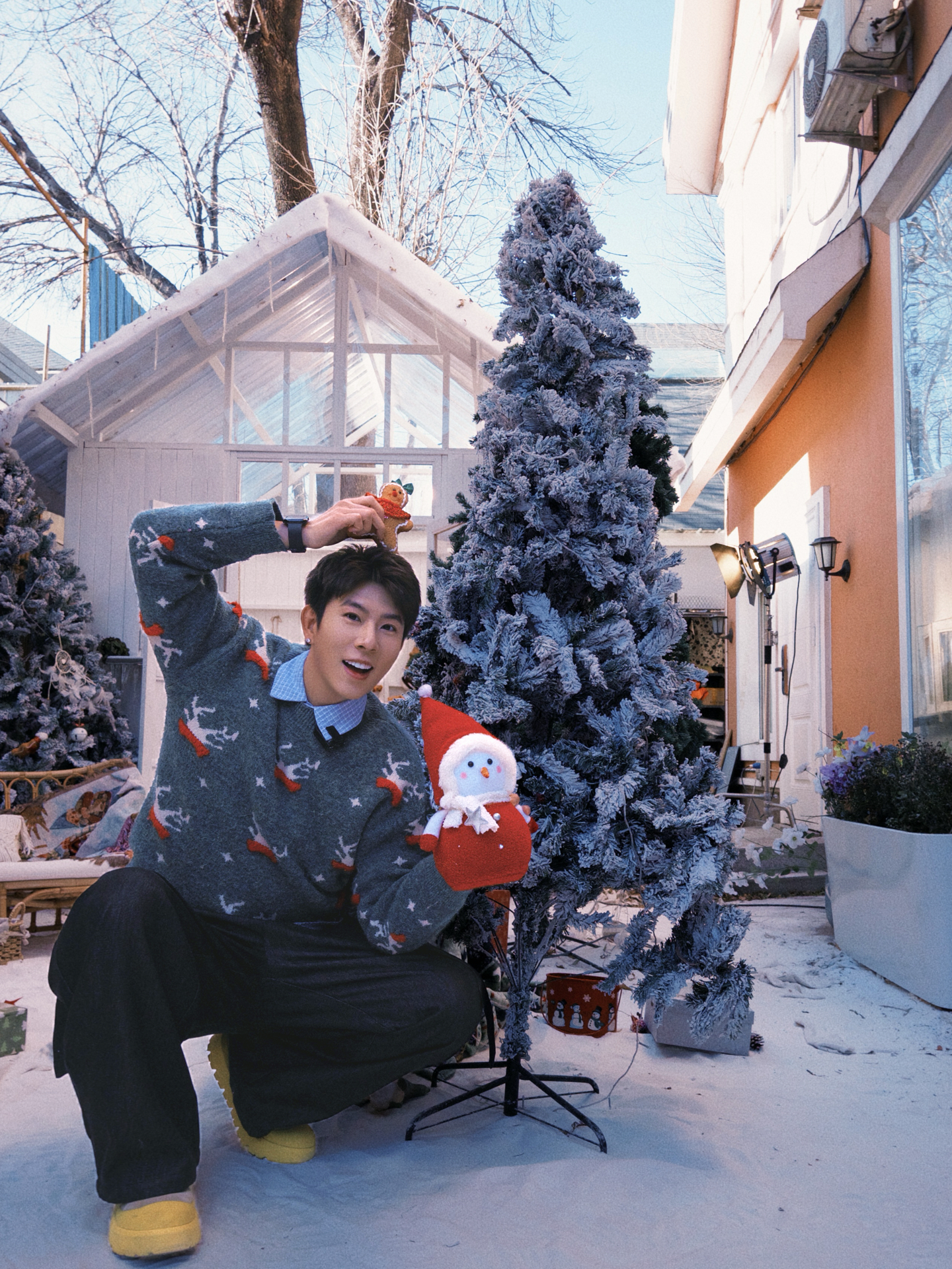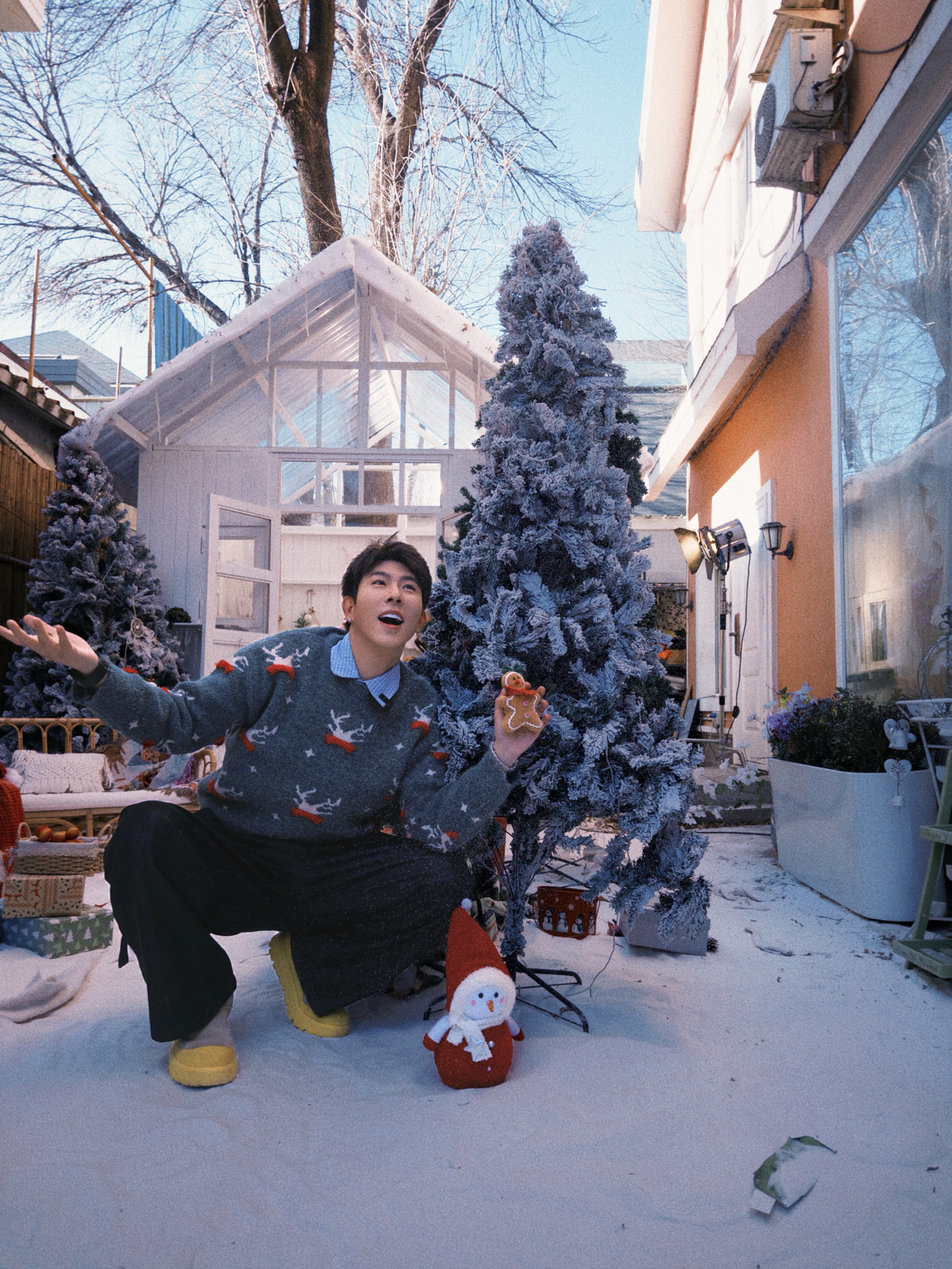 红色的圣诞提花毛衣是每年的固定嘉宾,暖乎乎的针织质感裹着节日的热闹劲儿,红底的花纹和圣诞场景搭在一起,氛围感直接拉满;灰色的麋鹿图案毛衣则多了点慵懒随性,冷色调和雪景呼应,玩闹的时候穿也自在。内搭搭了件浅格纹衬衫,小翻领露出来多了点层次感,下装还是选了最百搭的黑色休闲裤,宽松的版型不管是蹲在雪地里玩,还是坐在室内摆拍都舒服。 这些单品每年圣诞拿出来穿都不过时,就像熟悉的老友,总能稳稳接住每一次的...