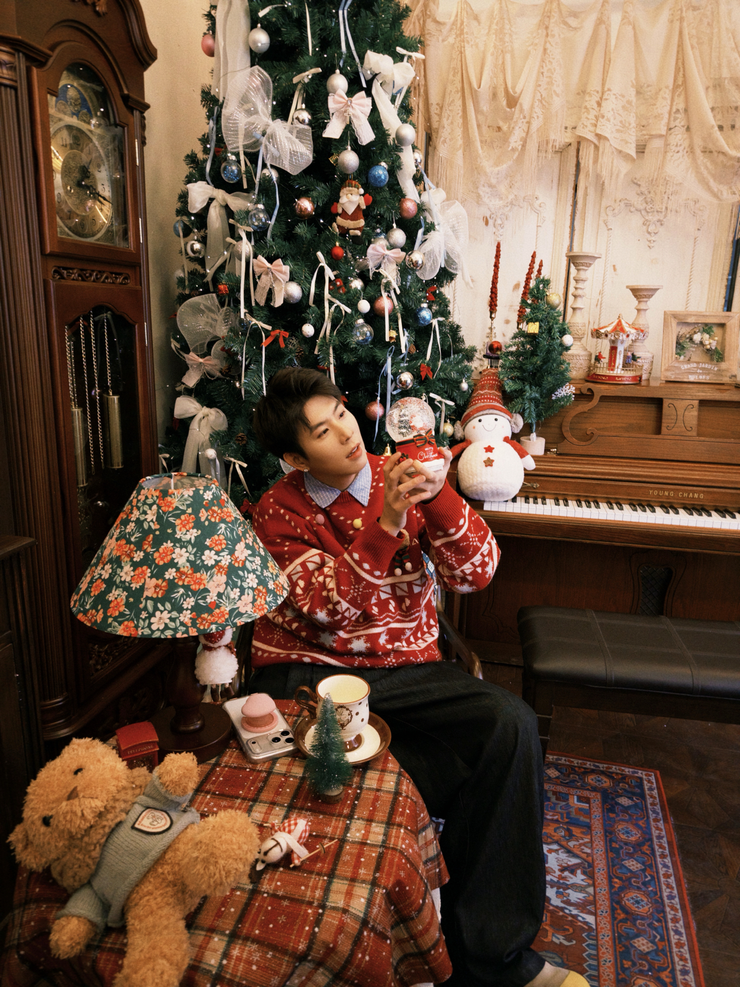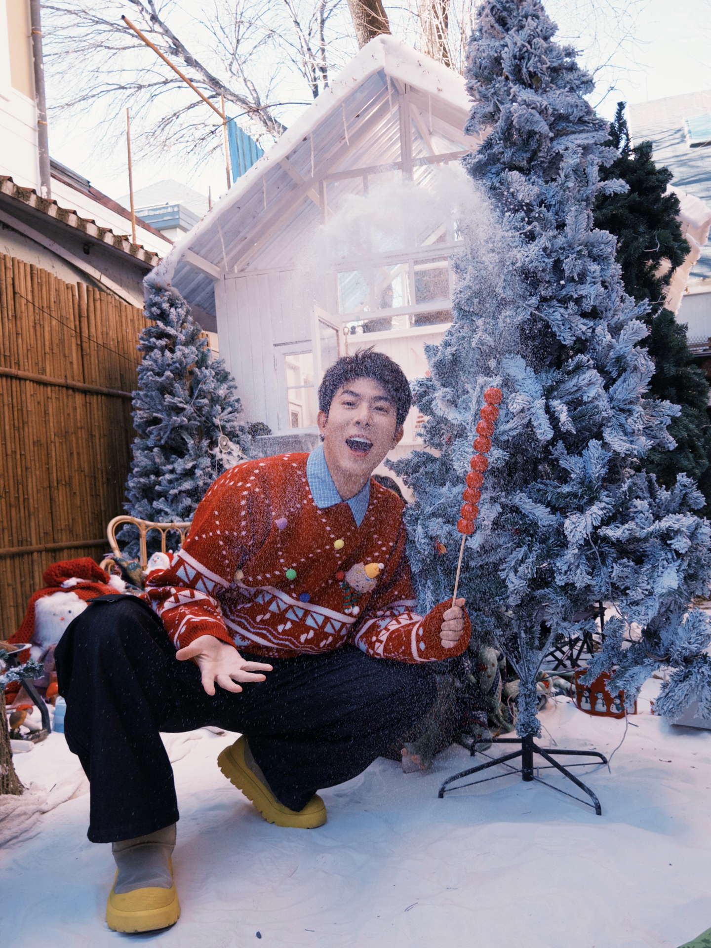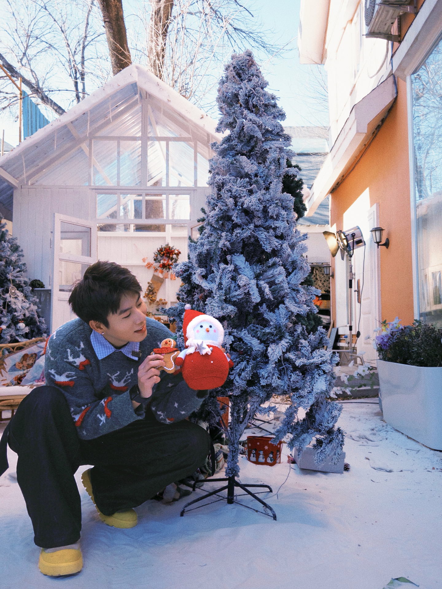 红色的圣诞提花毛衣是每年的固定嘉宾,暖乎乎的针织质感裹着节日的热闹劲儿,红底的花纹和圣诞场景搭在一起,氛围感直接拉满;灰色的麋鹿图案毛衣则多了点慵懒随性,冷色调和雪景呼应,玩闹的时候穿也自在。内搭搭了件浅格纹衬衫,小翻领露出来多了点层次感,下装还是选了最百搭的黑色休闲裤,宽松的版型不管是蹲在雪地里玩,还是坐在室内摆拍都舒服。 这些单品每年圣诞拿出来穿都不过时,就像熟悉的老友,总能稳稳接住每一次的...