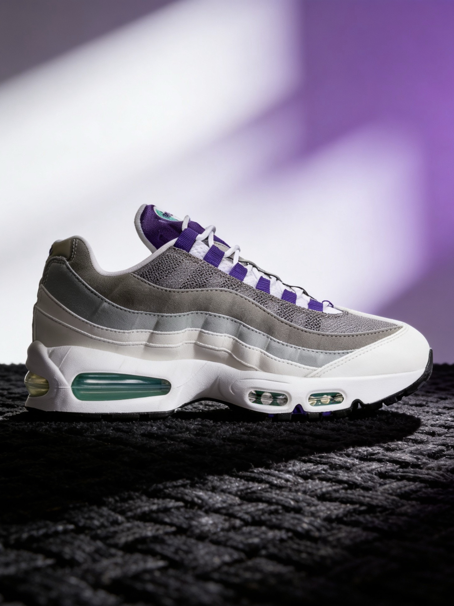 这双紫灰Air Max 95就是典型的“颜值与脚感双在线”的复古款,经典的分层设计+高级的配色,穿搭适配度拉满,气垫缓震也能满足日常出行的脚感需求,复古党和休闲党闭眼冲就完事儿!