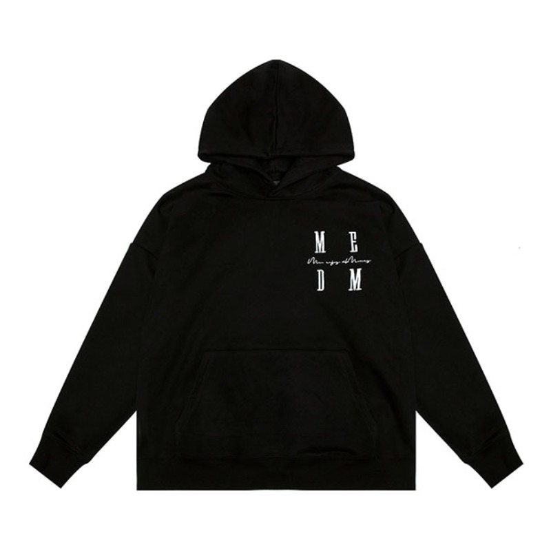 👕推荐单品:medm黑色连帽卫衣 🛒推荐理由:非常重磅,克重在我所有卫衣里算高的,非常厚实,胸口的logo是刺绣,不会因为常穿常洗磨损,适合长期主义 🧍🏻尺码对照(身高|体重):185cm | 80kg XL