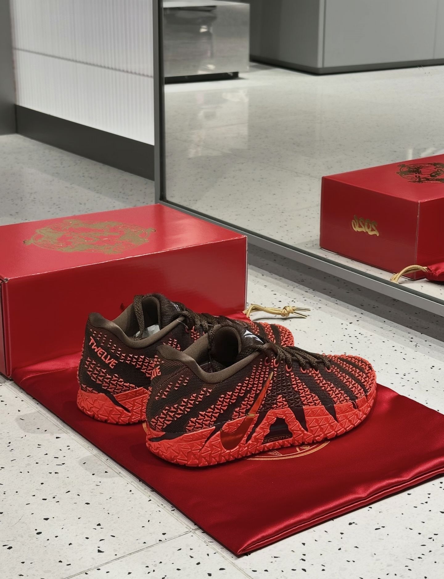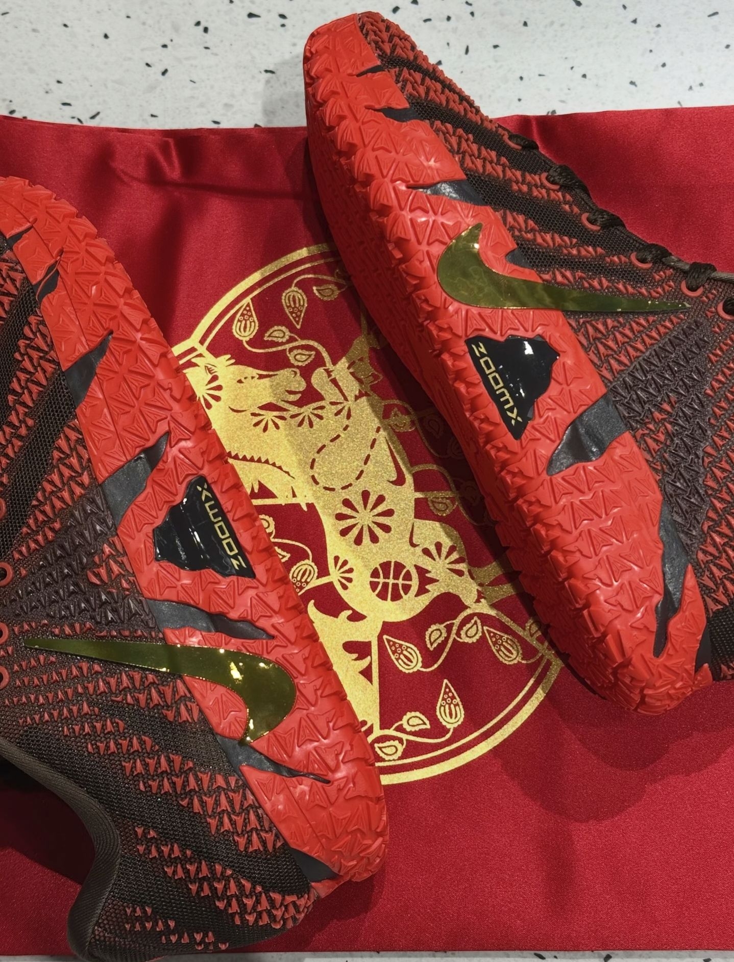 谁懂啊家人们!Nike Ja 3 马年配色真的把新年氛围感拉满了! 鞋身大面积的中国红+鎏金线条点缀,鞋舌上的骏马图腾直接戳中本命年限定DNA!鞋侧的动态飞线设计,搭配前掌Zoom Air气垫,突破启动那一下的回弹感直接拉满,不管是实战还是压马路都贼拉舒服~ 鞋帮高度对后卫党超友好,不压脚背还能稳稳锁住脚踝,后跟的提拉设计穿脱也超方便!皮质鞋面冬天穿不冻脚,搭配束脚裤或者工装裤,走在街上回...