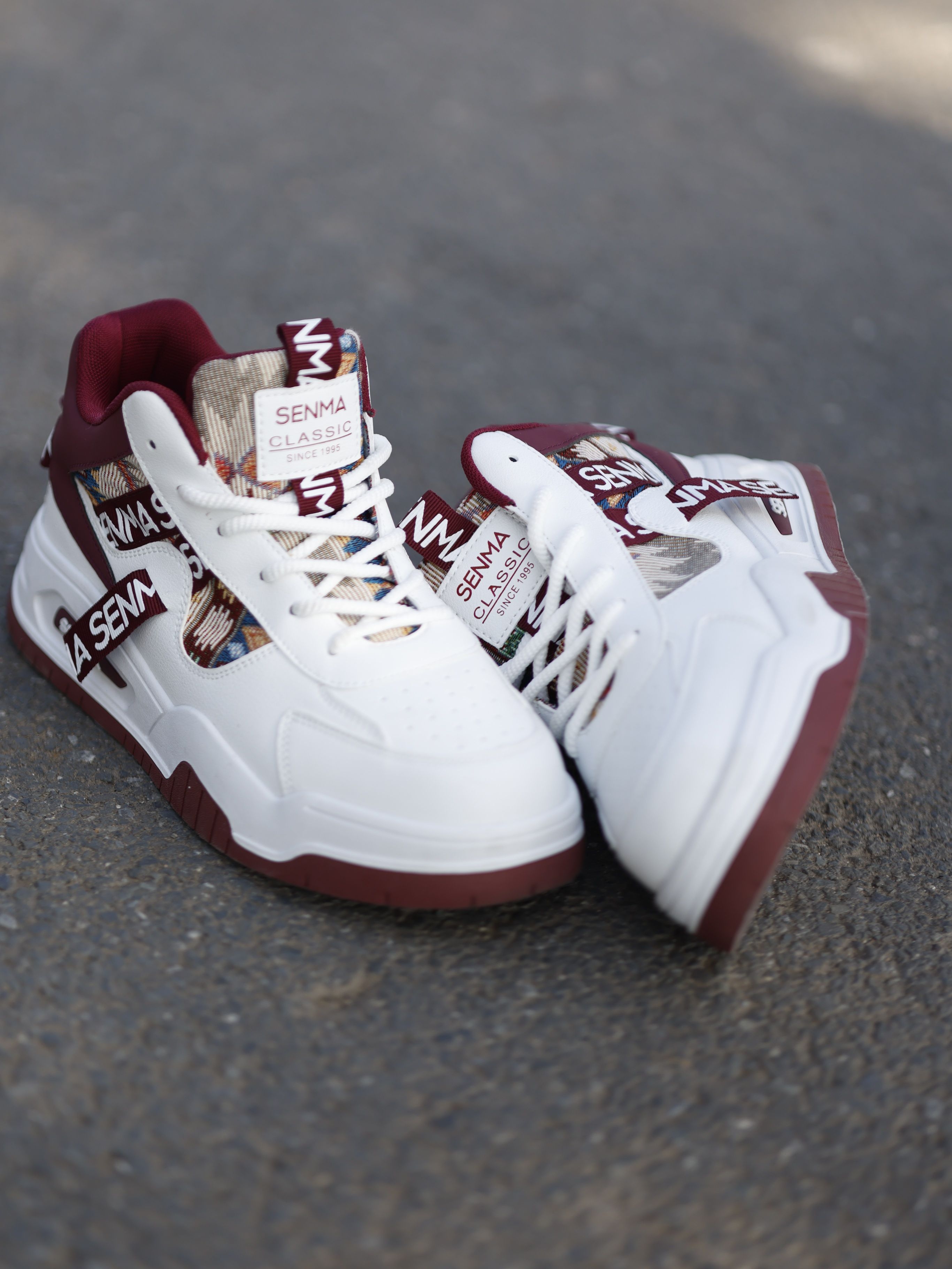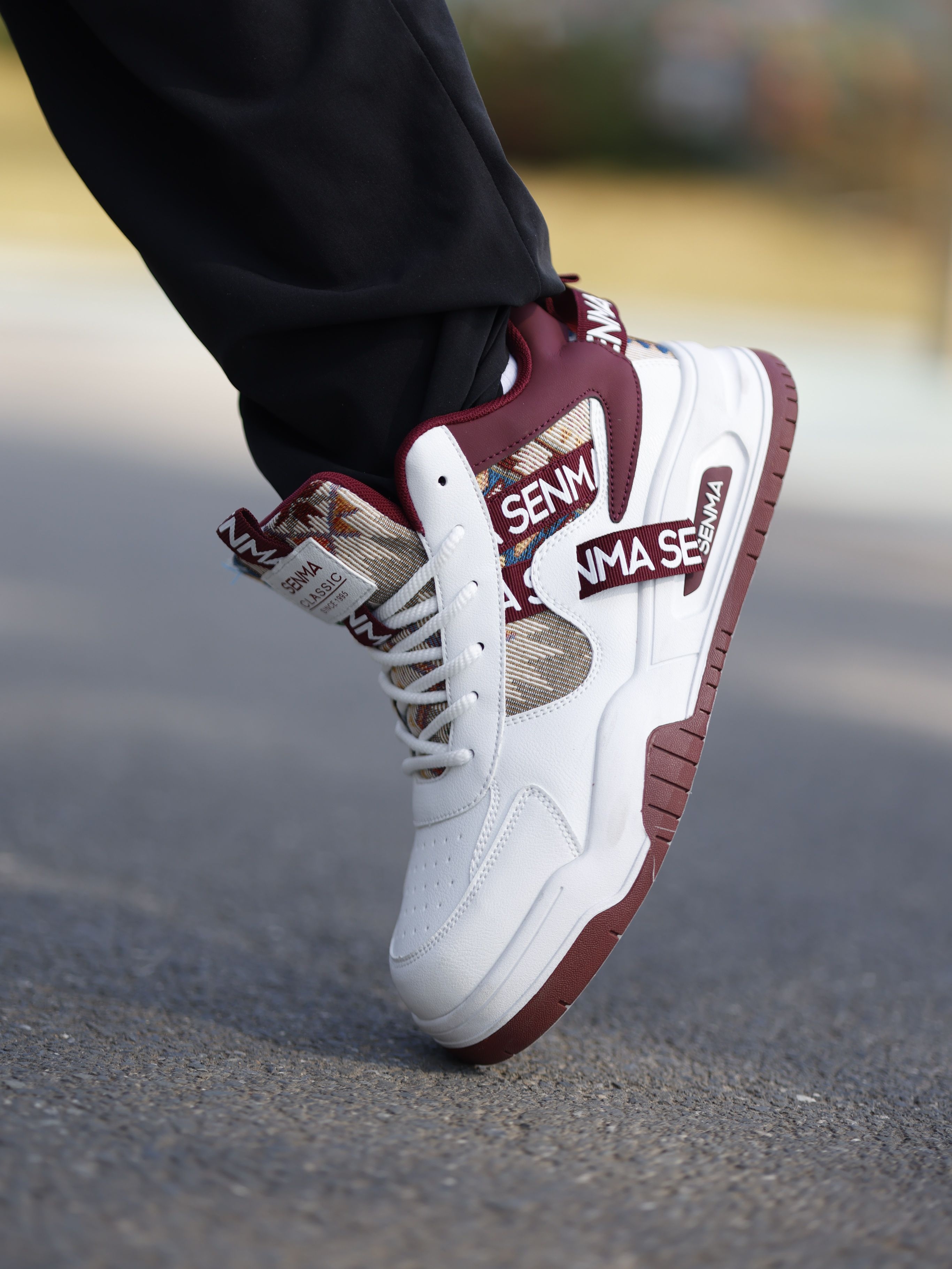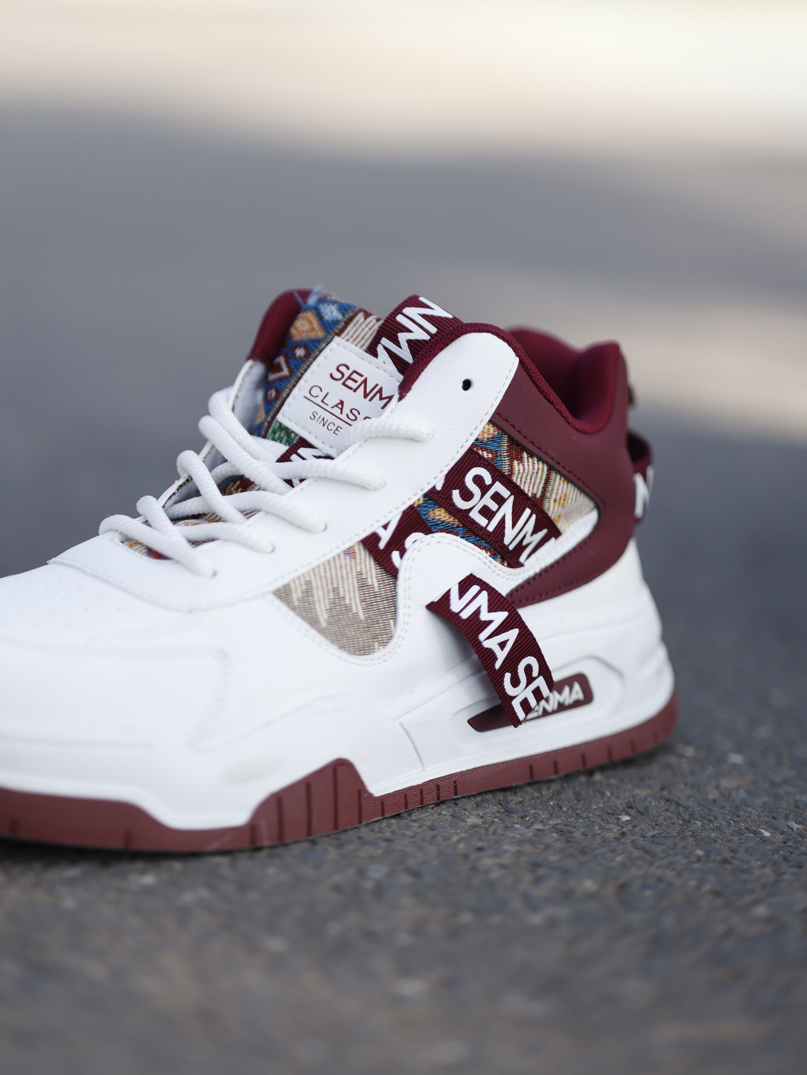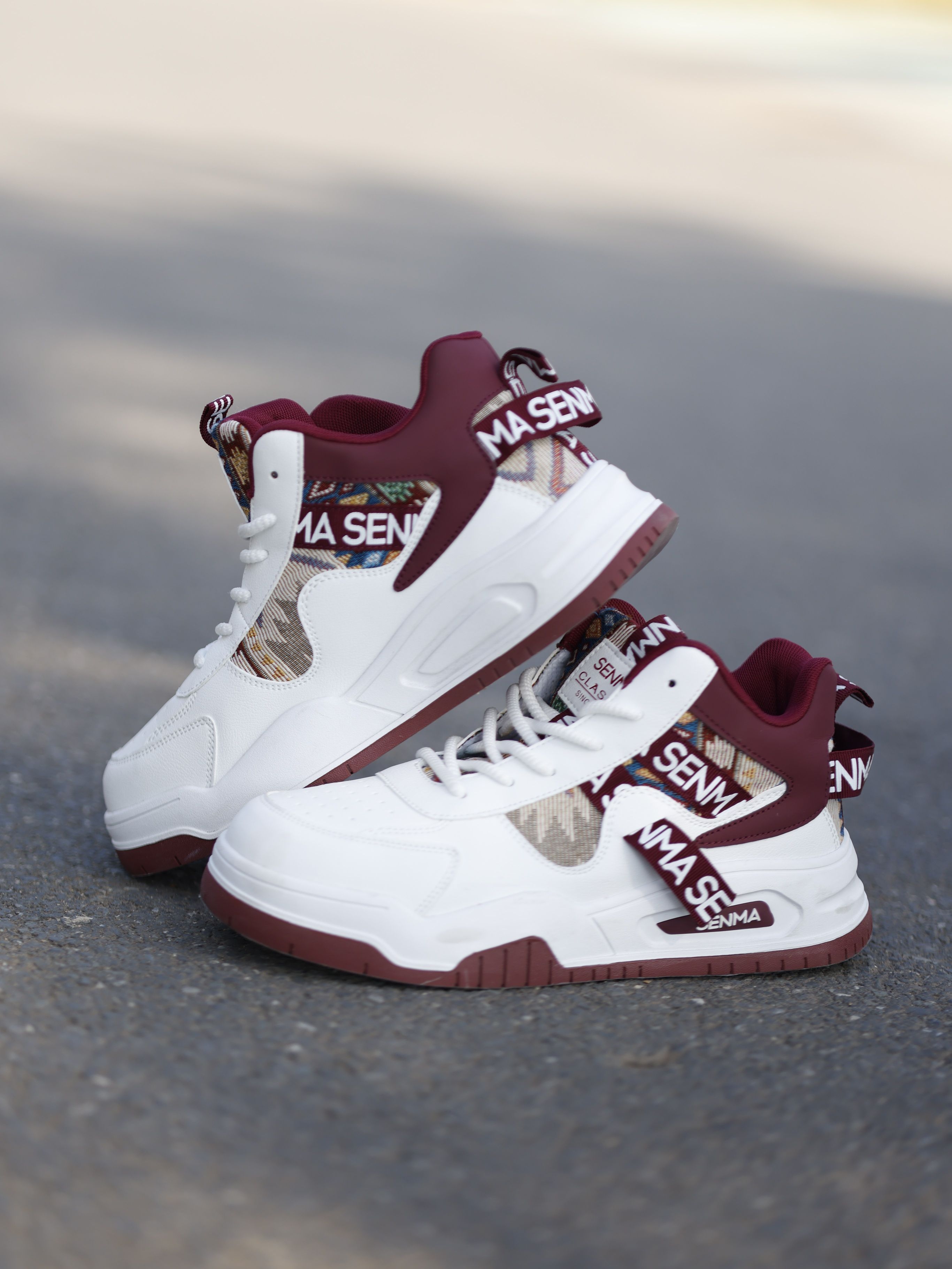 哥们儿别划走!森马这双民族风高帮实测出街,回头率直接拉满—— 🔥 图腾有说法 不是普通印花!提取苗银纹样+水墨渐变,激光蚀刻工艺让图腾立体发光,每一步都像踩着流动的山水画🏔️ 🔥 **高帮黑科技三件套」 ▫️3cm隐形增高:模块化厚底显高不笨重 ▫️防滑锯齿底:泼水瓷砖上急转稳如磐石 ▫️轻量化重构:单只仅重320g!爬山赶地铁像踩风火轮 🔥 **直男穿搭救星」 配黑色束脚工装裤+泼墨牛仔外...