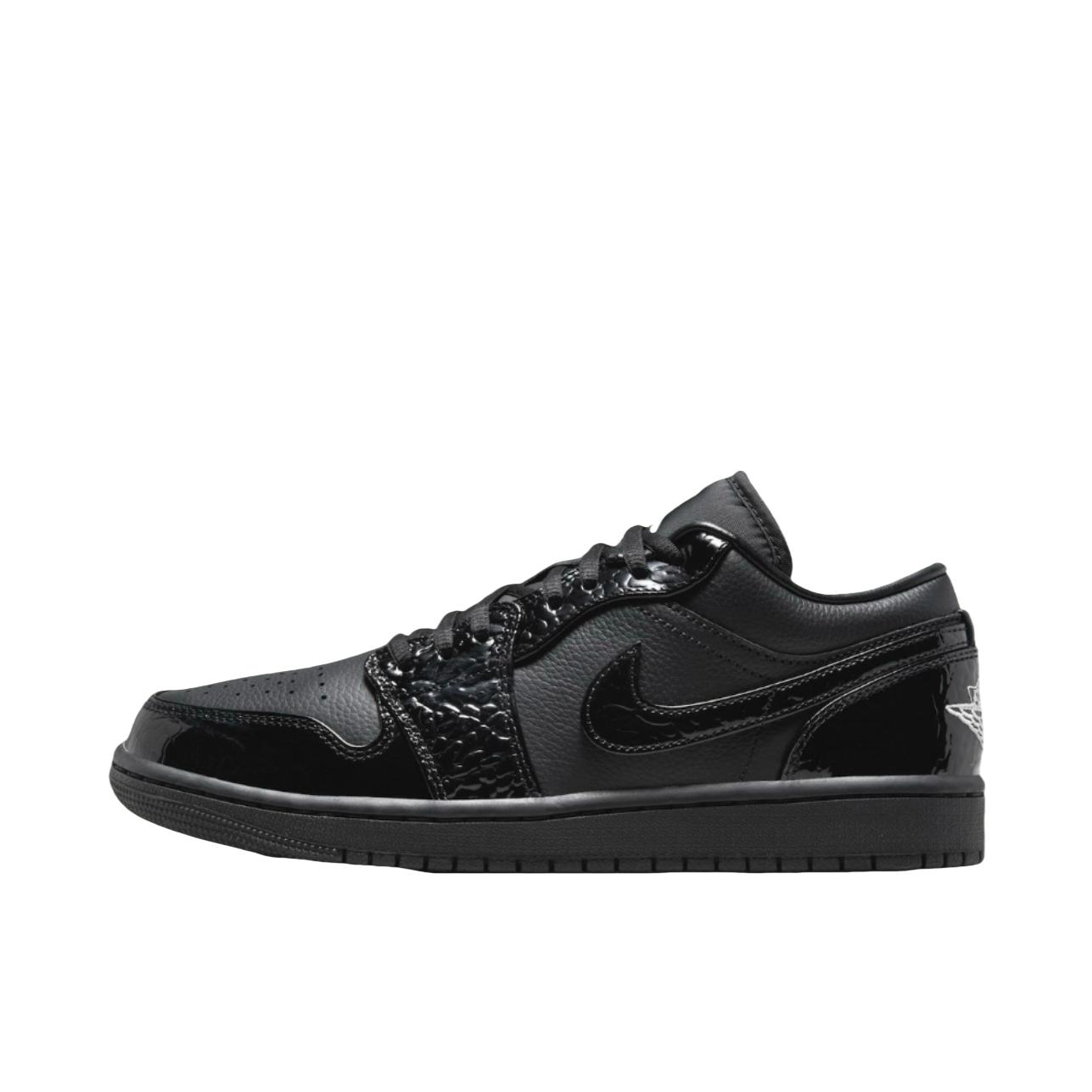 Jordan Air Jordan 1 LOW “Black Croc” 货号:HJ7743-010 发售时间:2024 发售价格:¥949(仅供参考) 这款Air Jordan 1 Low采用了全黑色的设计,鞋面使用了高质量的皮革材质,表面有细微的纹理感,增加了质感和耐用性。鞋带也是黑色,与鞋面融为一体。 鞋舌上有经典的Jumpman标志,同样为白色,与黑色鞋面形成鲜明对比,增强了辨识...