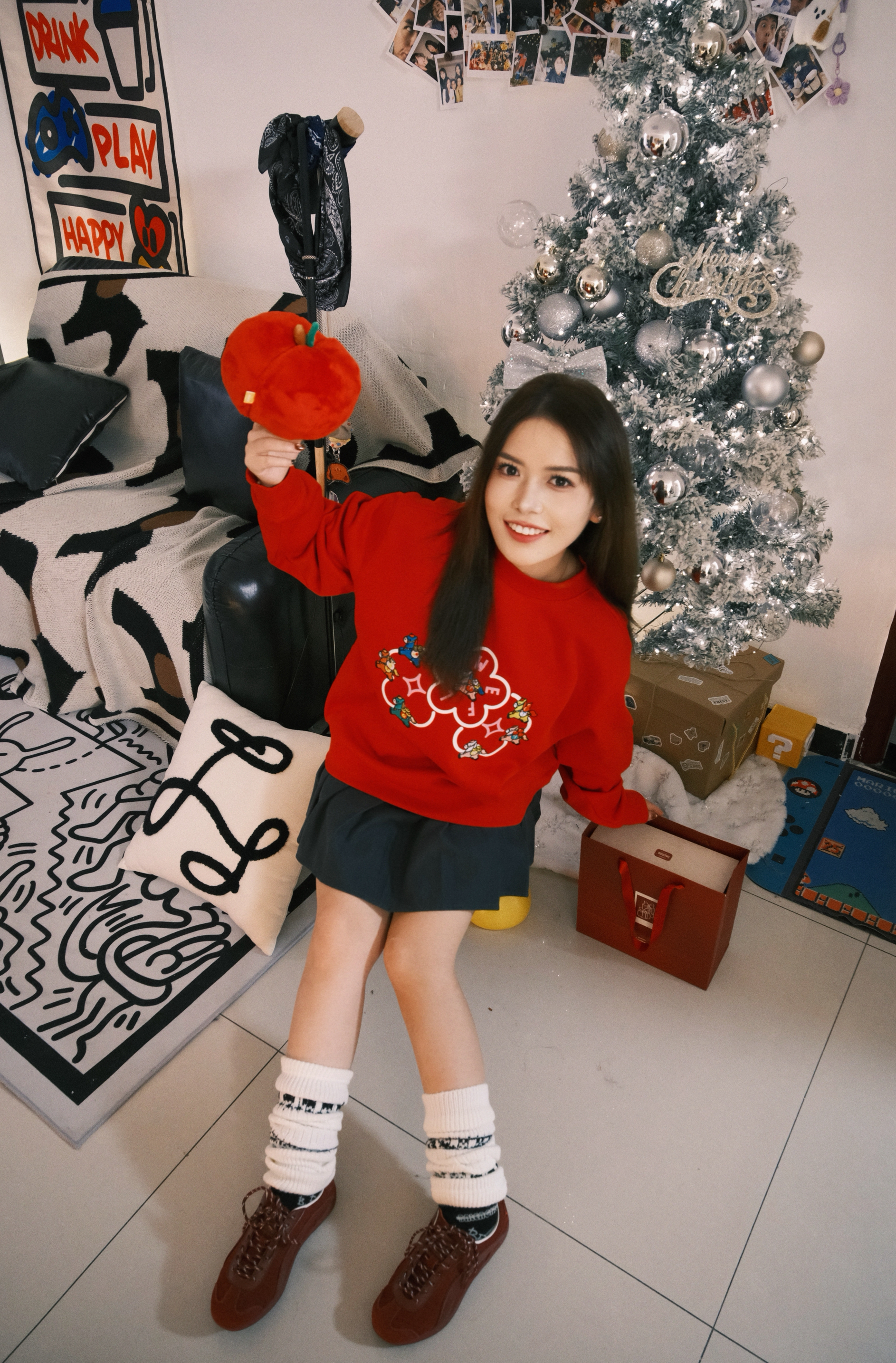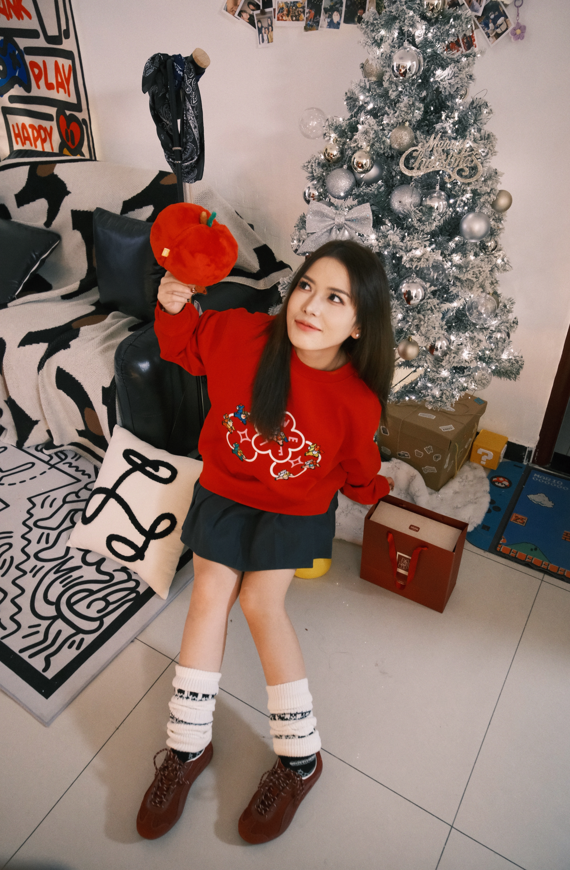 新年穿WE FLOWER马年限定小花服也太合适了! 中国红卫衣印着俏皮的小花和生肖图案 “马上生财”的寓意直接拉满~ 加绒面料暖乎乎的,宽松版型藏肉又舒服 搭深色短裙中和厚重感 再配we flower家的酒红德训鞋和堆堆袜呼应细节, 甜酷感拉满 本命年/新年穿这套,氛围感和好运感双在线,聚会拍照巨出片✨