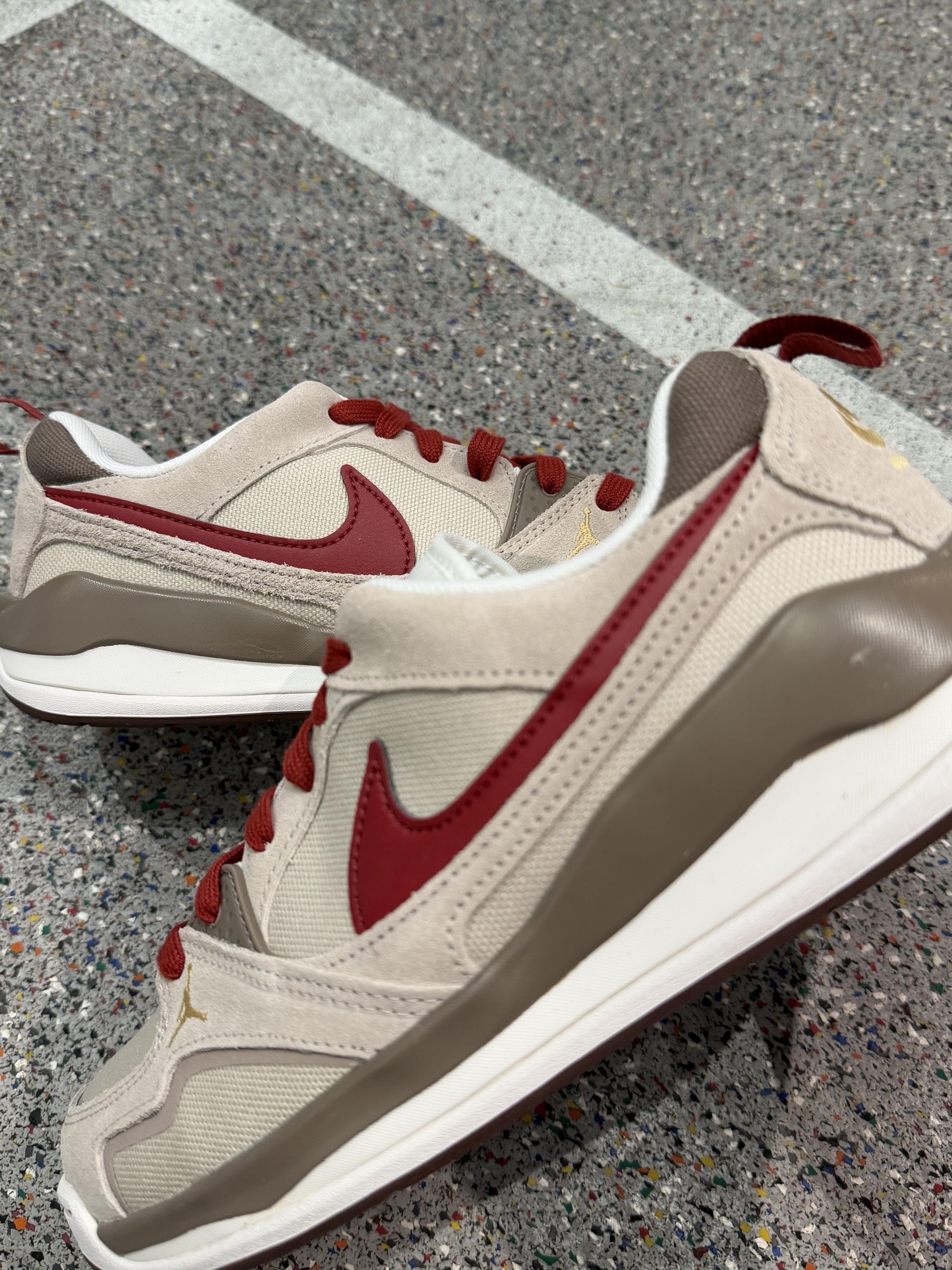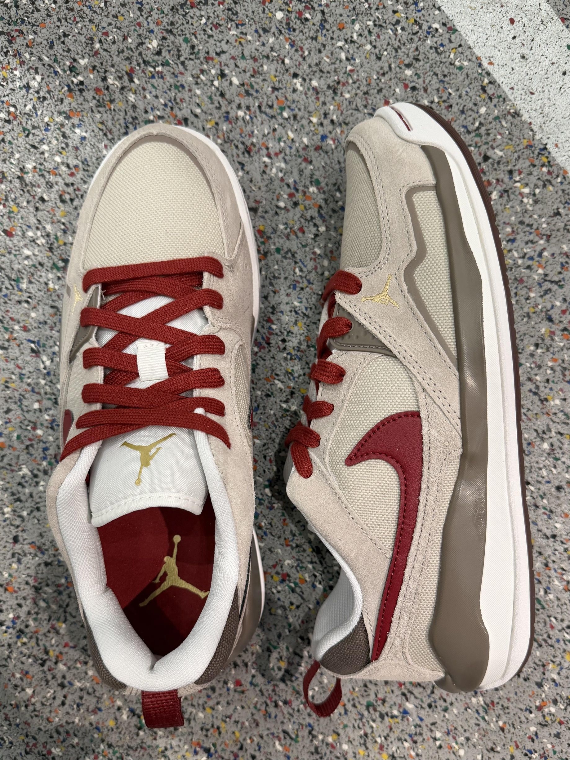 自带祥瑞buff的2026生肖限定Jordan谁不爱! 米白+酒红+浅棕的配色超戳年味 金色飞人Logo点睛 帆布麂皮拼接质感拉满 软质泡沫中底踩屎绝了 暴走一整天都不累 橡胶外底耐磨又防滑