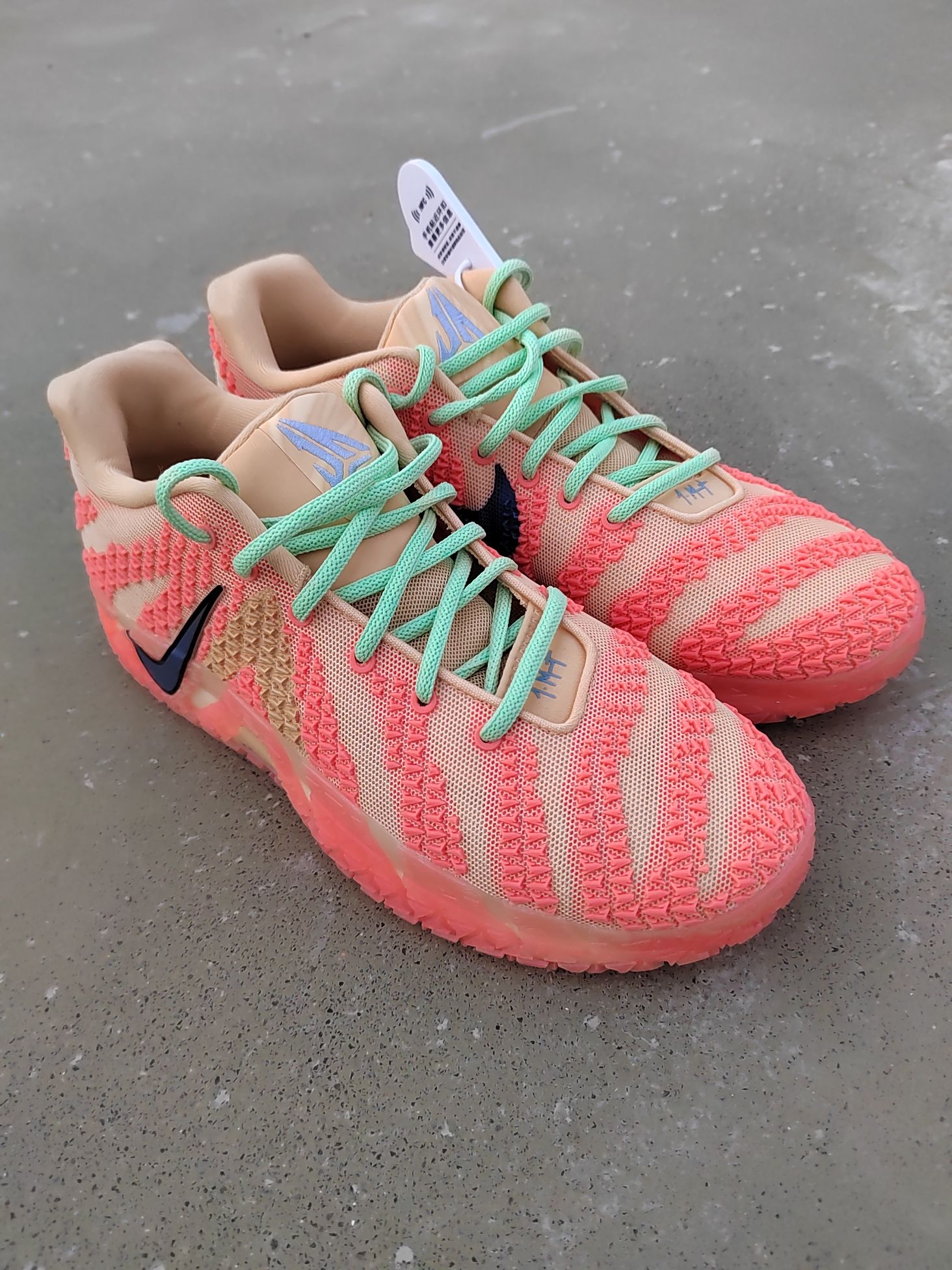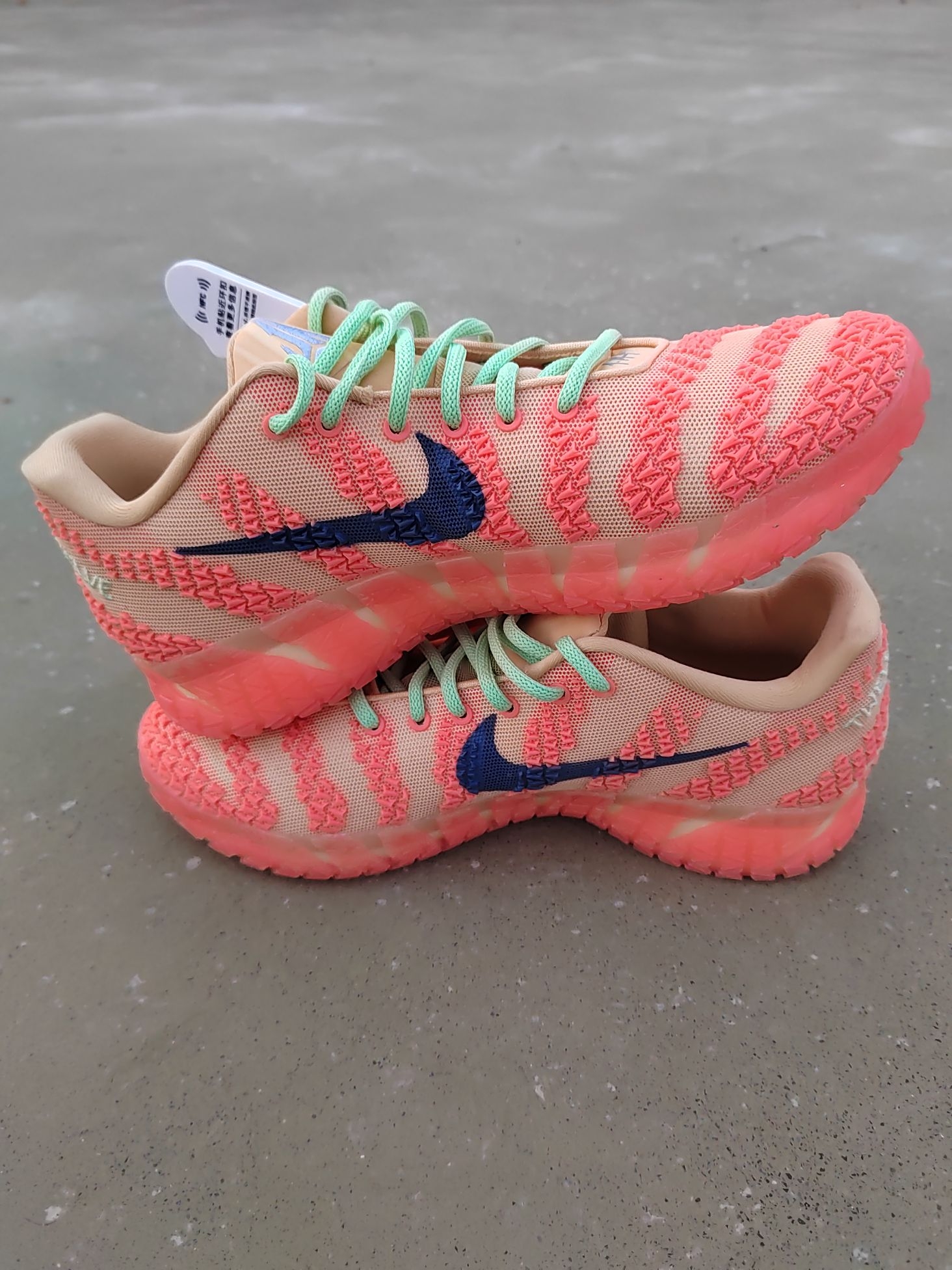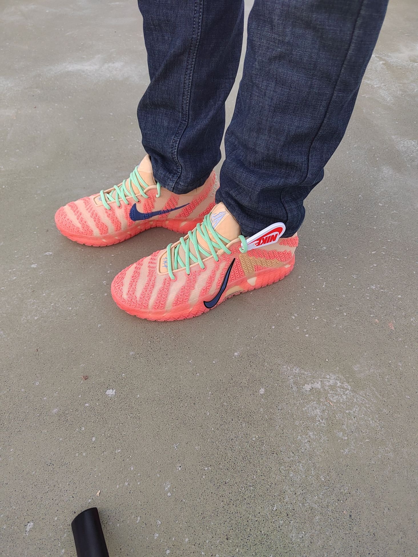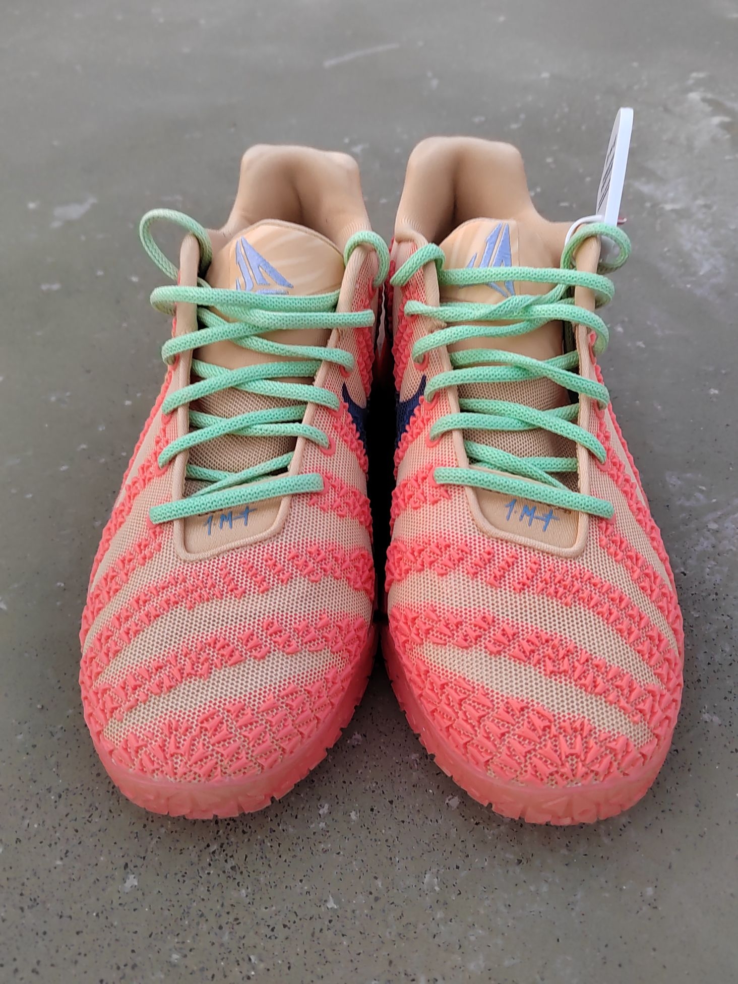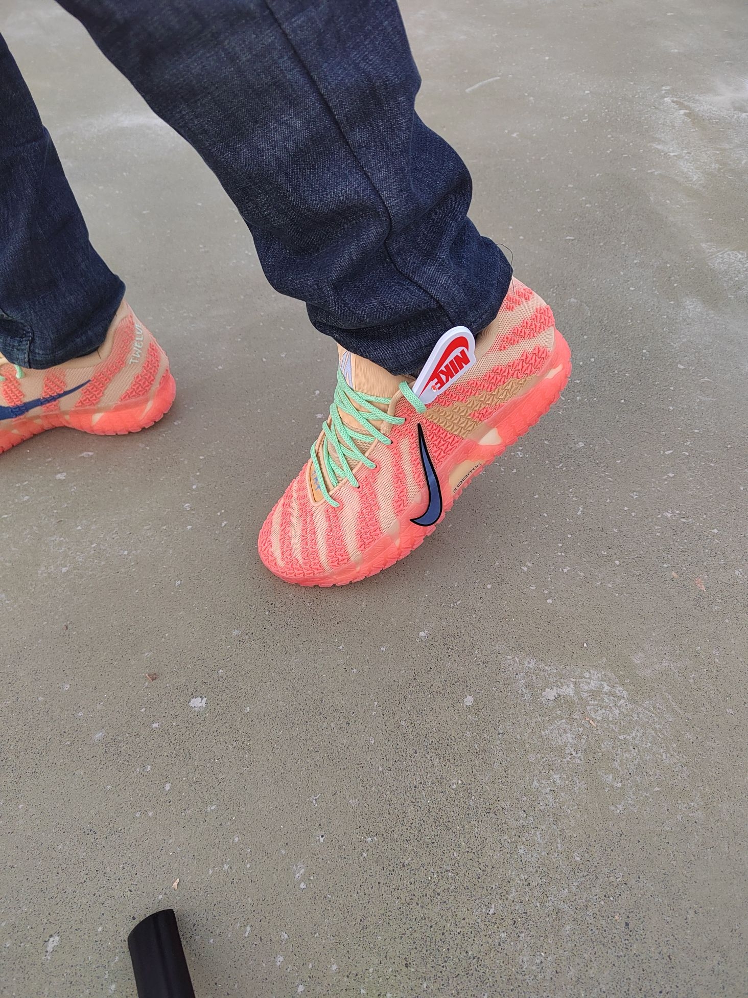 鞋子橙红的配色,很有活力,也非常的亮眼 圆形的鞋带设计较之前的变形鞋带稍稍做了改动,我穿着运动了一段时间没有出现松脱的情况 中底采用的全掌ZoomX科技,回弹反馈明显,我运动时能明显感觉到助推力,缓震效果也不错,而且鞋子的包裹感也很足 水晶的大底我在外场实战了一段时间,防滑个耐磨性比较不错,磨损程度不明显 鞋楦偏窄,宽脚高脚背建议大半码,瘦脚正常码选择