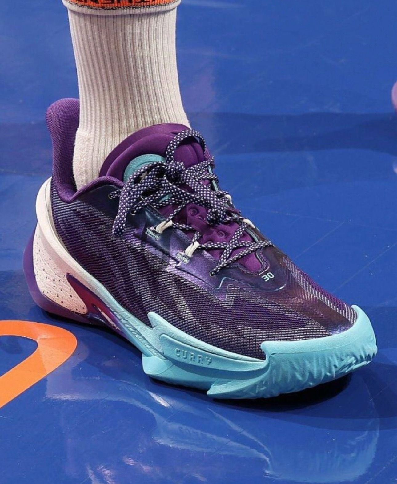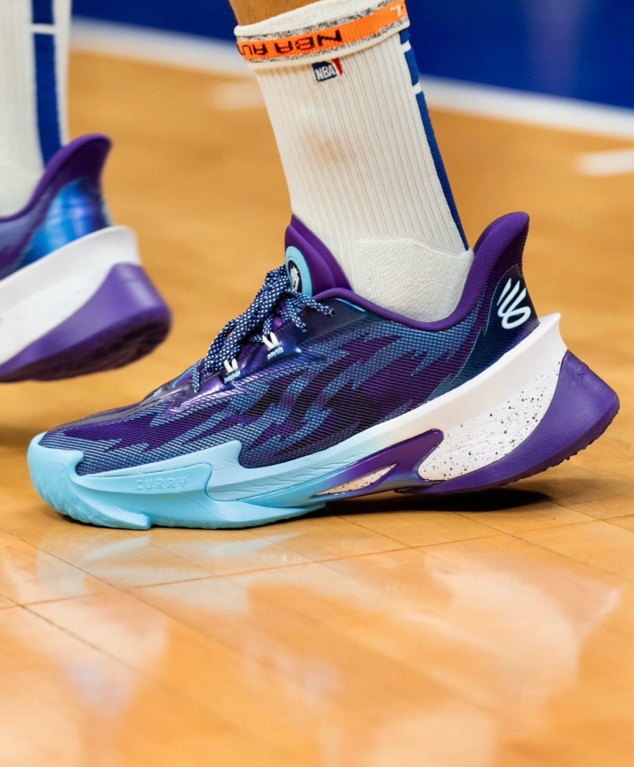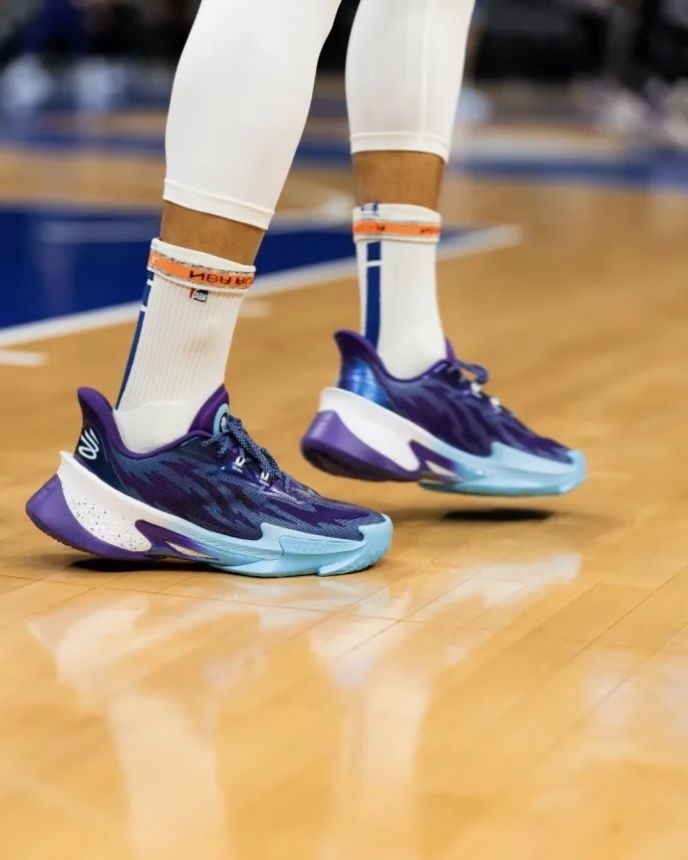 勇士客场打黄蜂的球看完了,132-125拿下比赛,库里还是那个稳字当头的老炮儿,33分钟砍26分2板4助1封盖,16投9中+三分10中5的效率依旧在线,关键球处理还是那么让人放心。 不过我全程除了盯他的三分,还一直在看他脚上这双UA CURRY Series7“Unrivaled”PE!紫蓝渐变的鞋面搭配蒂芙尼蓝的鞋头,质感直接拉满,鞋舌和鞋帮的细节设计也特别精致,PE版本的专属标识藏得很有巧...
